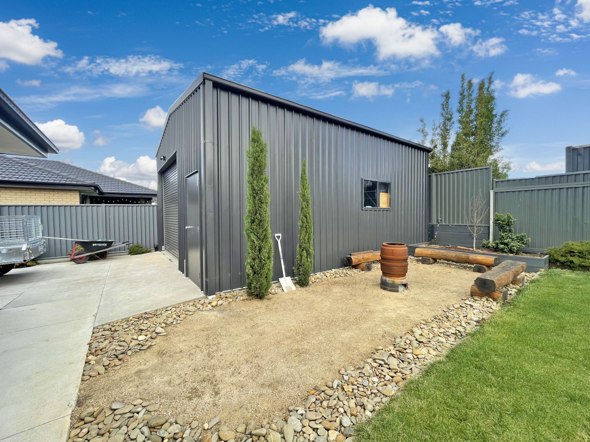 - Separate expansive shedding ideal for storage, hobbies, or trades