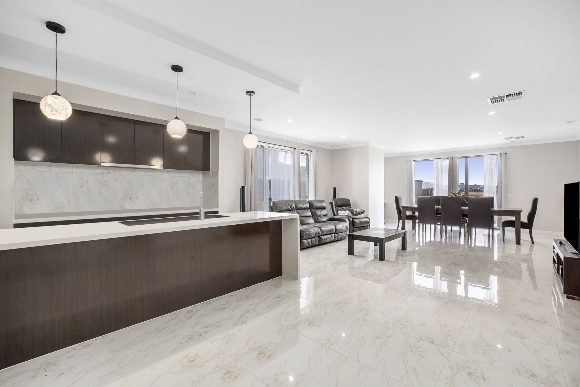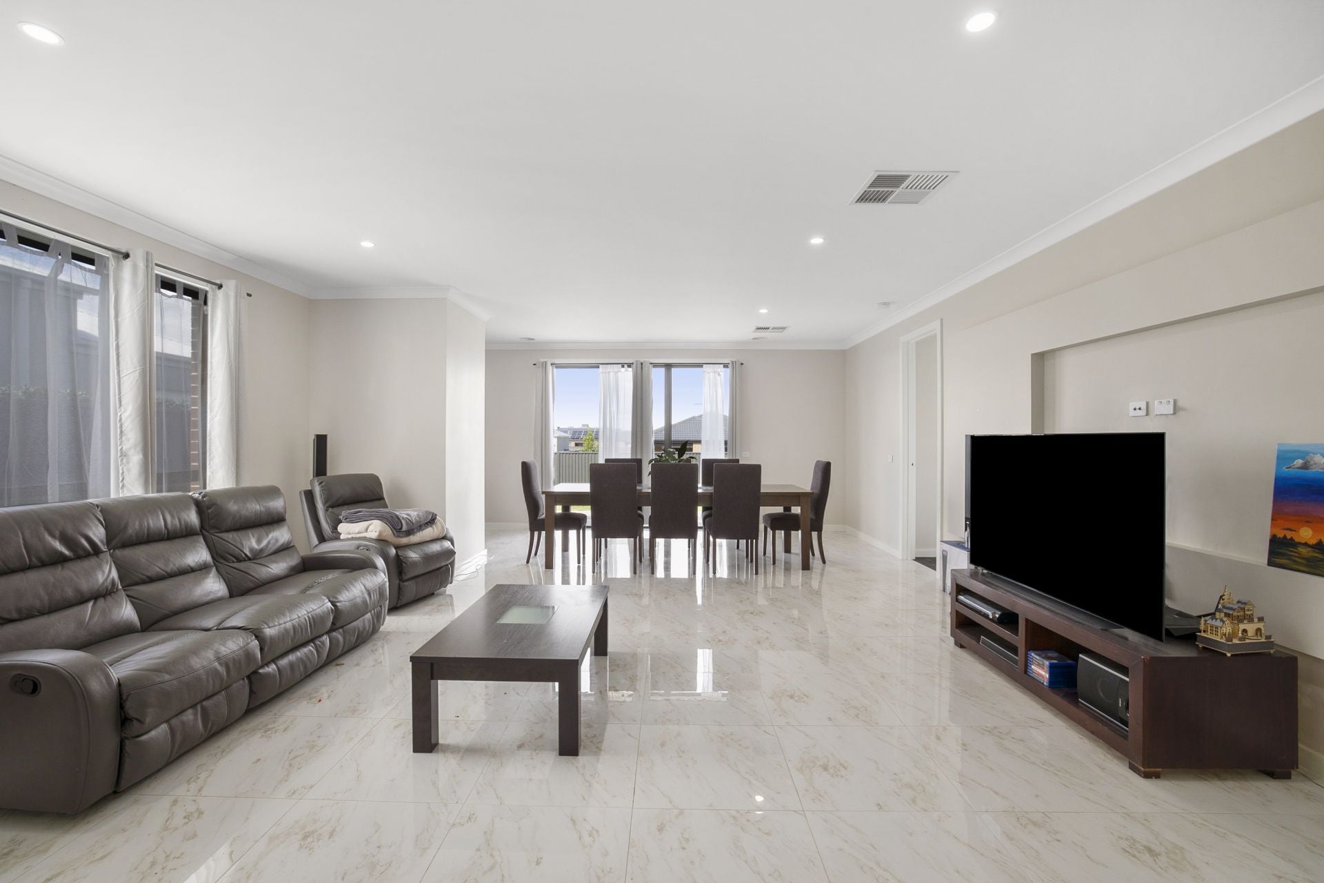Featuring two separate living zones including a front formal lounge and an open-plan living/dining area, study nook, open plan kitchen/dining kitchen, walk-in pantry and a large island bench. Other features include a double lock up garage, high ceilings, gas central heating and evaporative cooling and a large backyard with side access