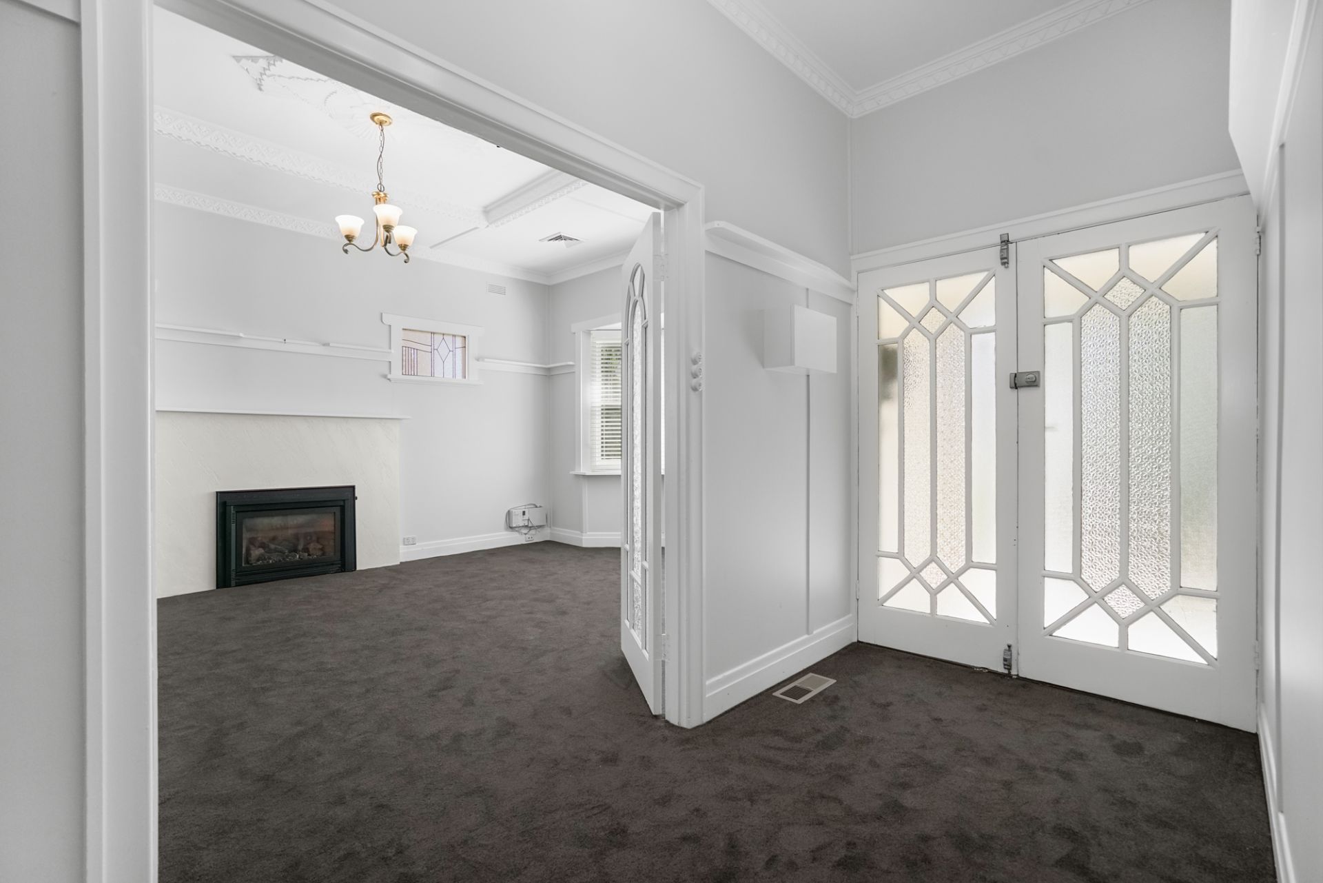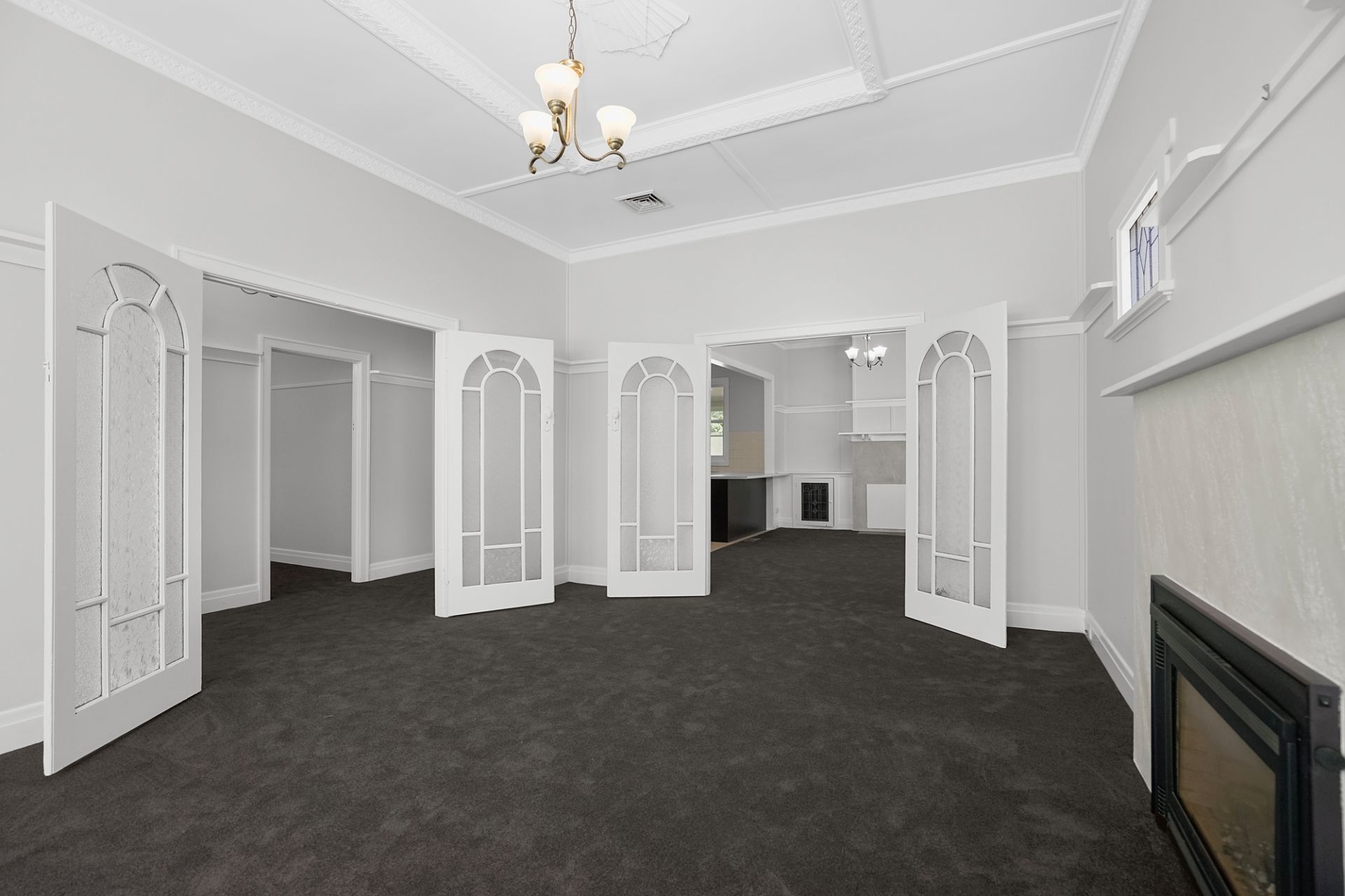 - High ceilings with ornate cornices and ceiling roses adding period charm