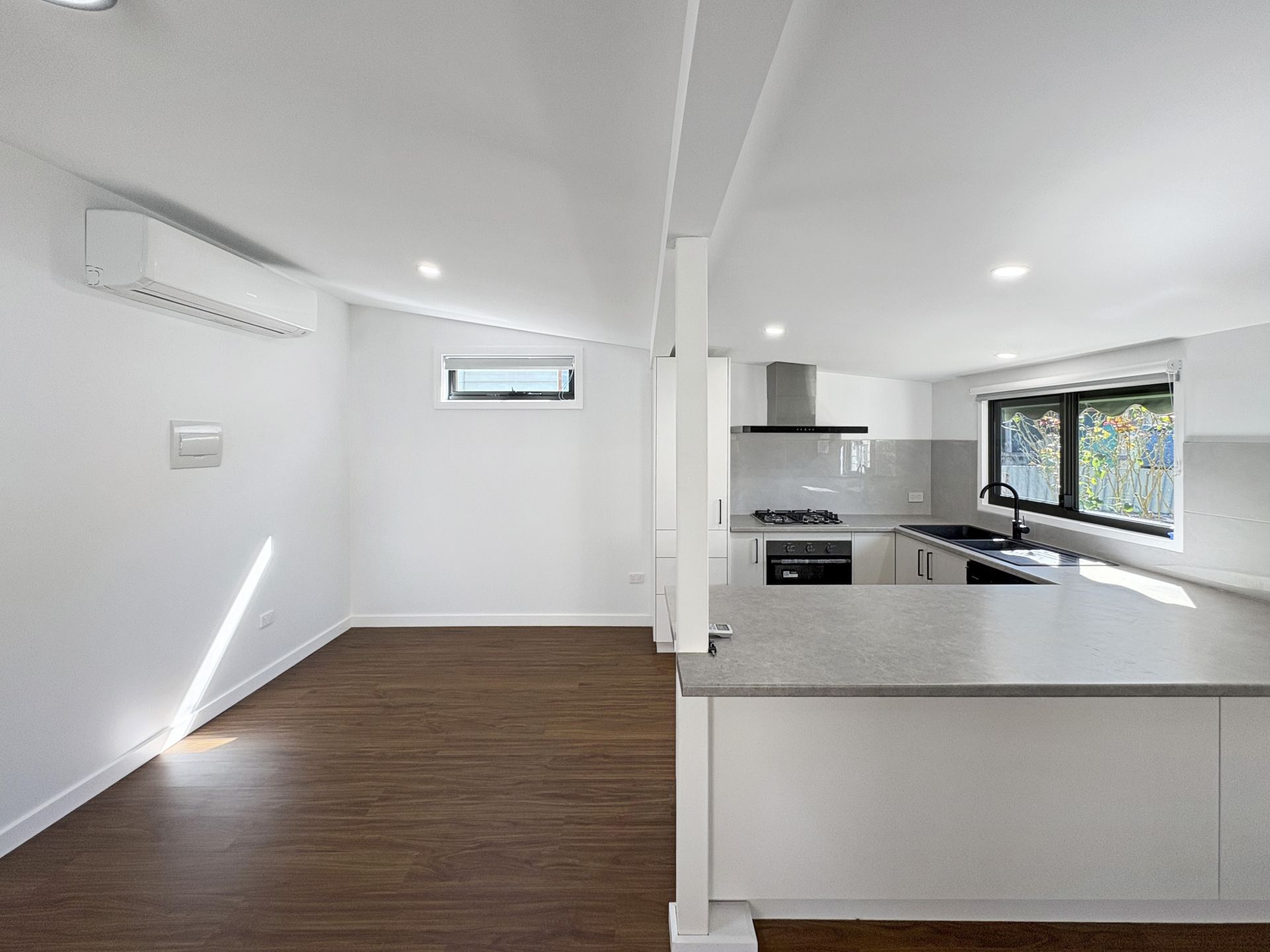 The home features three bedrooms, a cozy central living area complete with heating and cooling, and a functional kitchen and dining zone located at the rear of the property. The layout provides comfortable everyday living, while retaining its classic cottage appeal.