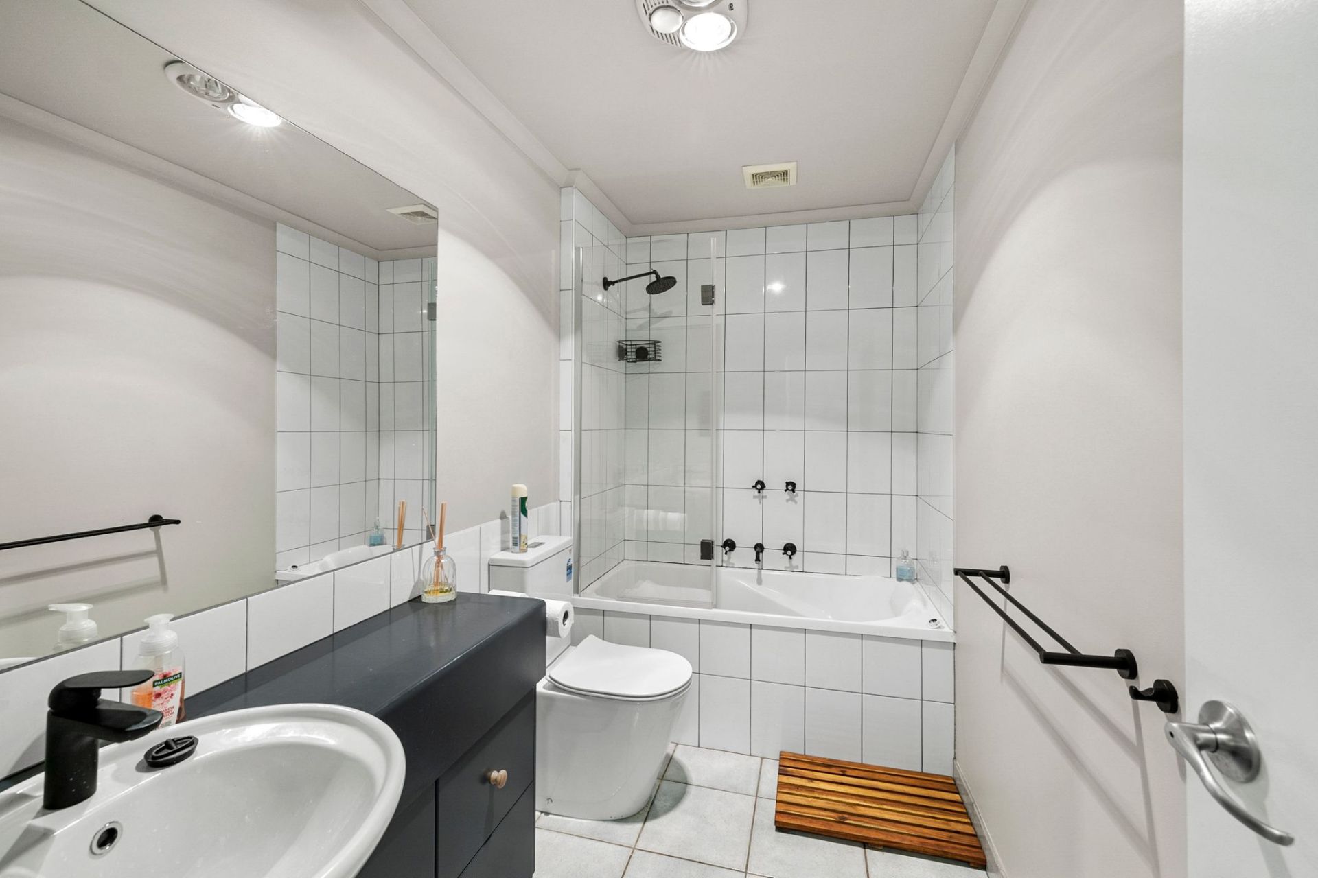 There are 2 bedrooms both with BIR, and balcony's coming off the living and main bedroom. The bathroom contains shower over bath all tucked into a nice neat package!