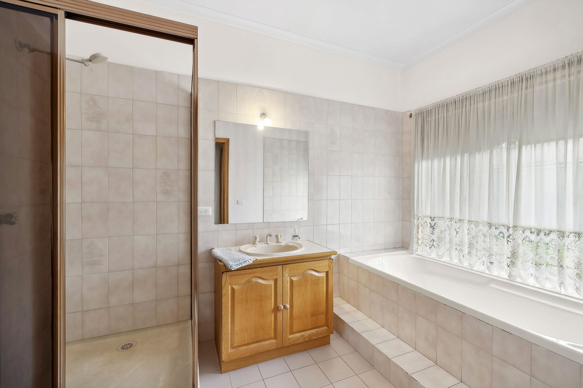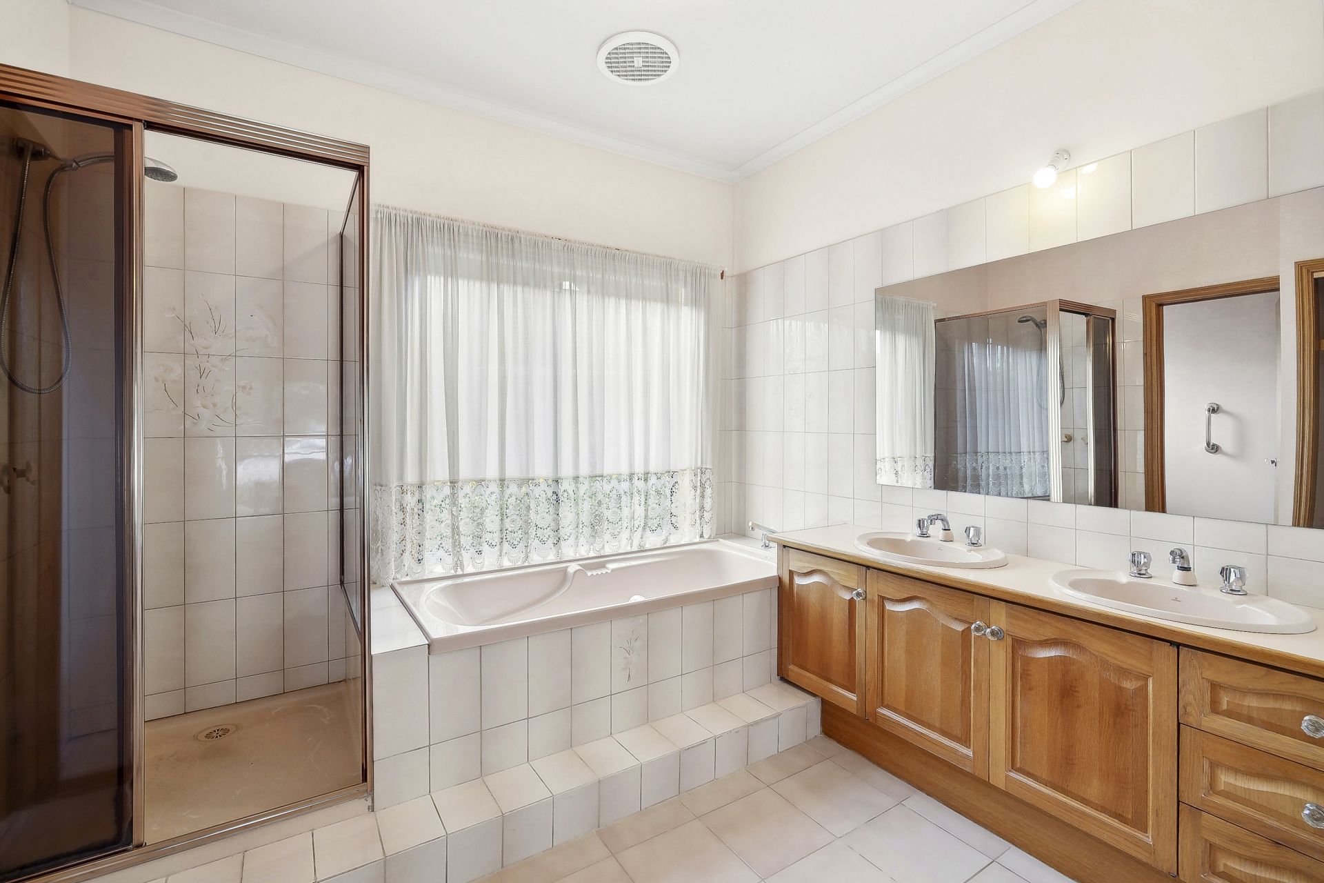 The spacious master bedroom includes a walk-in robe and a luxurious ensuite with a double vanity, spa bath, and shower. The two additional bedrooms are fitted with built-in robes, providing ample storage space for the whole family.