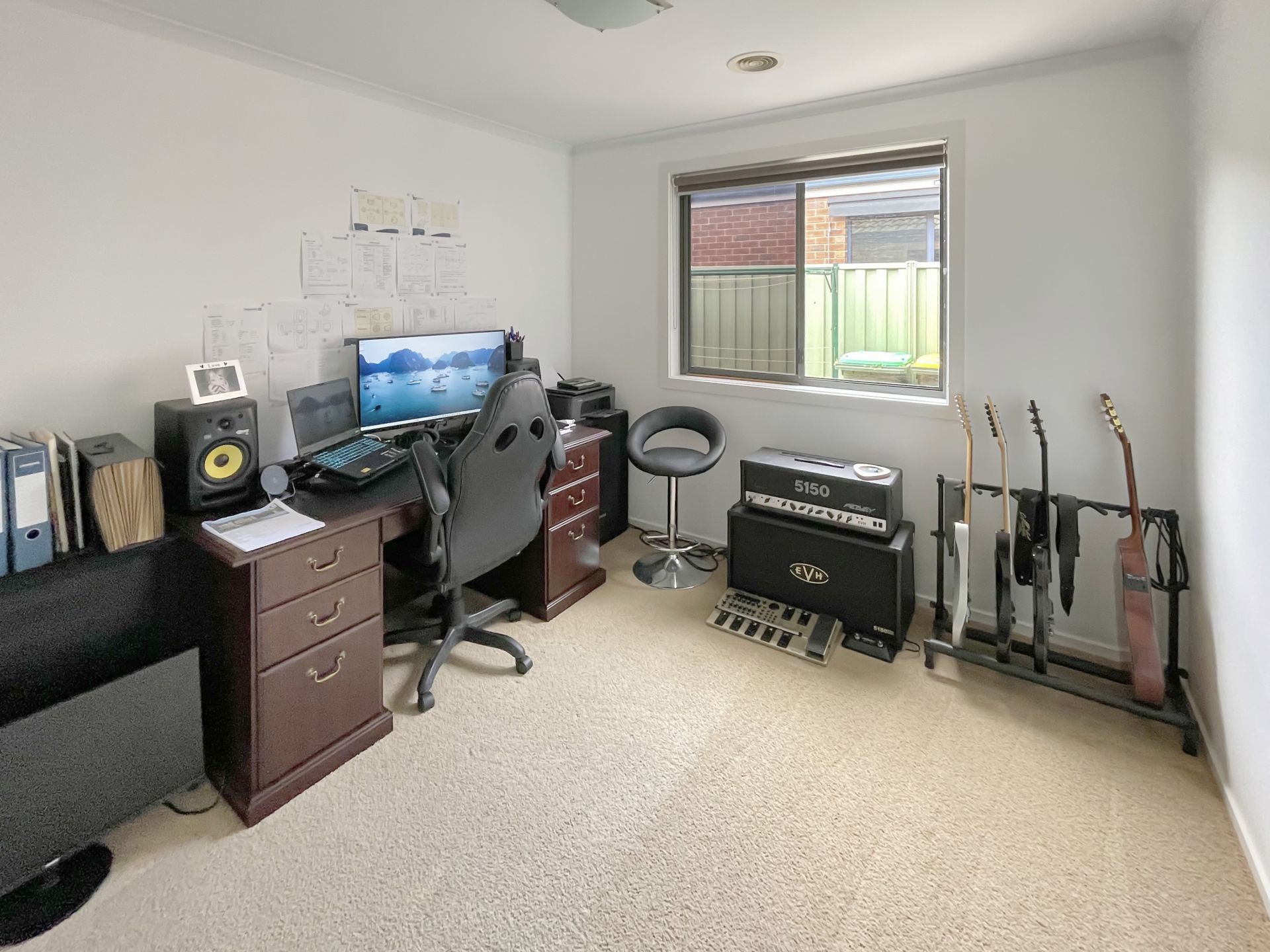 The heart of the home is the light-filled open plan kitchen, meals and living area. The modern kitchen is equipped with quality appliances, ample storage and bench space, making it perfect for both everyday living and entertaining. A split system heating and cooling unit ensures year-round comfort.
