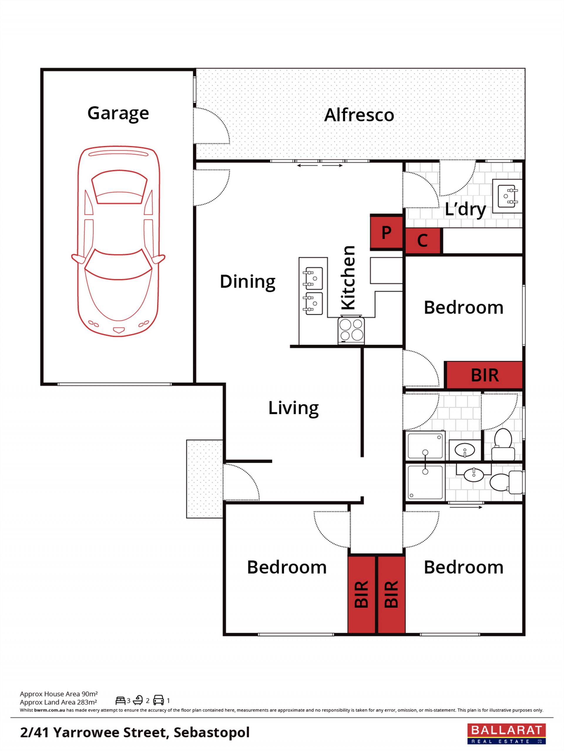 Entering the home, you are greeted by a formal living area which leads through to the open plan dining area and chef's kitchen which has gas and electric cooking, dishwasher and BIP. Serviced by a gas wall heater and split system air conditioning for year-round comfort. The three bedrooms are of good size and all include BIR's. The master has an en-suite which includes a shower, toilet and single basin. The main bathroom also has a shower, single basin and is serviced by a separate toilet.