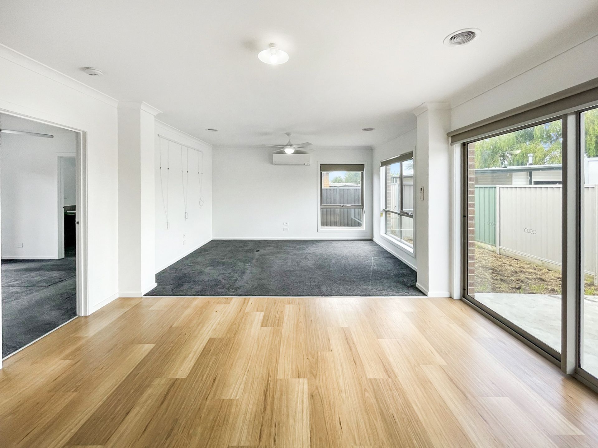 - Ducted gas central heating throughout with split system