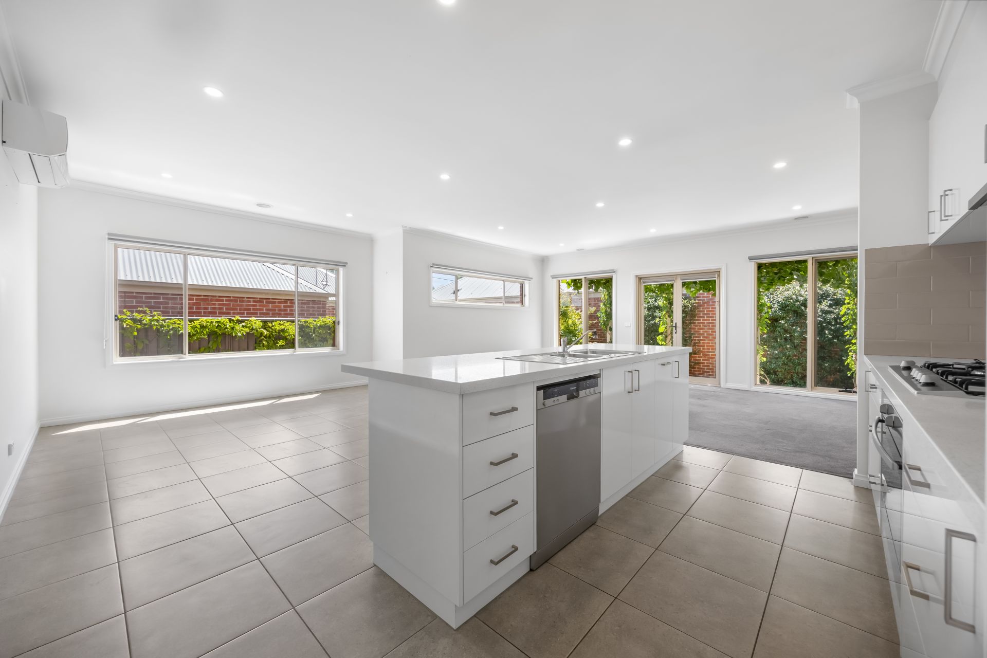 Bright and expansive open plan kitchen, dining and living zone with an abundance of natural light