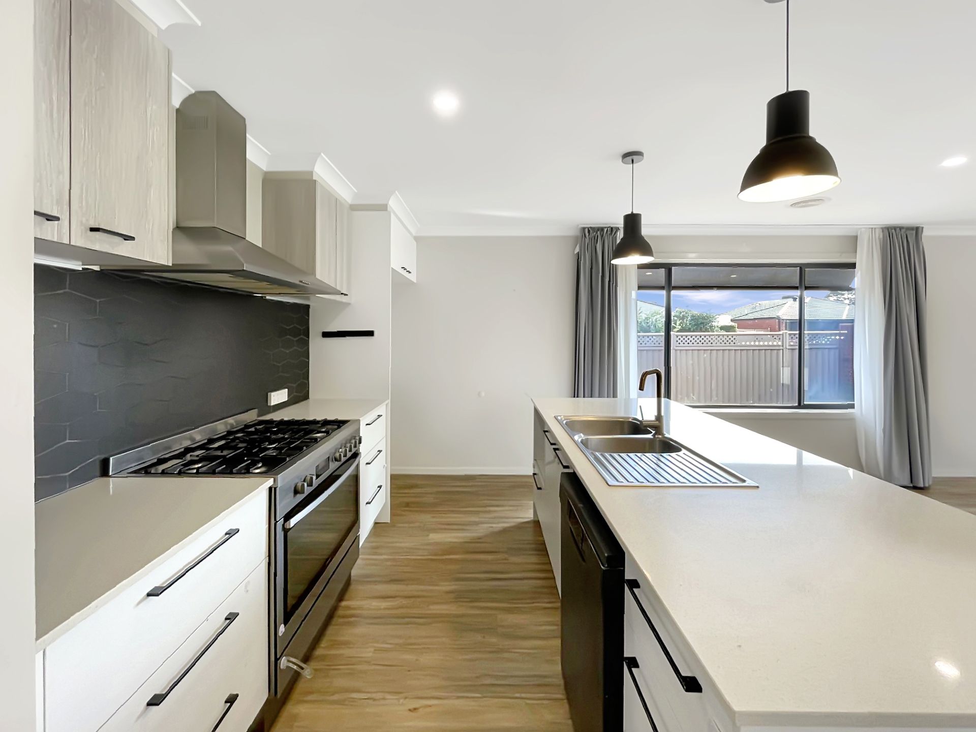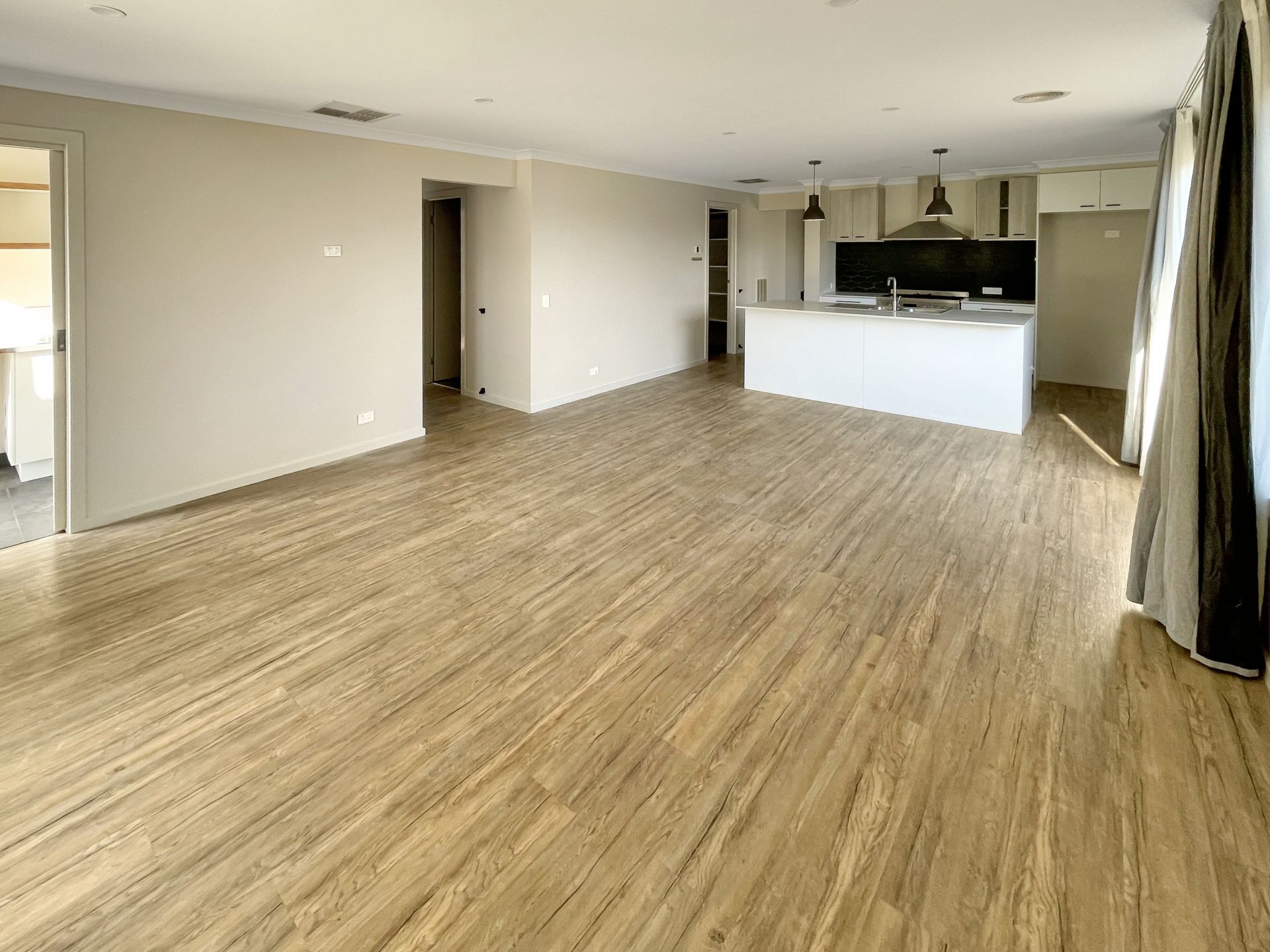 -Open plan kitchen and dining and living area