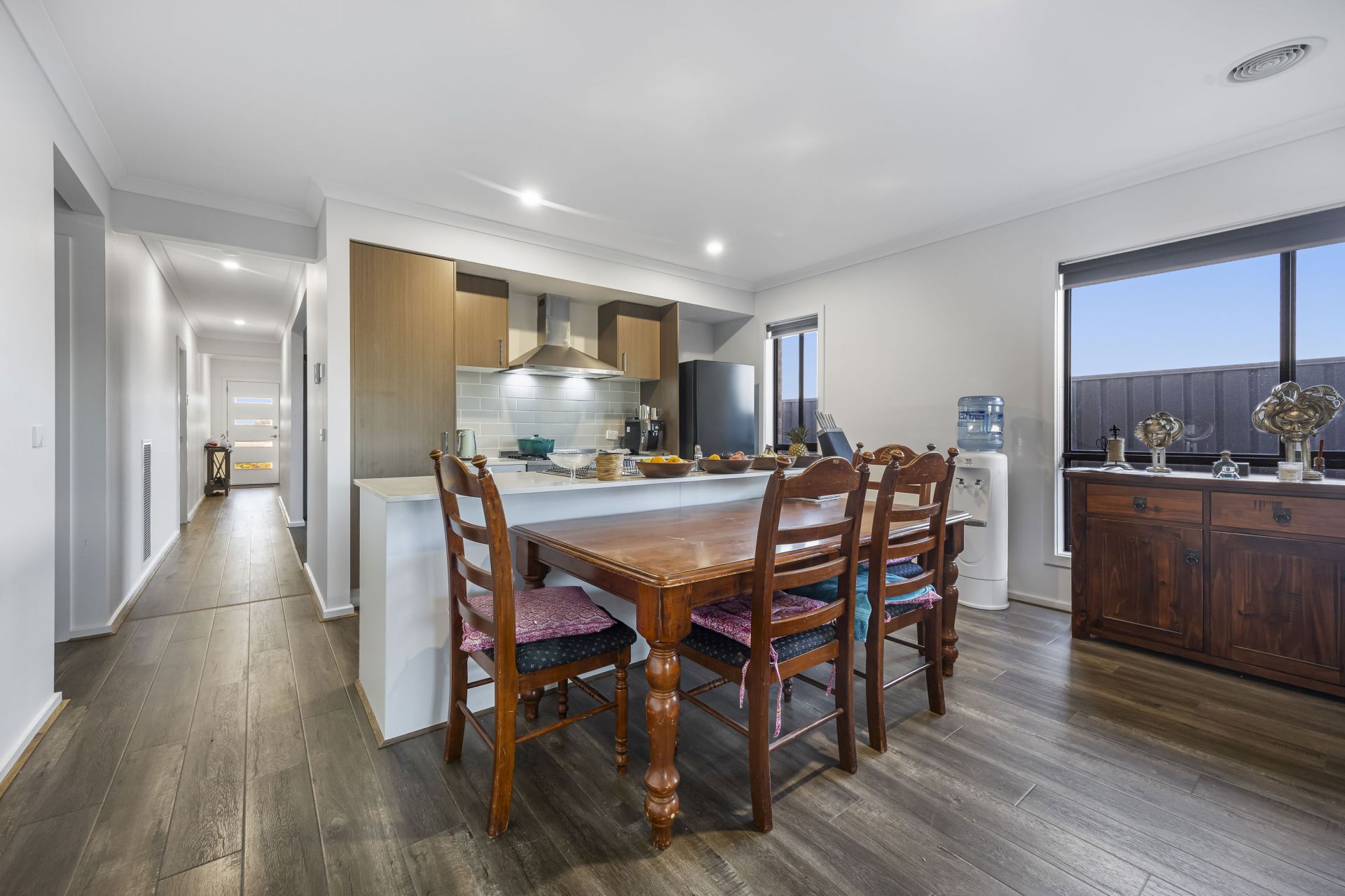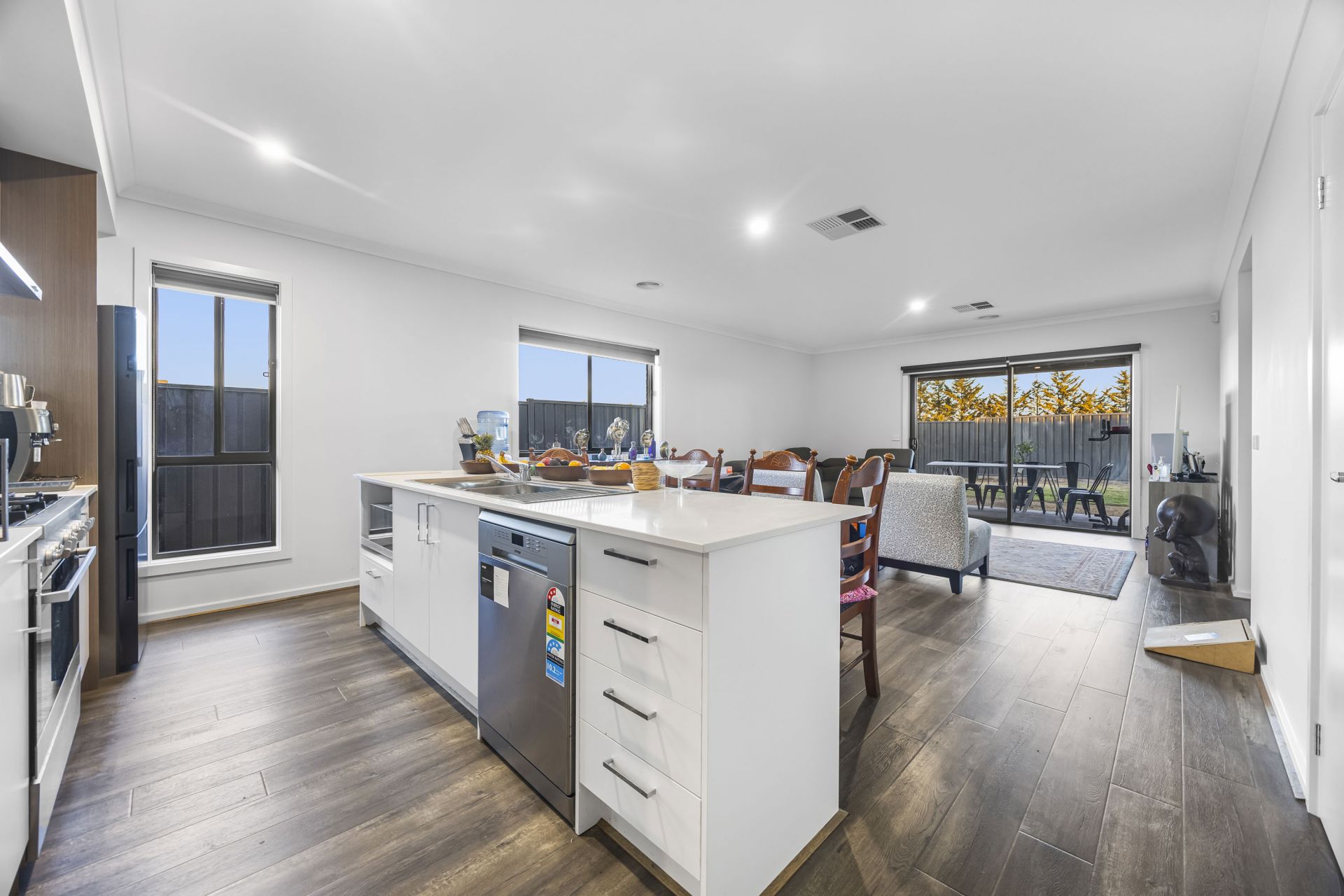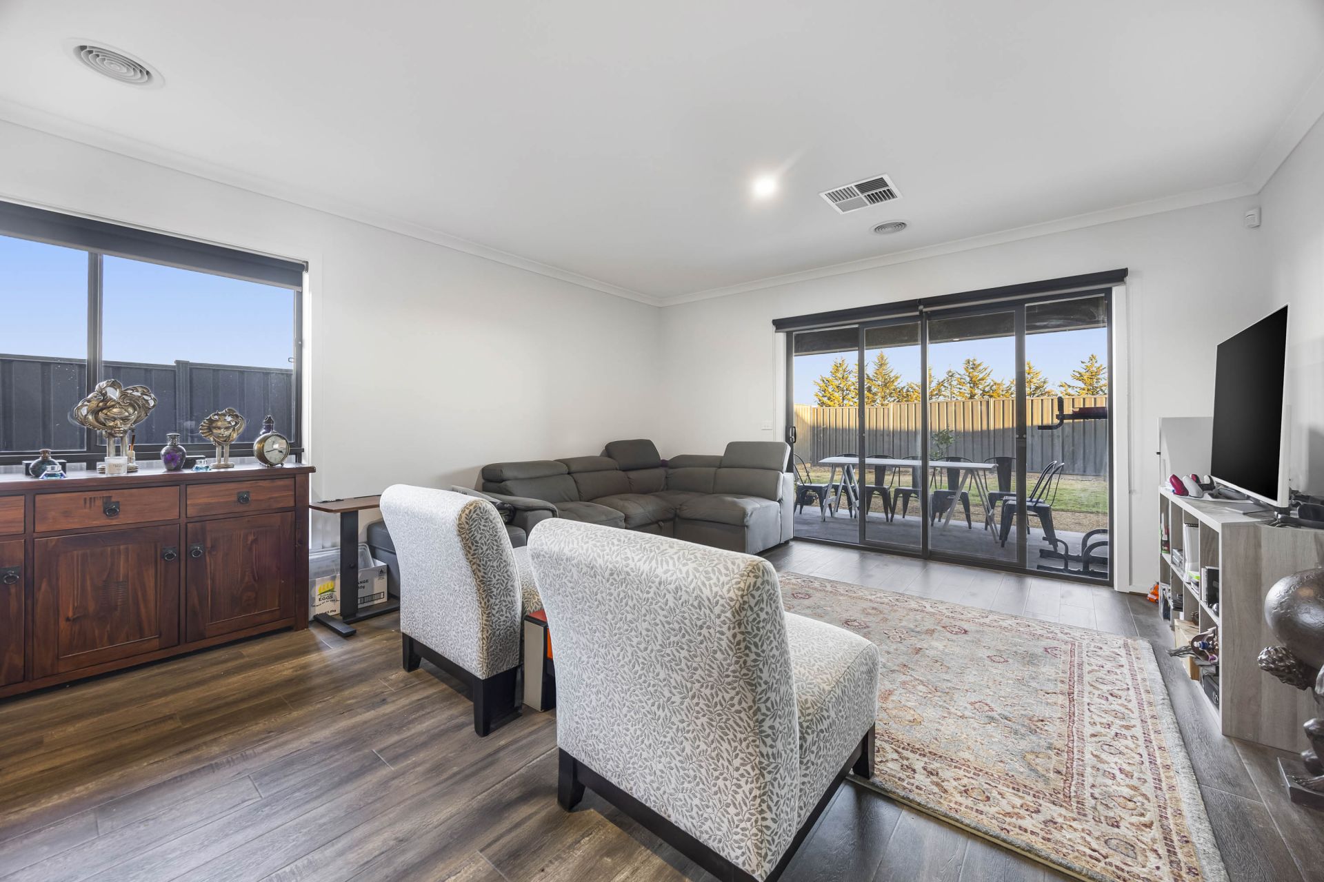 Settled within the rapidly expanding Winter Valley, discover this contemporary four-bedroom residence conveniently located near the Lucas Shopping Complex, Delacombe Town Centre and within proximity to the desirable Ballarat High School, as well as Alfredton Primary. The spacious master bedroom conveniently located at the front of the property features a well-equipped ensuite and walk-in robe, while the remaining three bedrooms offer built-in robes. The property showcases a sizable open plan family room and an additional living space perfect for accommodating the needs of a growing family. The sunlit kitchen is fully equipped with high-quality stainless-steel appliances including a dishwasher, nestled in the expansive island bench as well as a sizeable oven. Ideal for convenience, a second separate living area provides ultimate versatility. The main bathroom offers a luxurious built in bath as well as a convenient separate toilet. Throughout the home, enjoy year-round comfort with central heating. Step outside to a fully secure yard featuring a modest concrete patio, landscaped lawn and garden beds, side access, impressive water tank and a double garage. This property offers a perfect blend of modern living and family-friendly amenities.