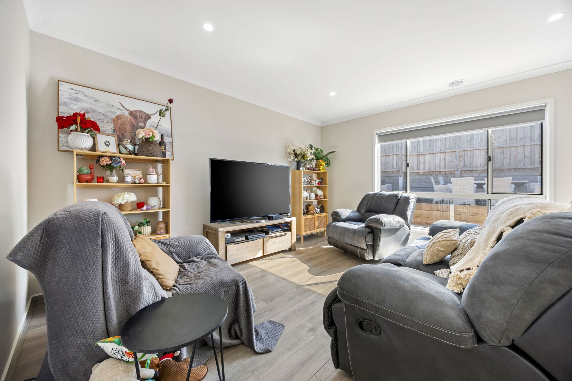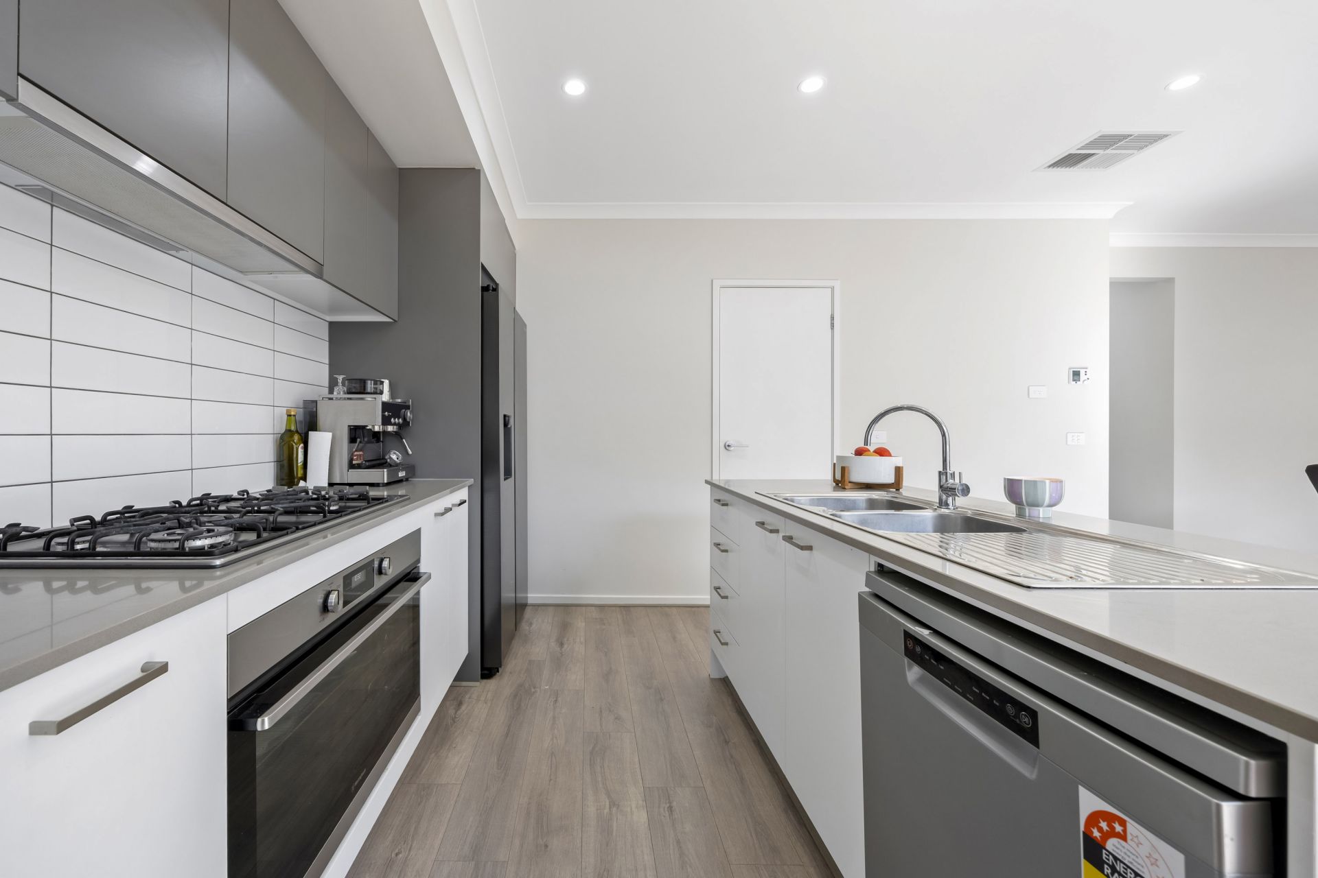 The home has upgrades throughout the house, featuring spacious master bedroom with walk in robe and full ensuite, shower and double vanity sink and toilet. Three further spacious bedrooms with mirrored built in robes, neutral tones and carpeted flooring. Open plan spacious kitchen with 900mm gas cooktop and electric stainless steel appliances including dishwasher, spacious bench tops and plenty of cupboards with walk in pantry with plumbed fridge space. Three Living spaces - front, middle, rear.