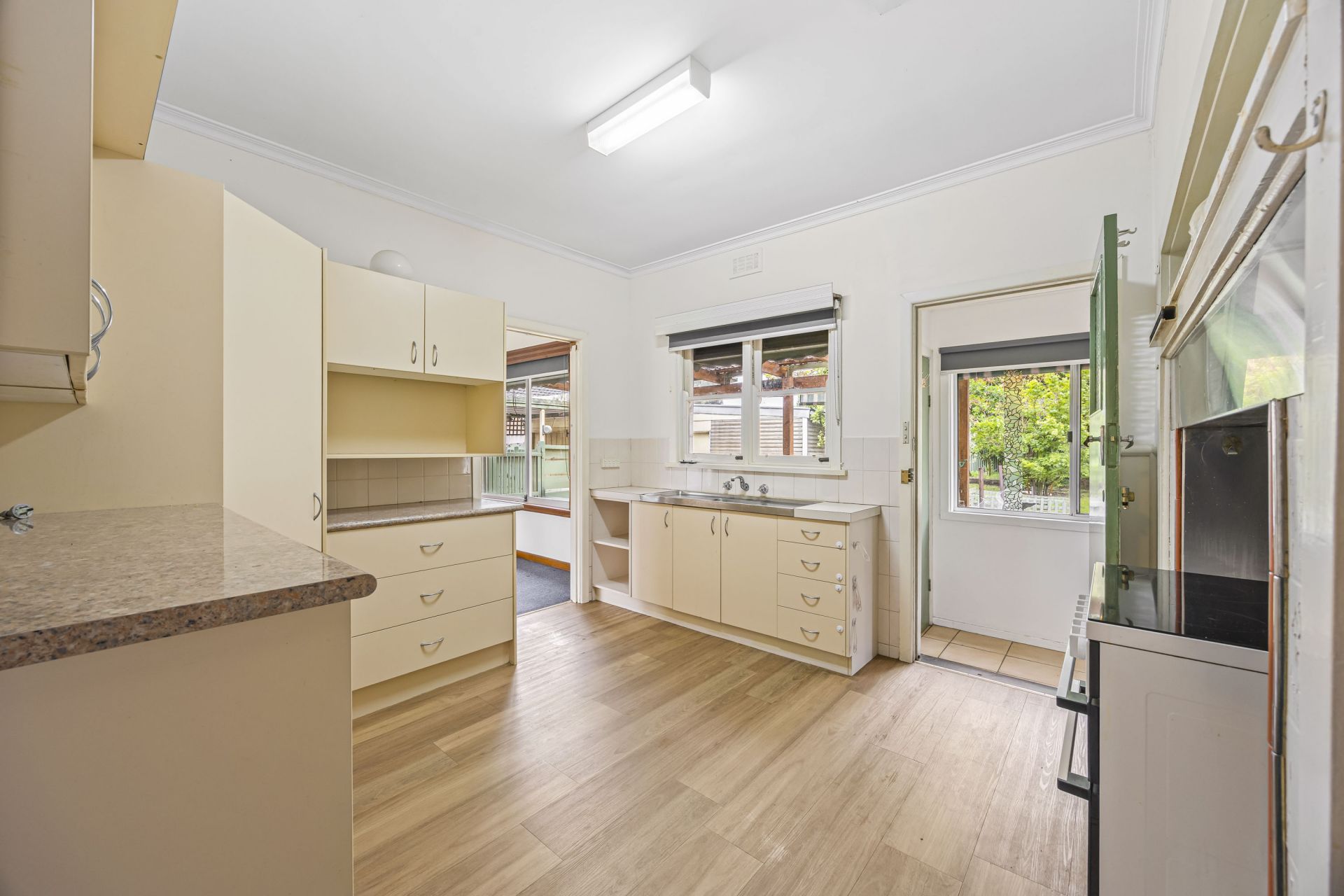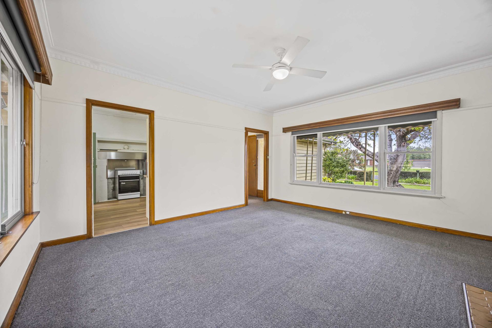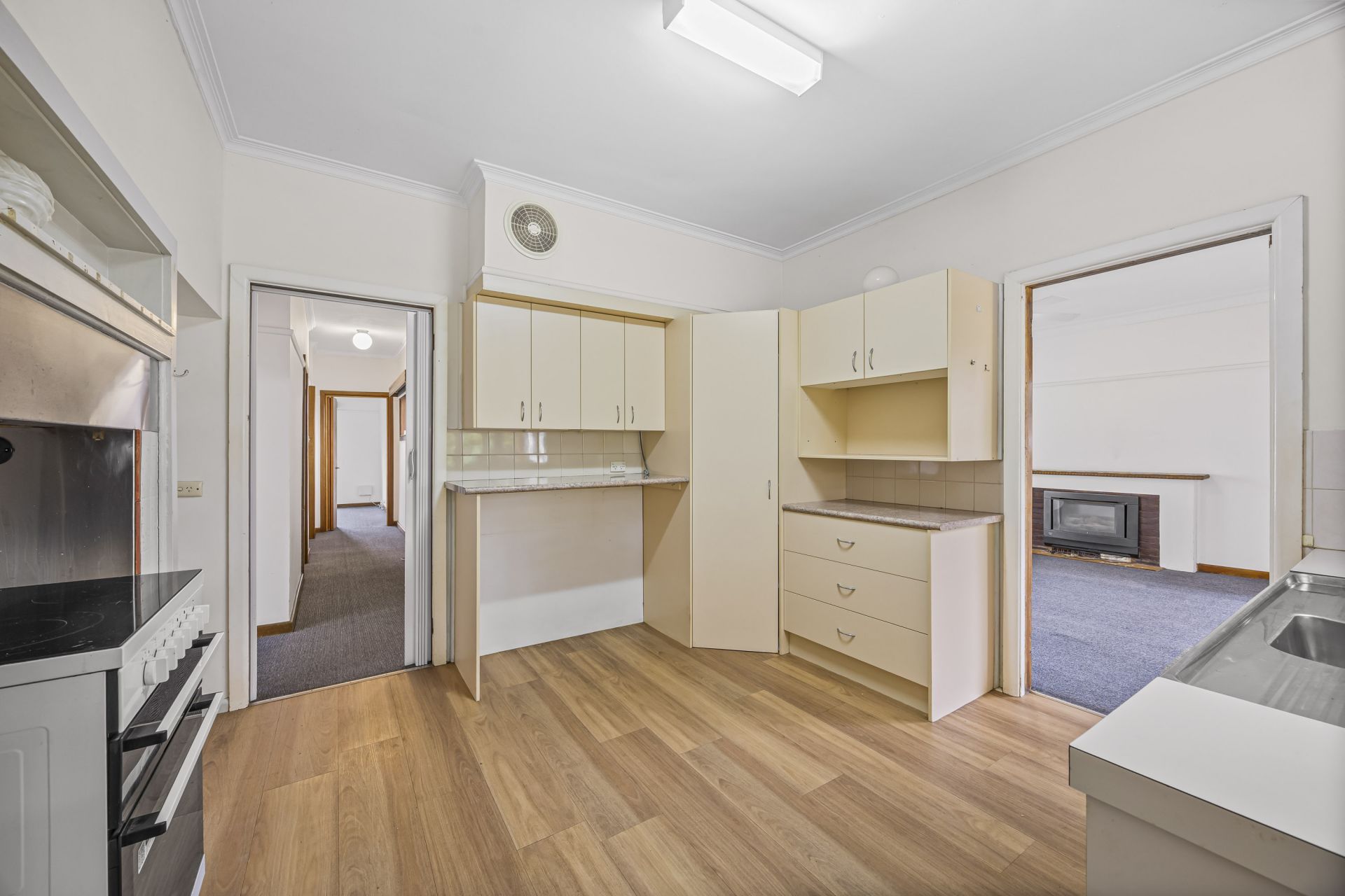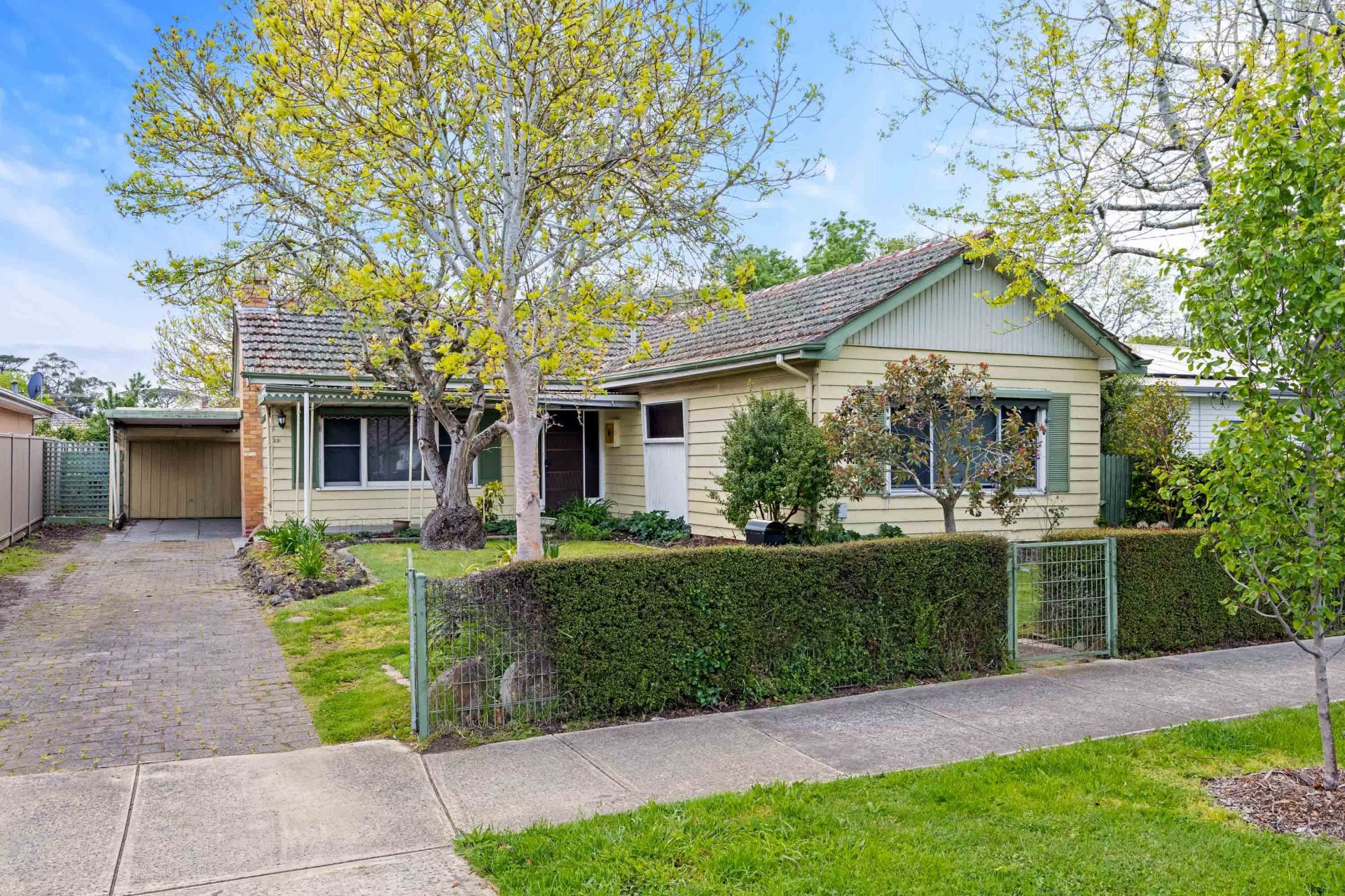 Inside there are three generously sized bedrooms, the master having BIR. The lounge seamlessly merging with the kitchen area, creating an inviting space for relaxation and entertainment. The kitchen boasts ample space and storage. The bathroom being well equipped with a shower, vanity, and toilet. There is also a large laundry that doubles as a mudroom as well as providing an additional toilet for convenience. The house is serviced by gas heating and a ceiling fan for year-round comfort. Outside you have a large private treelined backyard with plenty of space for the kids, there is also ample space for the cars with a carport and a large garage that has space for a workshop as well.