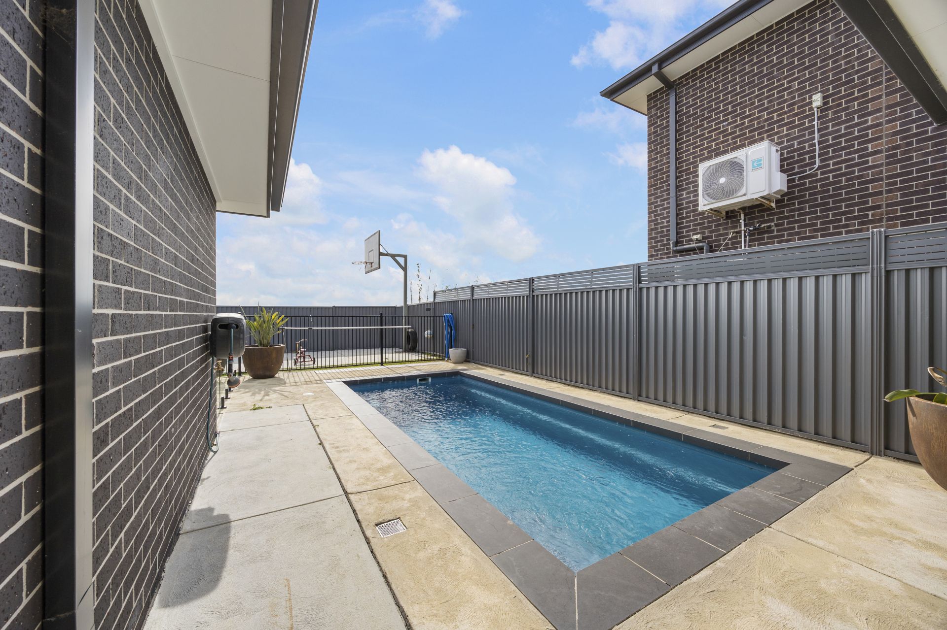 Outdoors, the lifestyle offering truly shines. A large undercover alfresco and enclosed sunroom provide seamless indoor-outdoor flow, while the sparkling heated swimming pool invites year-round enjoyment. The low-maintenance yard also includes a basketball ring and mini court for endless family fun.