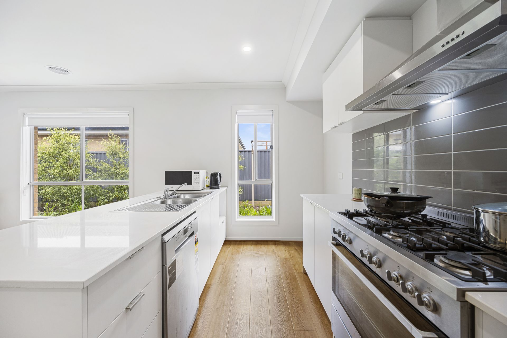 The well-appointed kitchen is designed for everyday functionality and entertaining, featuring stone benchtops, gas cooking, an electric oven, and a spacious walk-in pantry. Whether it's family dinners or weekend hosting, this kitchen makes it effortless.