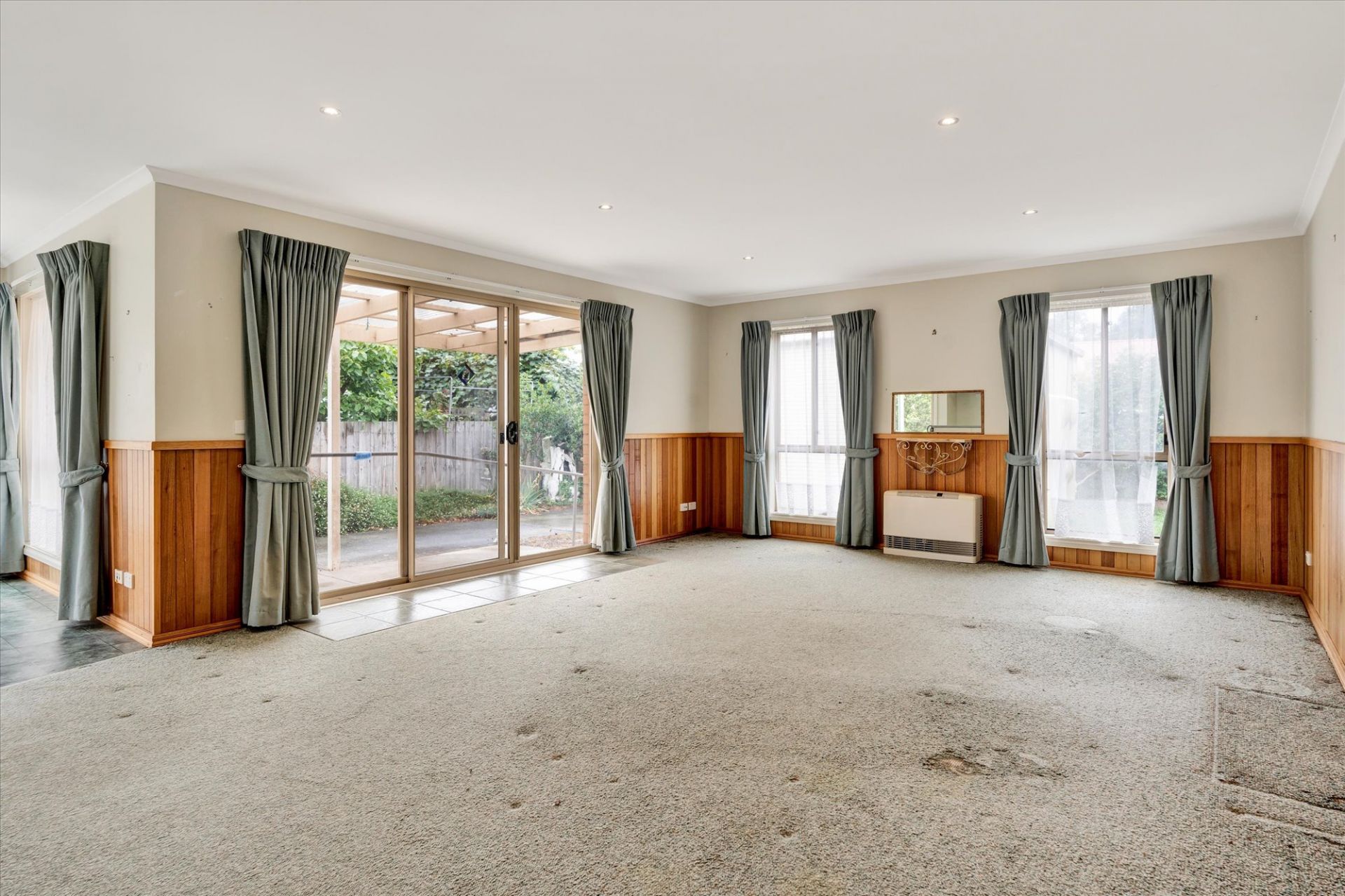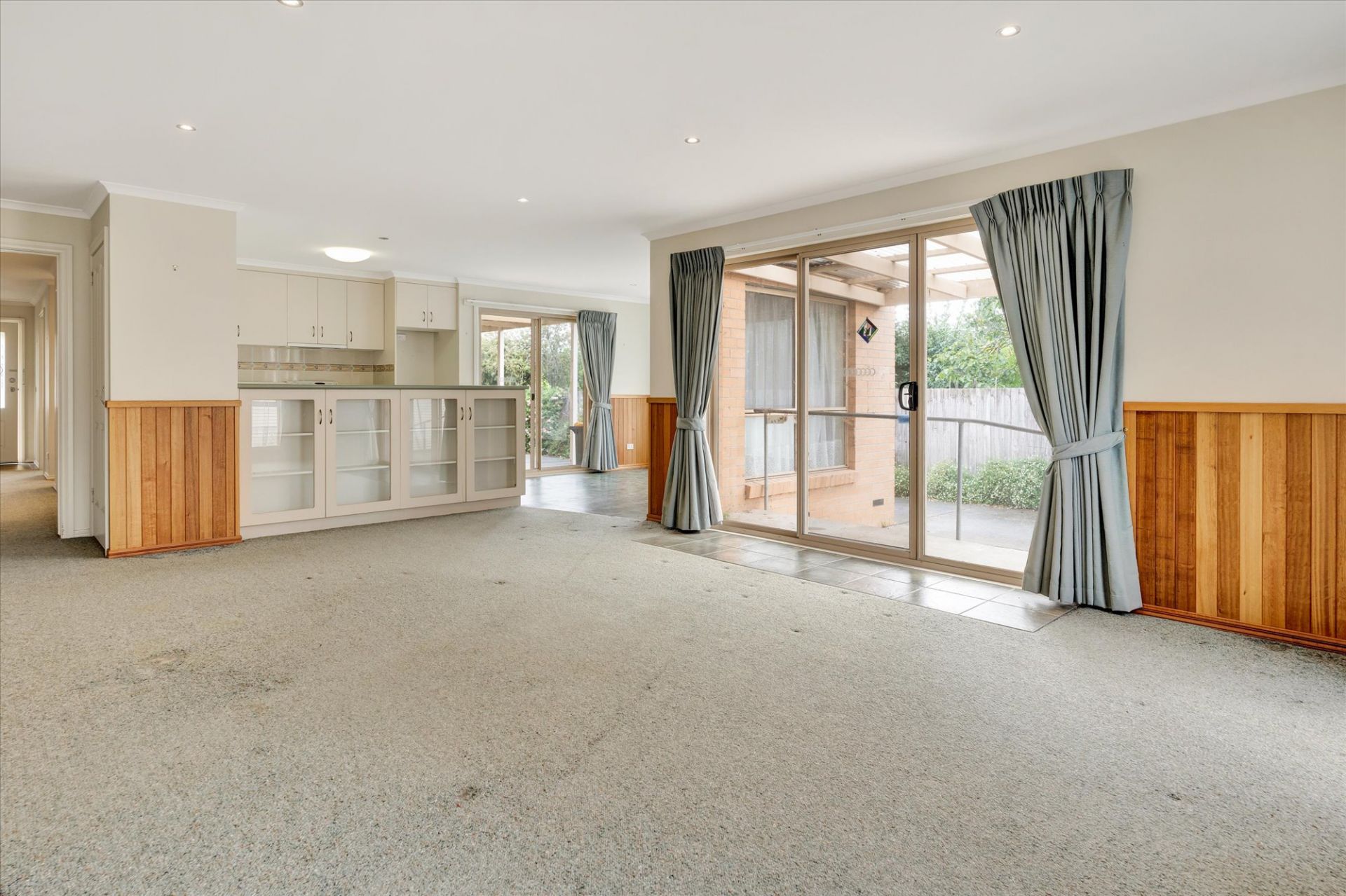 The master bedroom features a walk-in robe and private ensuite for added comfort. The two additional bedrooms are well-sized with built-in robes and are serviced by a central bathroom with a separate shower and bath. The spacious living and dining areas provide a versatile space for entertaining or relaxing with family and friends. The central kitchen with ample storage, also offers scope for improvement, making it an ideal project for those looking to create a more functional and modern cooking space.