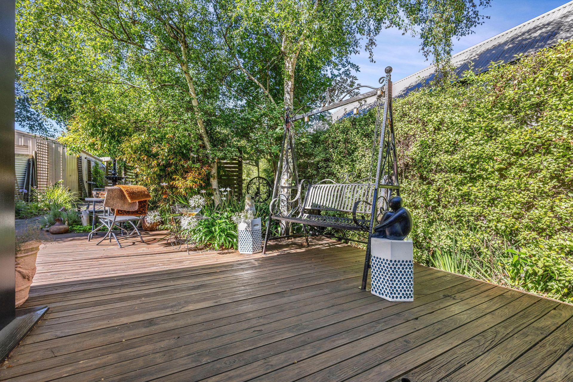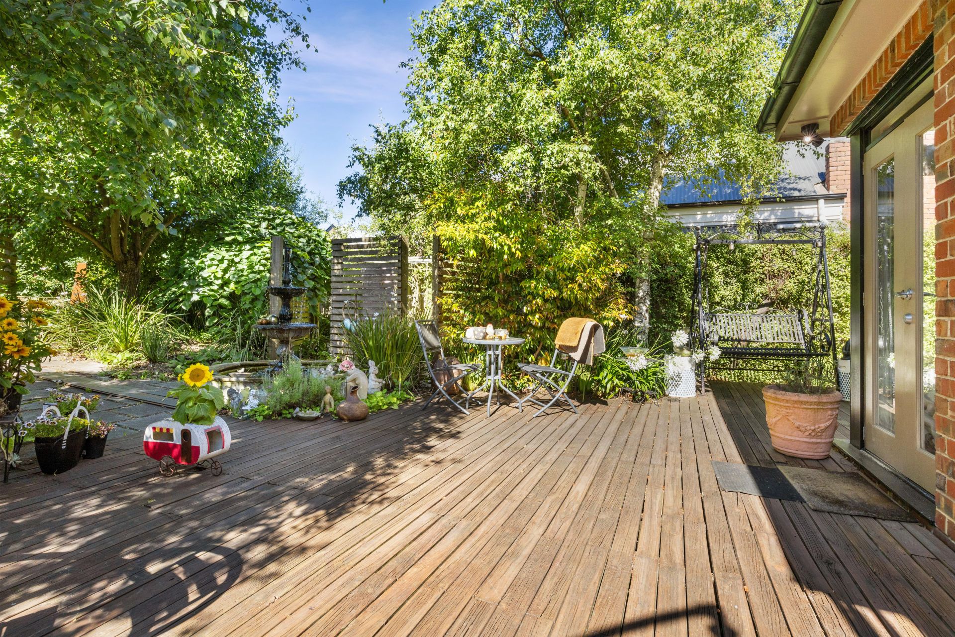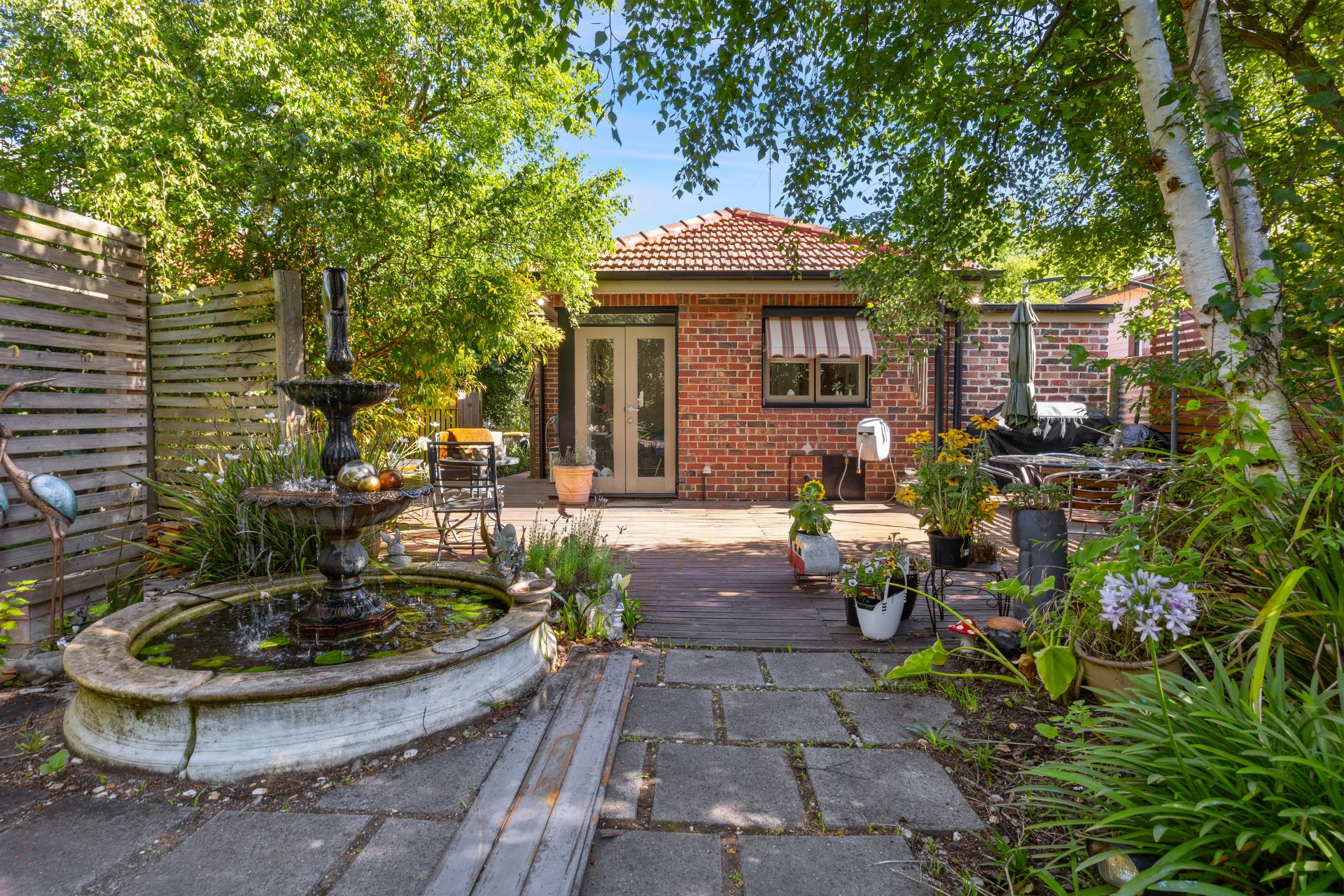Step outside to discover your own private oasis. Mature gardens surround you, creating a peaceful retreat complete with a garden tank and a delightful fish pond/fountain. The large entertaining deck offers an ideal space for gatherings, while external blinds provide shade and privacy.