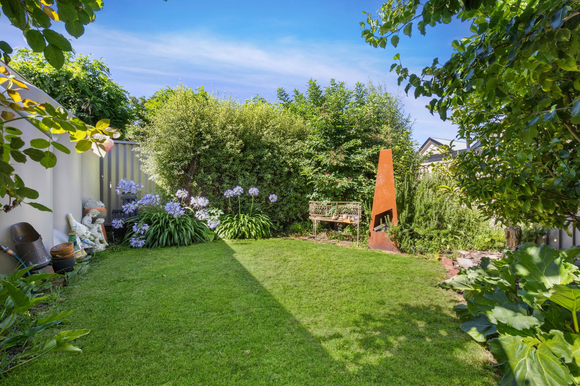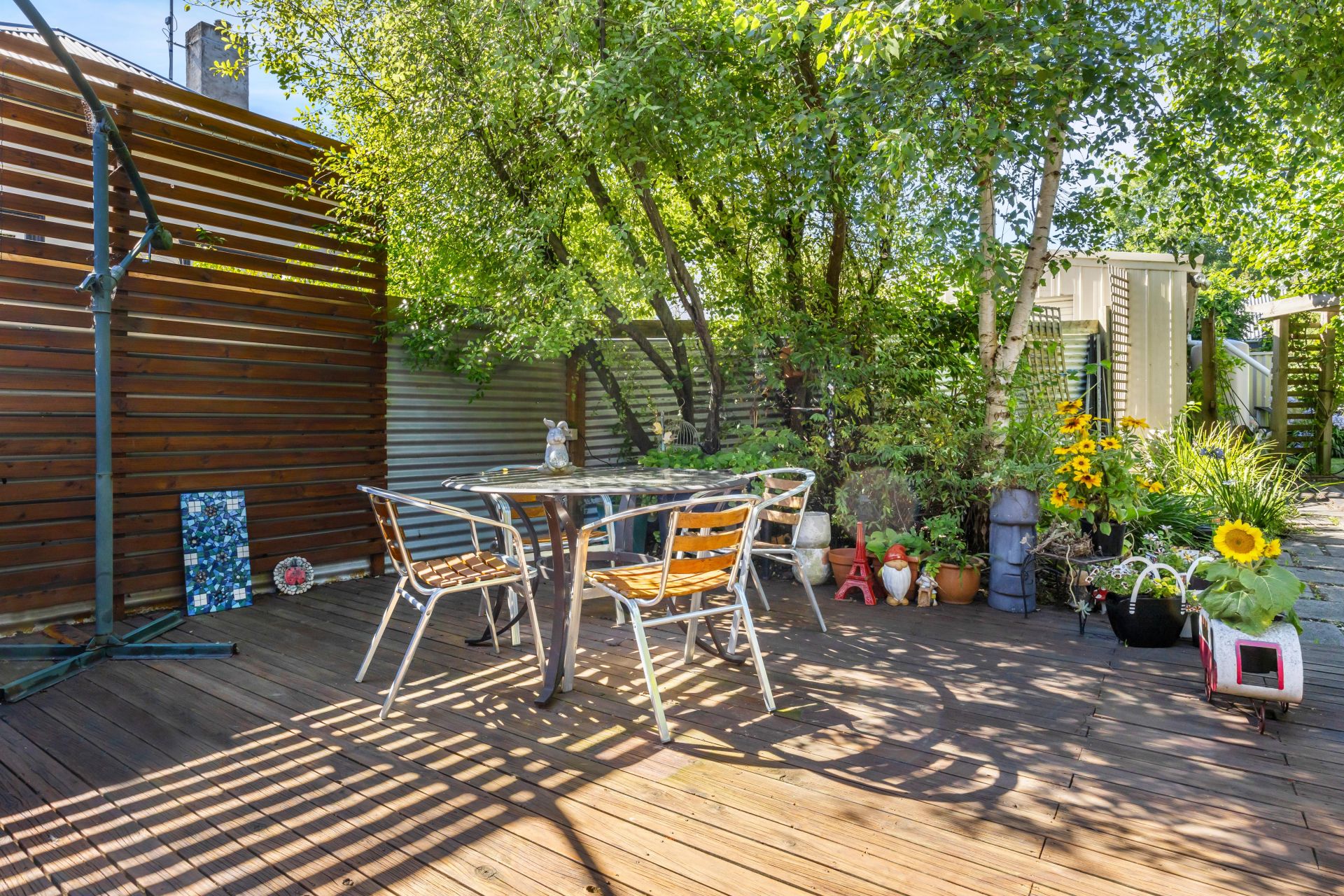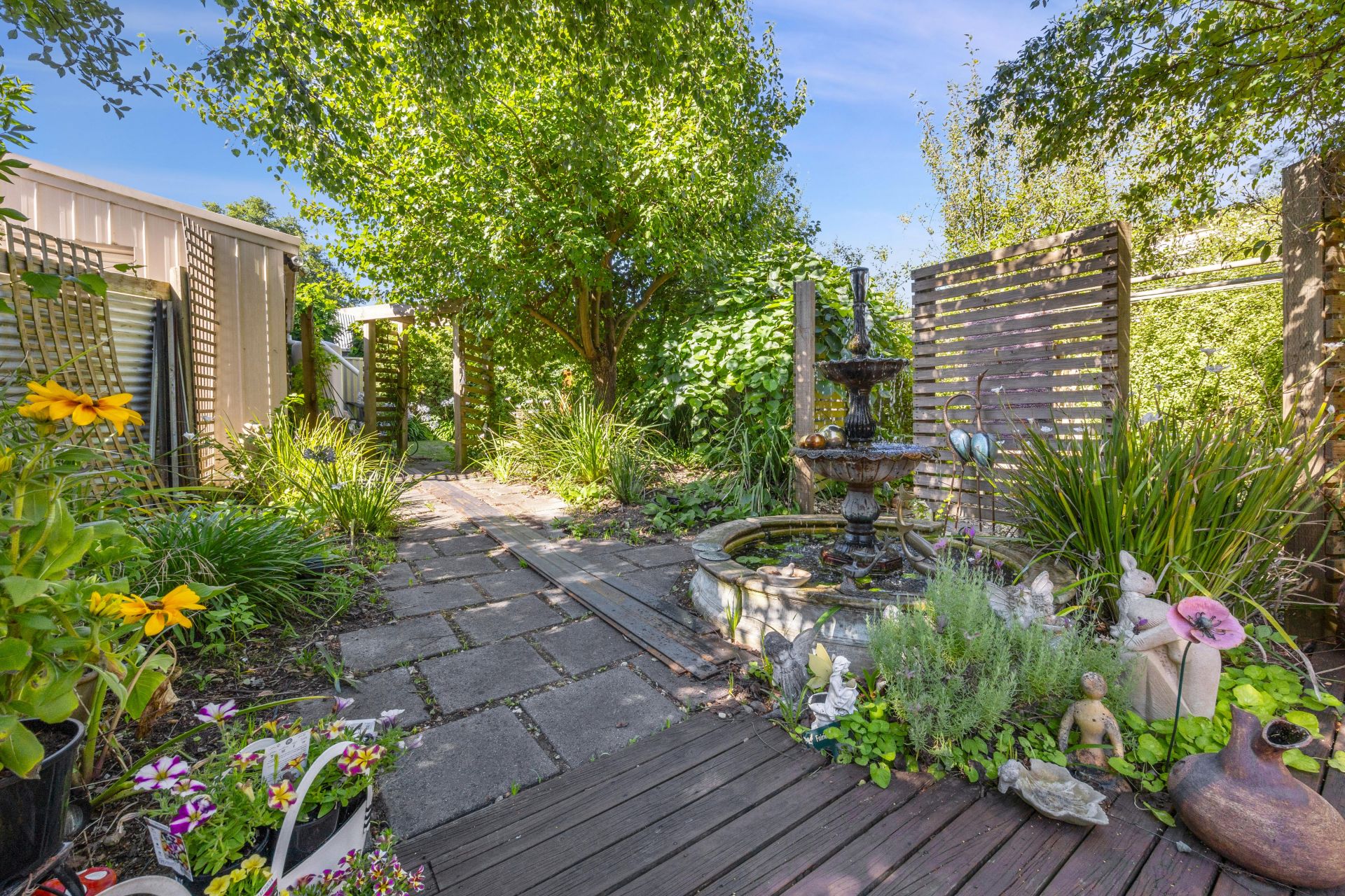 Step outside to discover your own private oasis. Mature gardens surround you, creating a peaceful retreat complete with a garden tank and a delightful fish pond/fountain. The large entertaining deck offers an ideal space for gatherings, while external blinds provide shade and privacy.