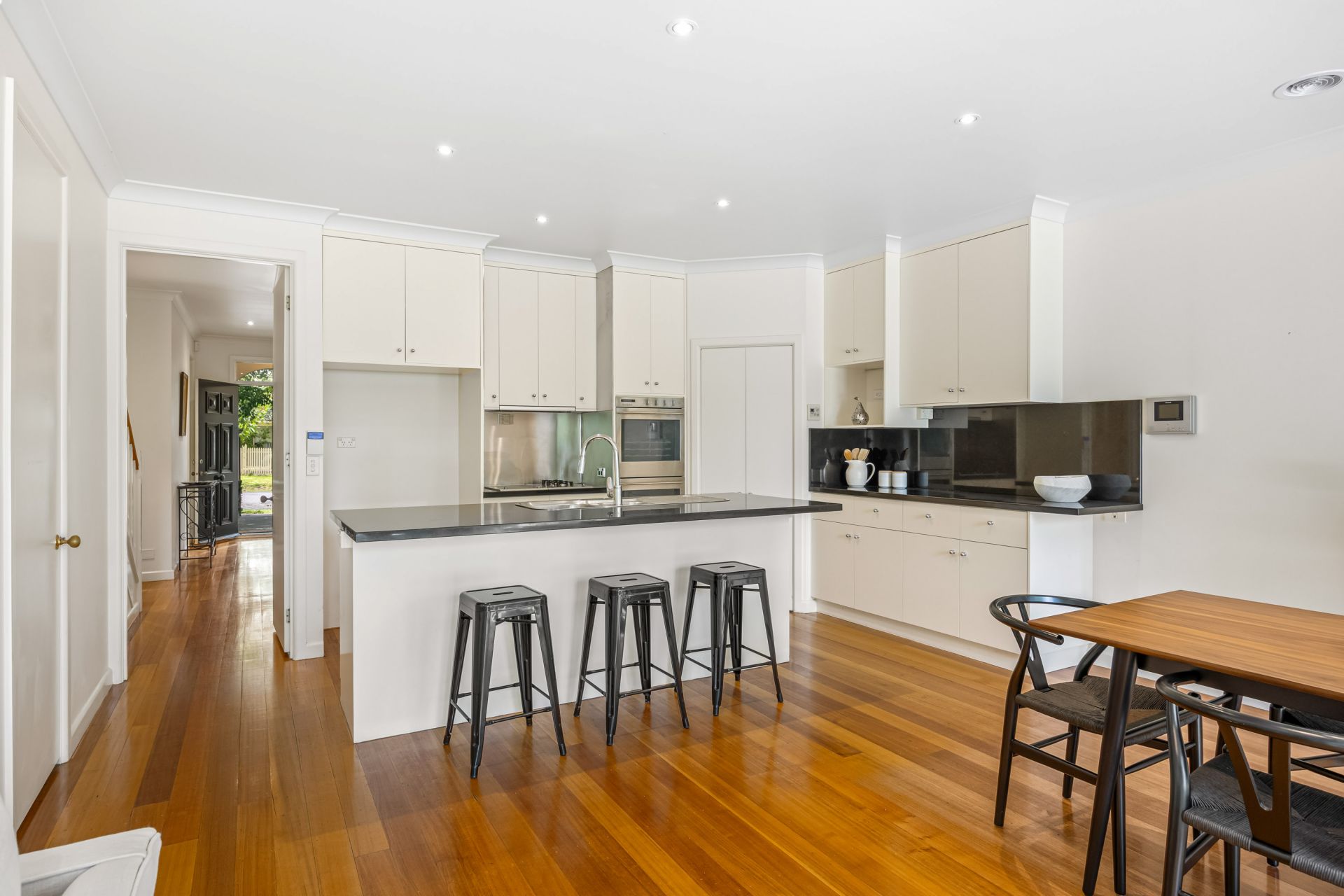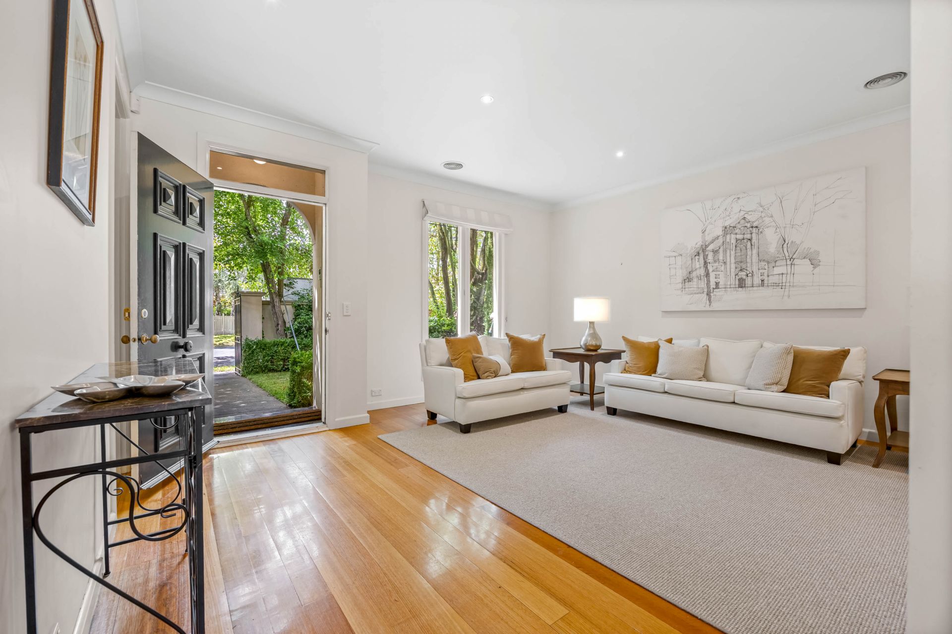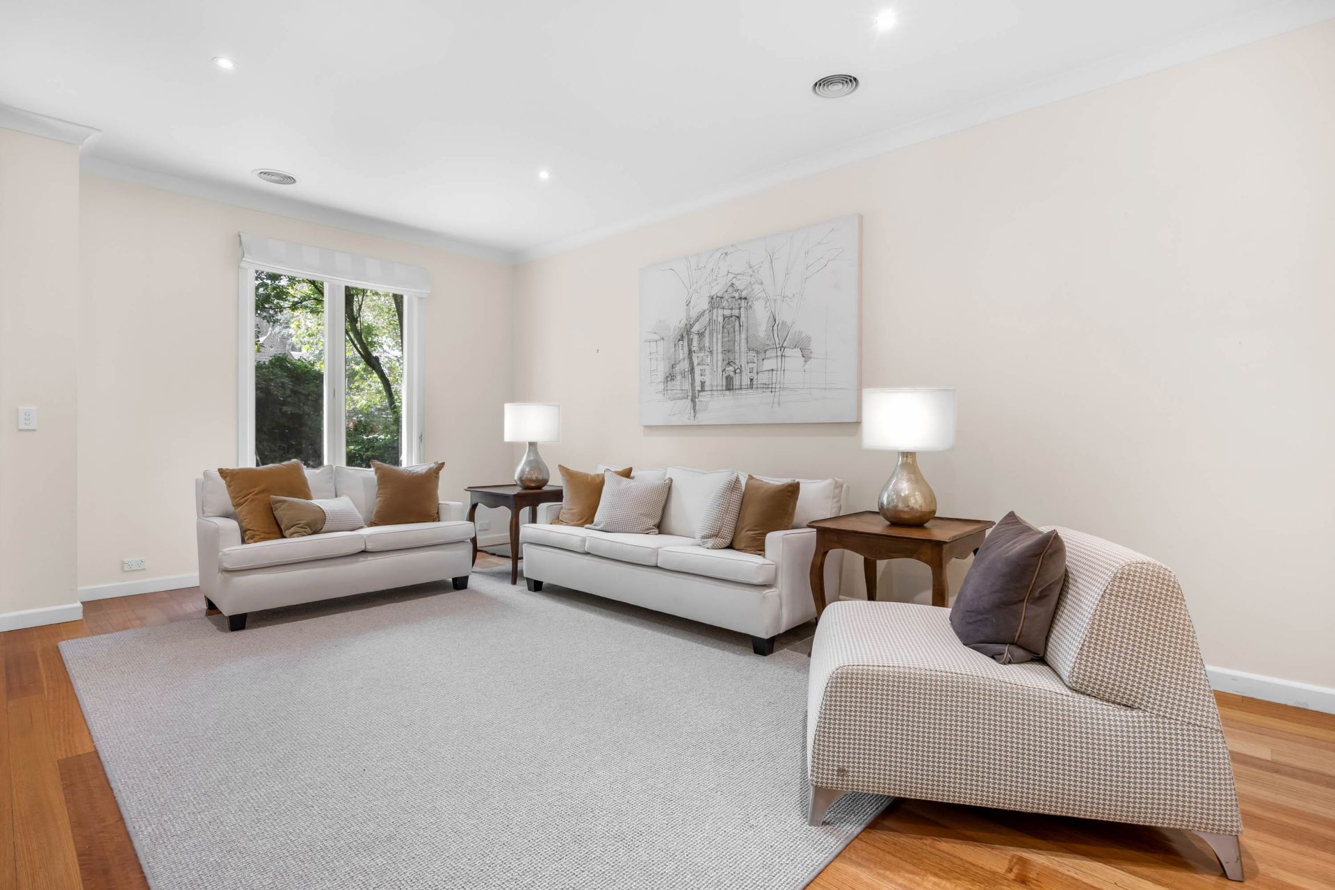 This quality Georgian style, steel framed home is tucked away in one of Ballarat's most prestigious tree lined streets. The location enjoys close proximity to Lake Wendouree, top public and private schools, the hospital precinct and CBD all while being in a very quiet street. Behind the private and secure front fence you will find an inviting four or five bedroom home complete with rear access to a triple lock up garage with remote door. The home has quality fixtures and fittings throughout as well as sweeping high ceilings that offer a sense of space while the abundance of windows bath the home in natural light. The kitchen, meals and living area is open plan with French doors out to your spacious outdoor entertaining area. There is a further formal dining and living space that is separate and is close by to your study with quality joinery that could also be a fifth/guest bedroom. The master bedroom is spacious with ensuite and walk in robe while all other bedrooms have built in or walk in robes. The upstairs family bathroom has separate shower and bath in addition to a third ground level bathroom. A full laundry which is west facing is positioned on the ground level with easy access outside. The home is serviced by a security system, gas central heating and split systems. Outside you have a well manicured enclosed yard that leads to your secure triple garage. This is a once in a lifetime opportunity to purchase such a great sized quality home in this blue chip location. The exclusive listing agent Adam Vranesic looks forward to meeting you at another busy Ballarat Real Estate open home.