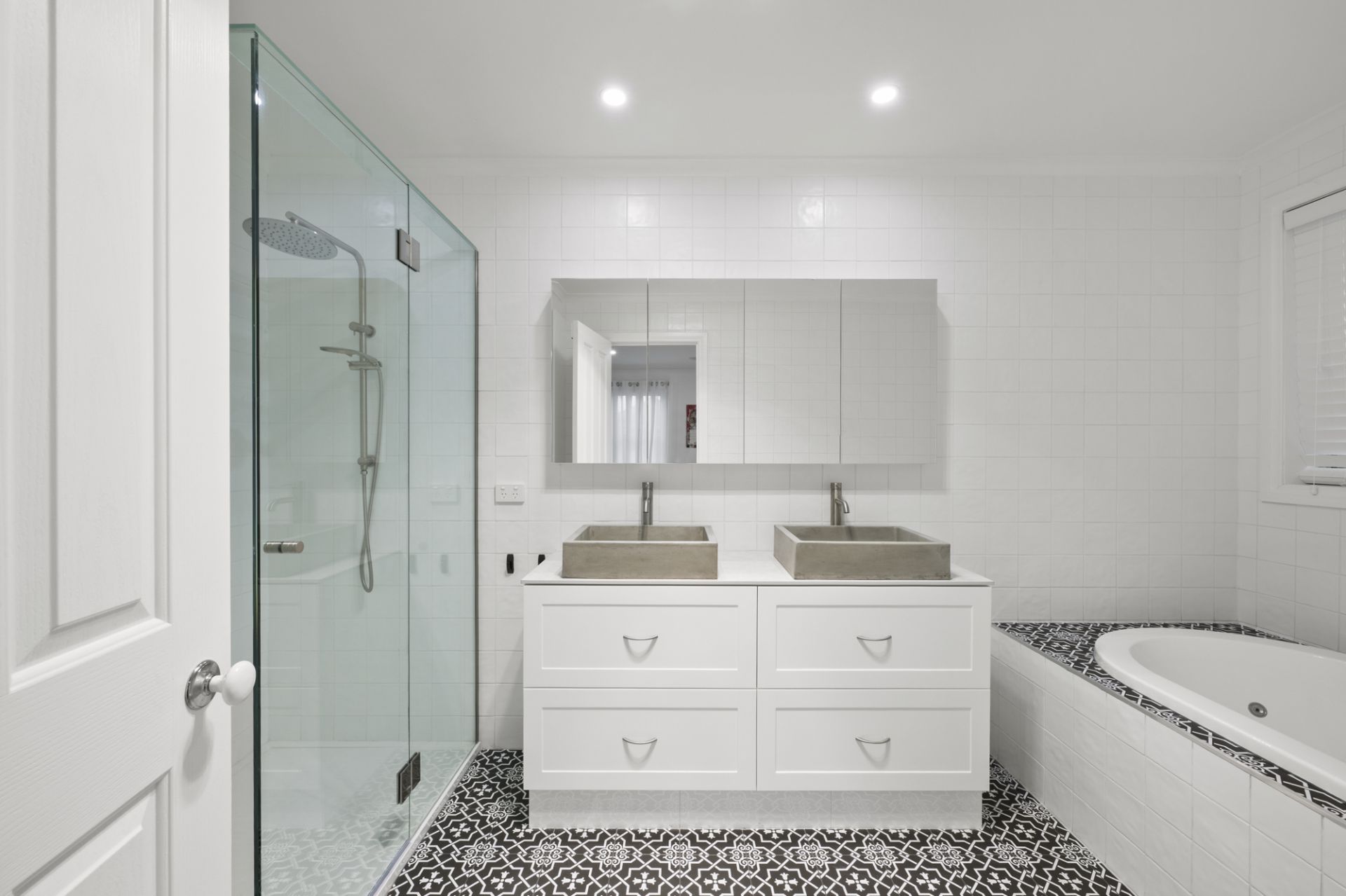 Throughout the home, carefully chosen finishes add warmth and character, including shiplap feature walls, leadlight Tudor windows to the entry, and statement chandeliers that create a soft sense of elegance. The bathrooms have been stylishly renovated with high-end finishes, while the luxurious ensuite features a spa and oversized shower with rainwater showerhead. The laundry continues the premium feel with an under-bench ceramic sink and quality benchtop finishes.