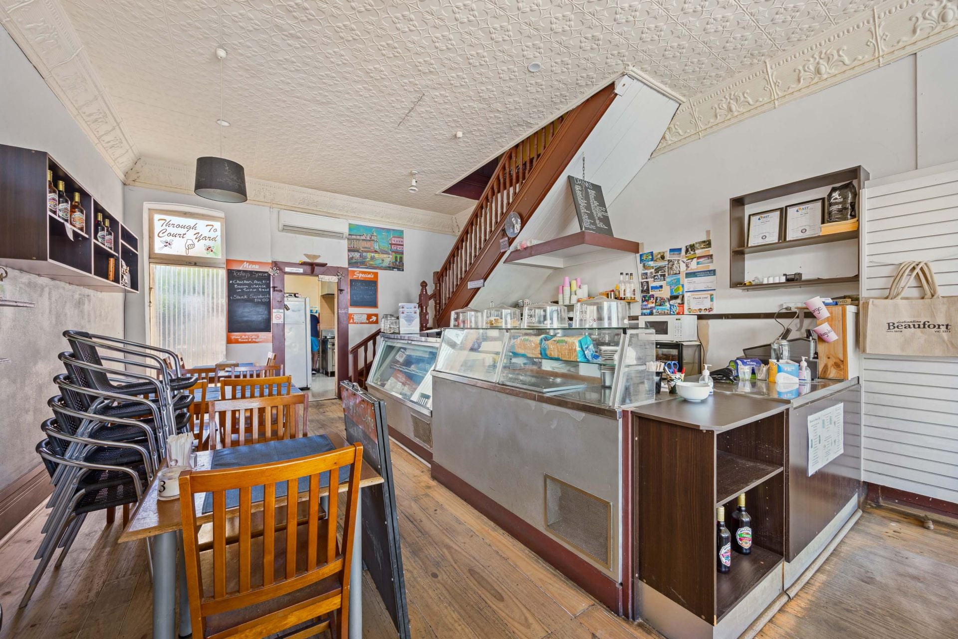 Currently operating as a successful café, the premises boast a well-equipped commercial kitchen and spacious upstairs dining and meeting areas, catering to various business needs. The inviting outdoor paved alfresco area enhances the café's appeal, offering a relaxed setting for patrons. Spanning approximately 143sqm of land with a generous 148sqm building footprint, the property provides ample space for its intended use.