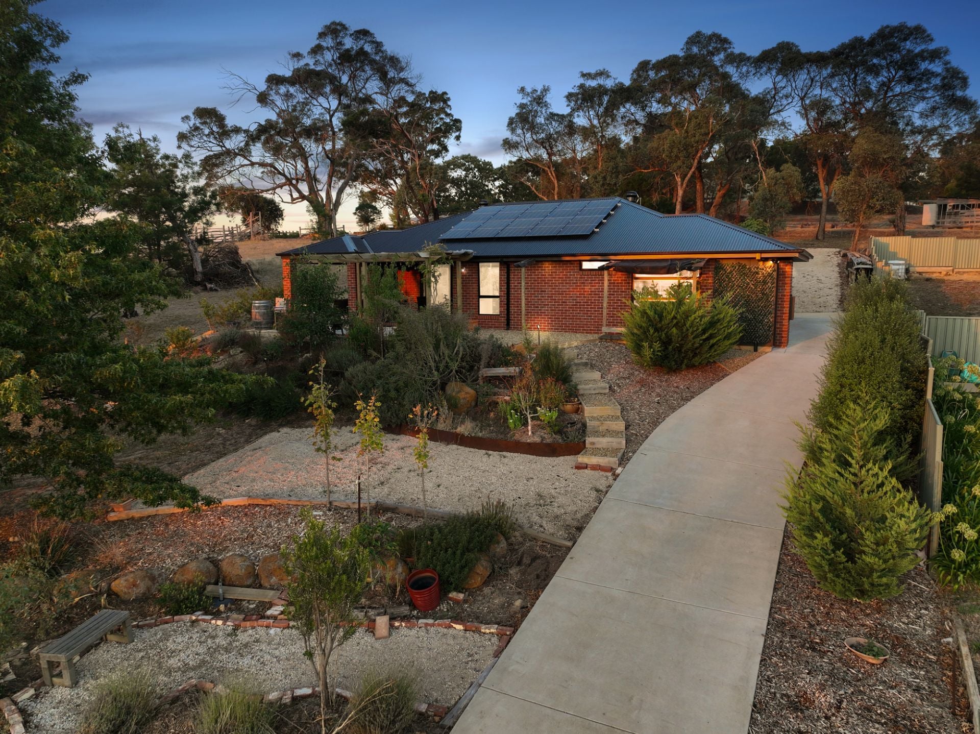 Positioned in the popular country township of Beaufort, this recently built quality three-bedroom brick veneer home combines a modern design with a country charm. Situated on a huge allotment of 1,229m2 (Approx.) it offers three well-appointed bedrooms, including a master suite complete with a beautiful view over layered native garden and paddocks, has a walk-in robe and private ensuite. The remaining bedrooms are generously sized and include built-in robes. The heart of the home is the large open plan kitchen, living and dining, providing a functional space for the whole family. The kitchen includes stone bench tops and ample storage space while overlooking the north and west countryside views. The family bathroom includes a shower, bath and vanity and there is also a separate toilet. The home is serviced by split system to ensure heating and cooling year round. Stepping outside the home, there is an elevated fire pit area overlooking the surrounding rural views and backing onto a nature reserve. There is also a sturdy rear shed with concrete flooring and road access at the rear adds functionality for those needing other vehicle parking. All that's left to do is move in and enjoy! The exclusive listing agent Dominic Morrison looks forward to seeing you at another busy Ballarat Real Estate open home.