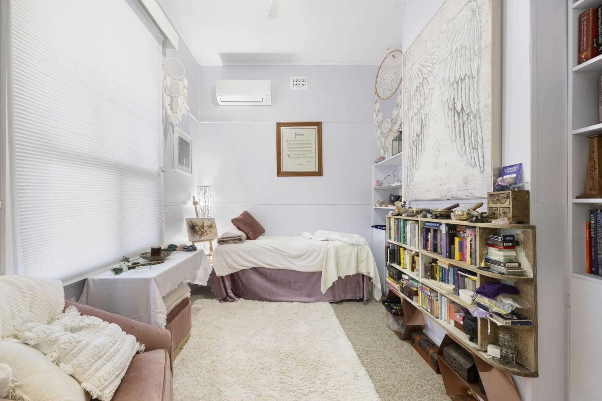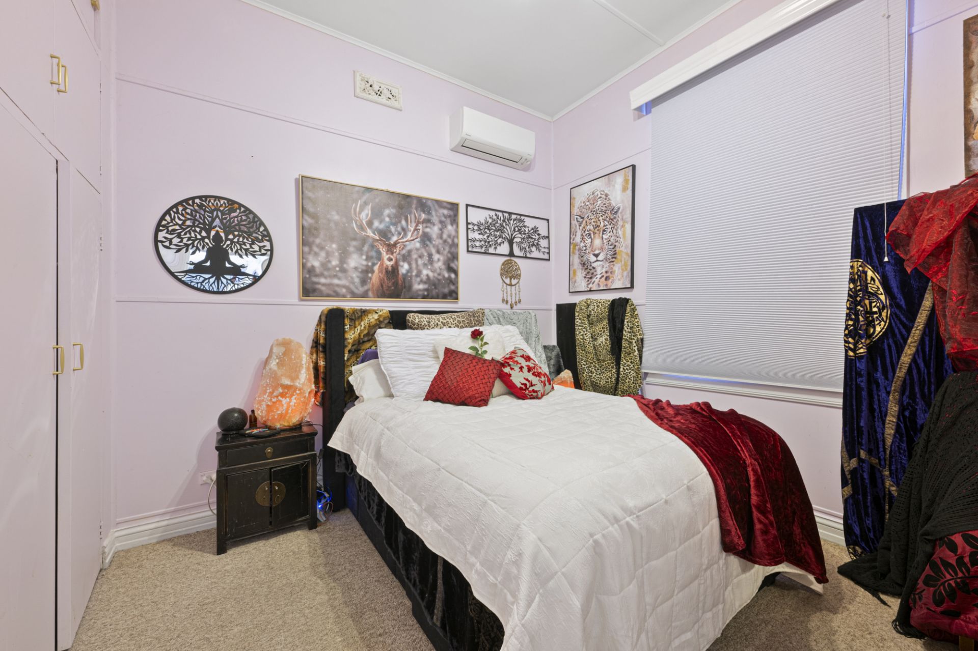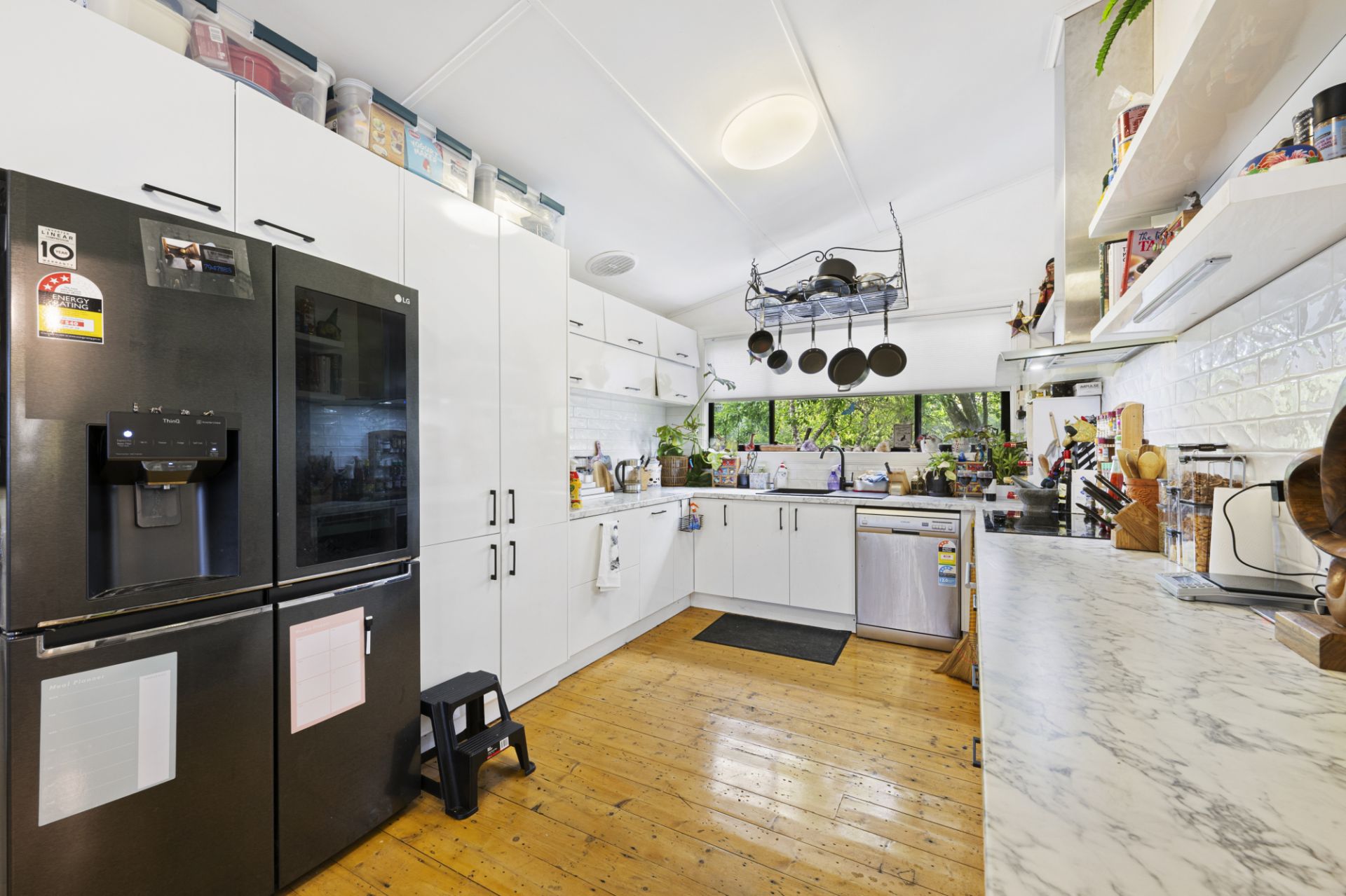 The home features three spacious bedrooms, a well-appointed bathroom, a light-filled open plan kitchen and dining area, a comfortable living room, laundry, an inviting front porch and a large shed. The kitchen enjoys an abundance of natural light and includes an induction cooktop and built-in pantry, while the bathroom is bright and functional with a walk-in shower. Bedroom one includes a built-in robe, and heating and cooling is provided by a split system (dining/bedrooms one, two and three) and a wood heater in the living room, ensuring year-round comfort.