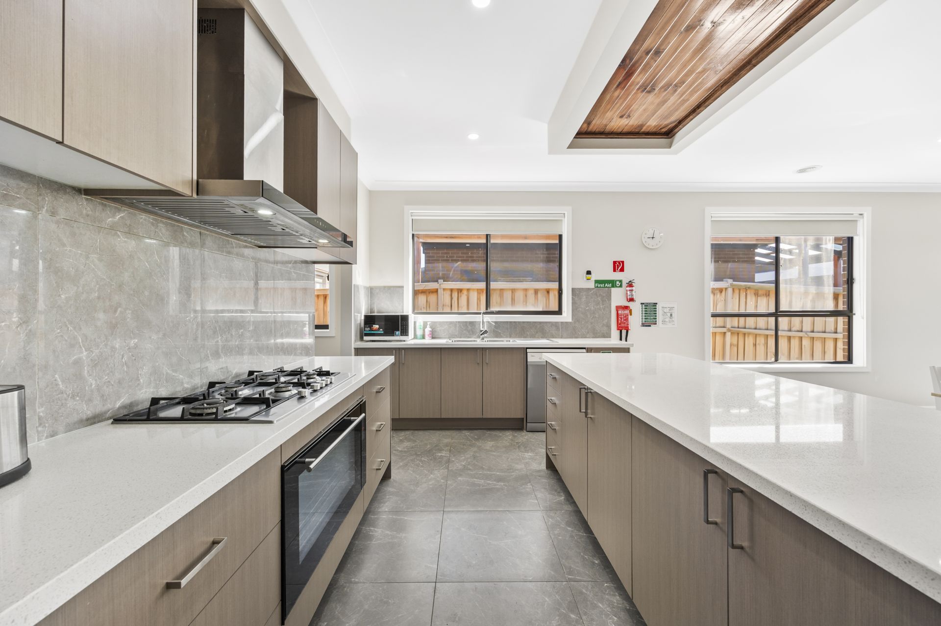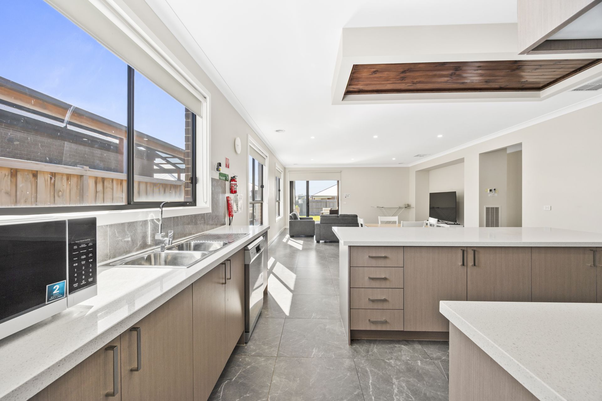 Inside, the home has a bright and welcoming feel. The open-plan living, dining, and kitchen area is spacious and flows easily, making it ideal for family life and entertaining. The kitchen is well-designed and features stainless-steel appliances including an oven, cooktop, and dishwasher, along with plenty of bench and storage space.