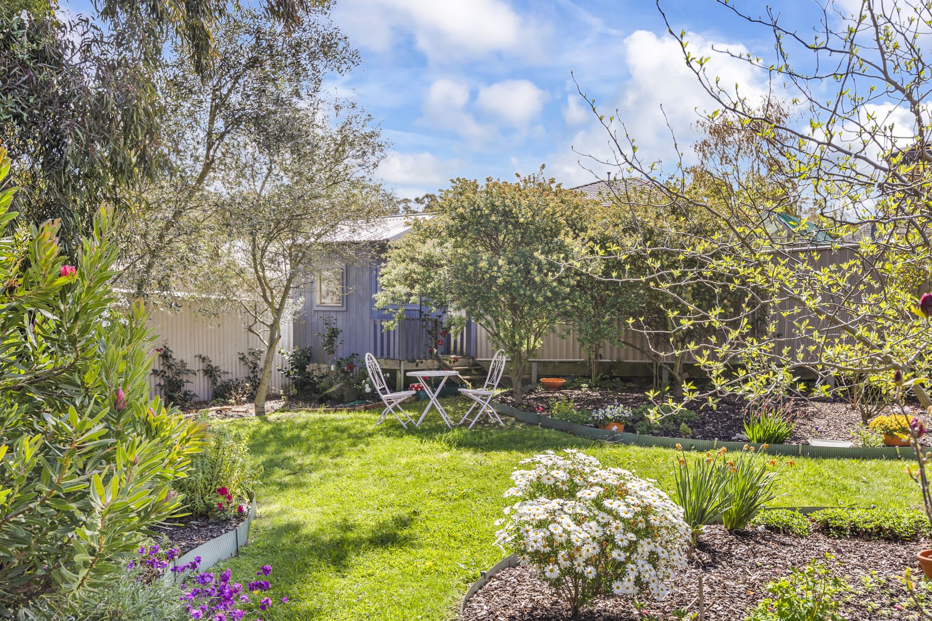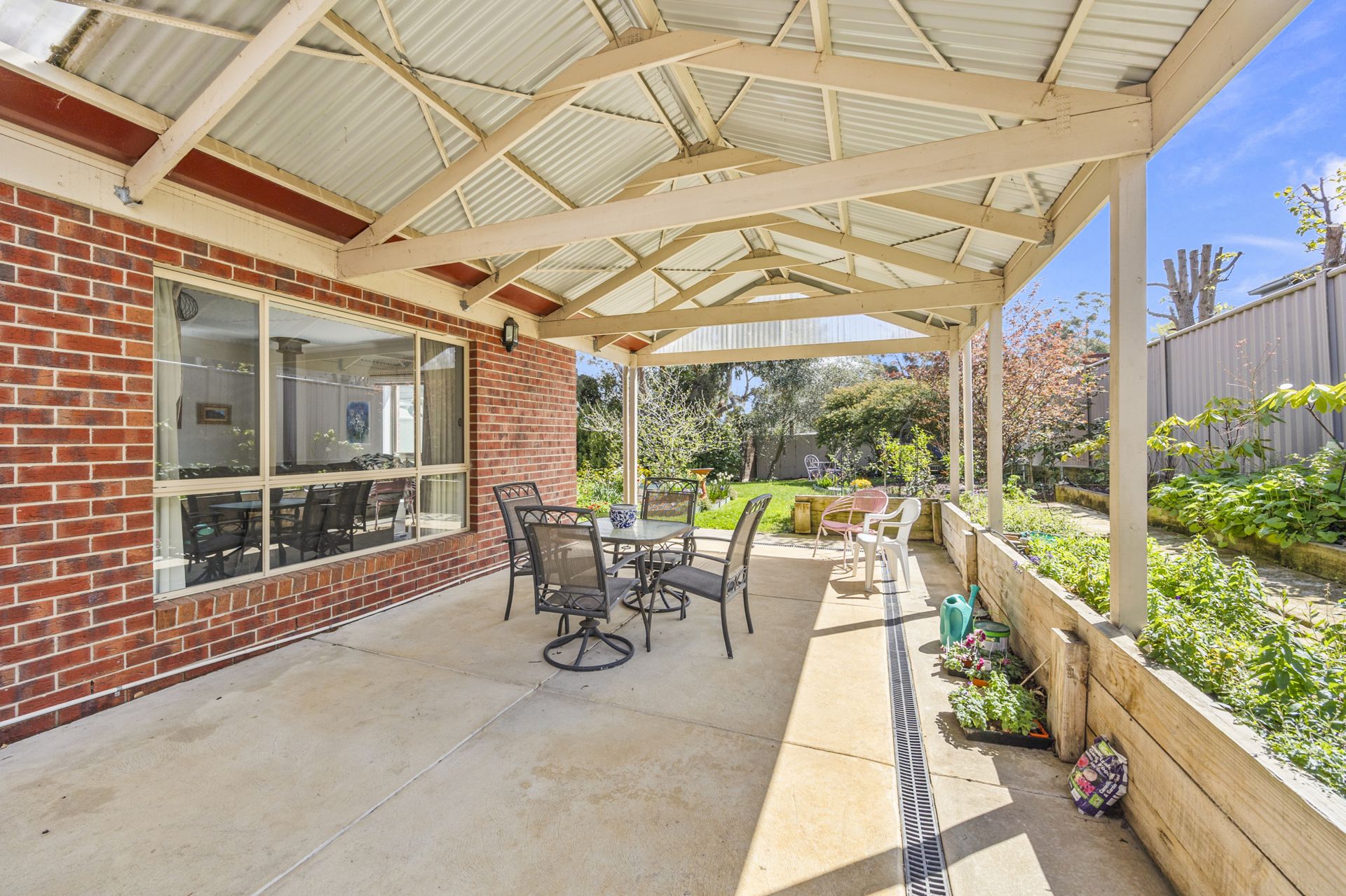 Outdoors boasts a large undercover alfresco, manicured gardens, cubby/garden shed and drive-through garage access to the rear shed – perfect for caravans or trailers.
