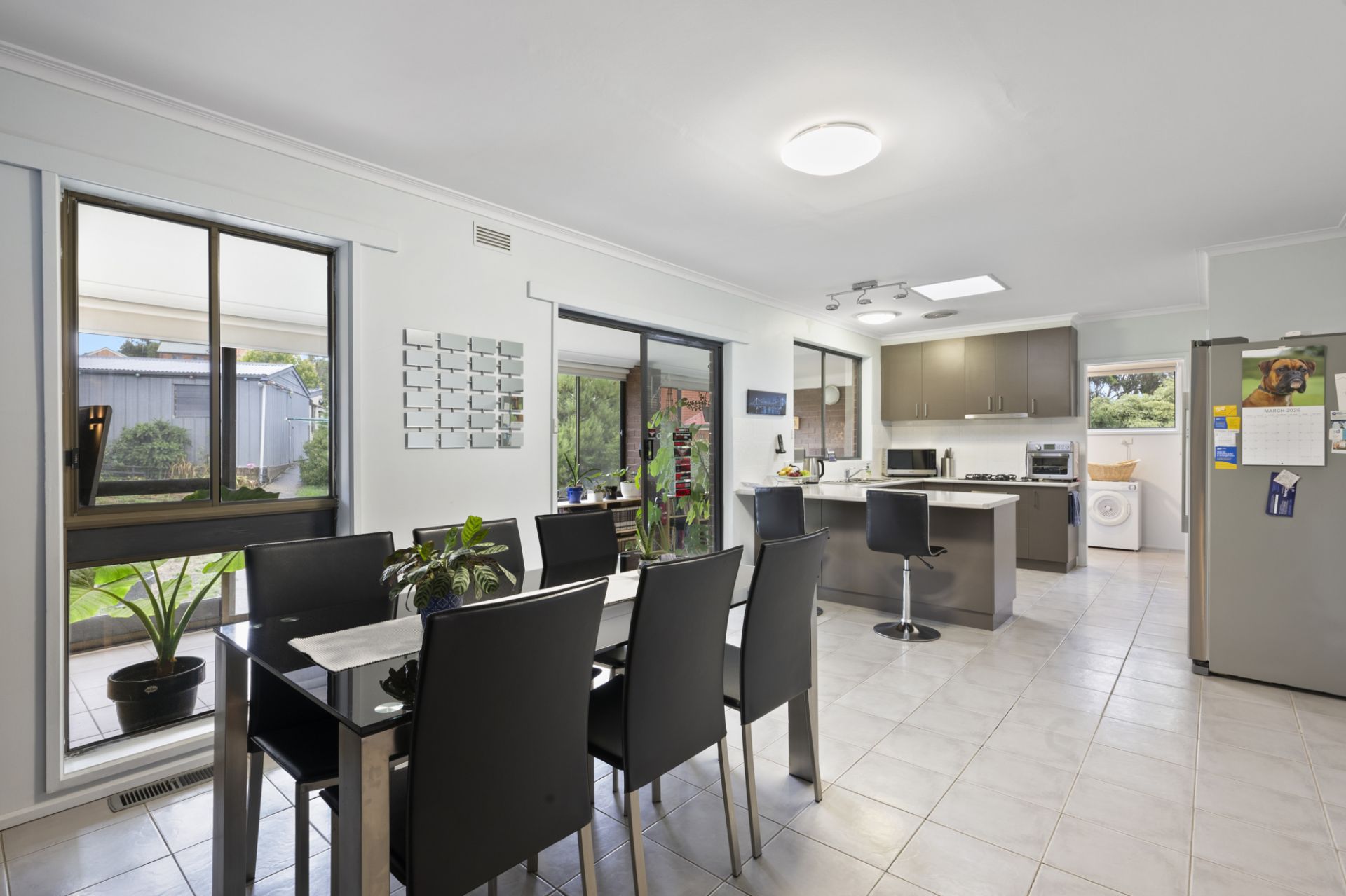 The heart of the home is the open-plan kitchen and dining zone, flooded with natural light and thoughtfully designed with stainless steel appliances, a built-in pantry and expansive benchtops ideal for family living and entertaining.