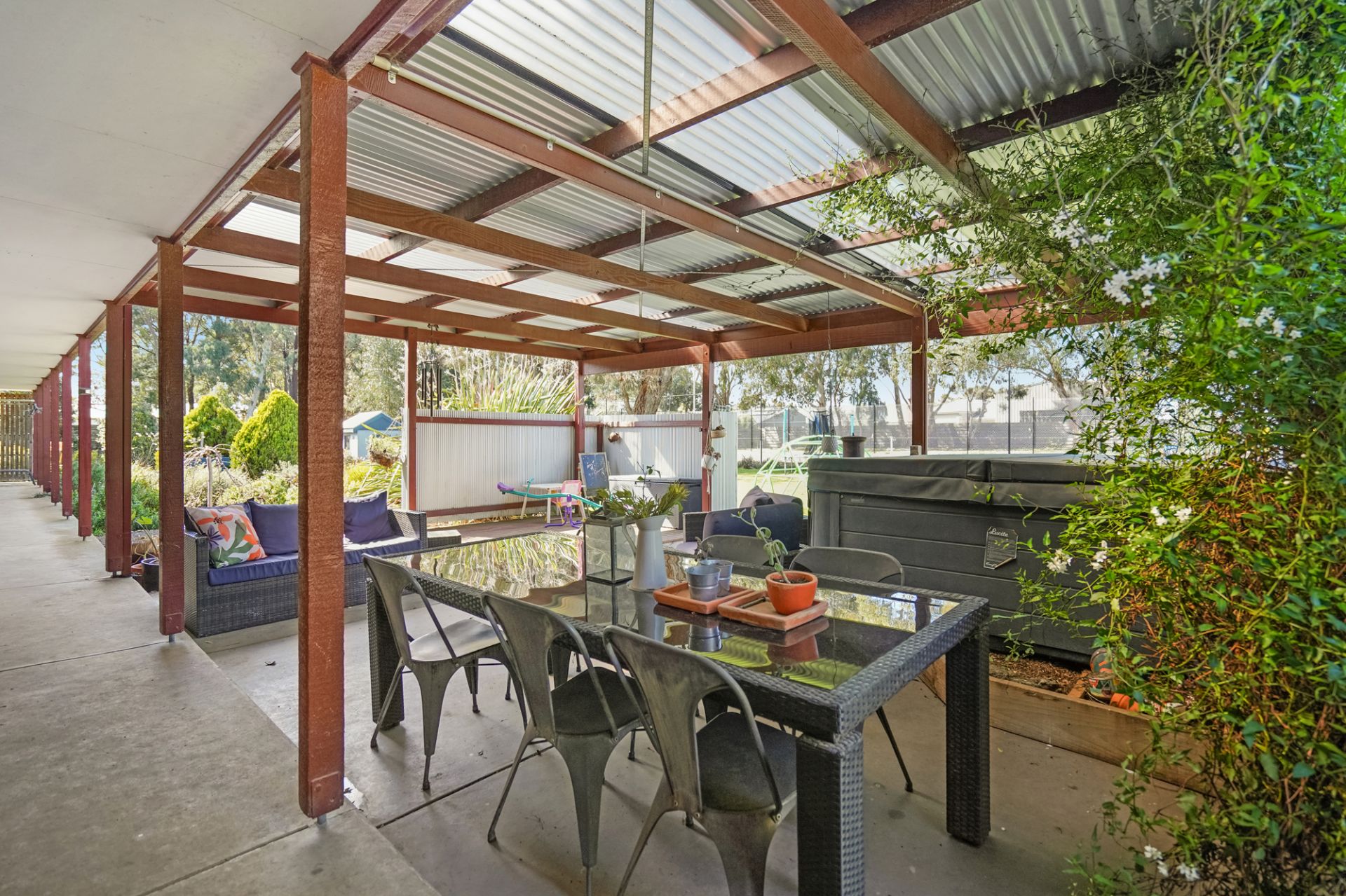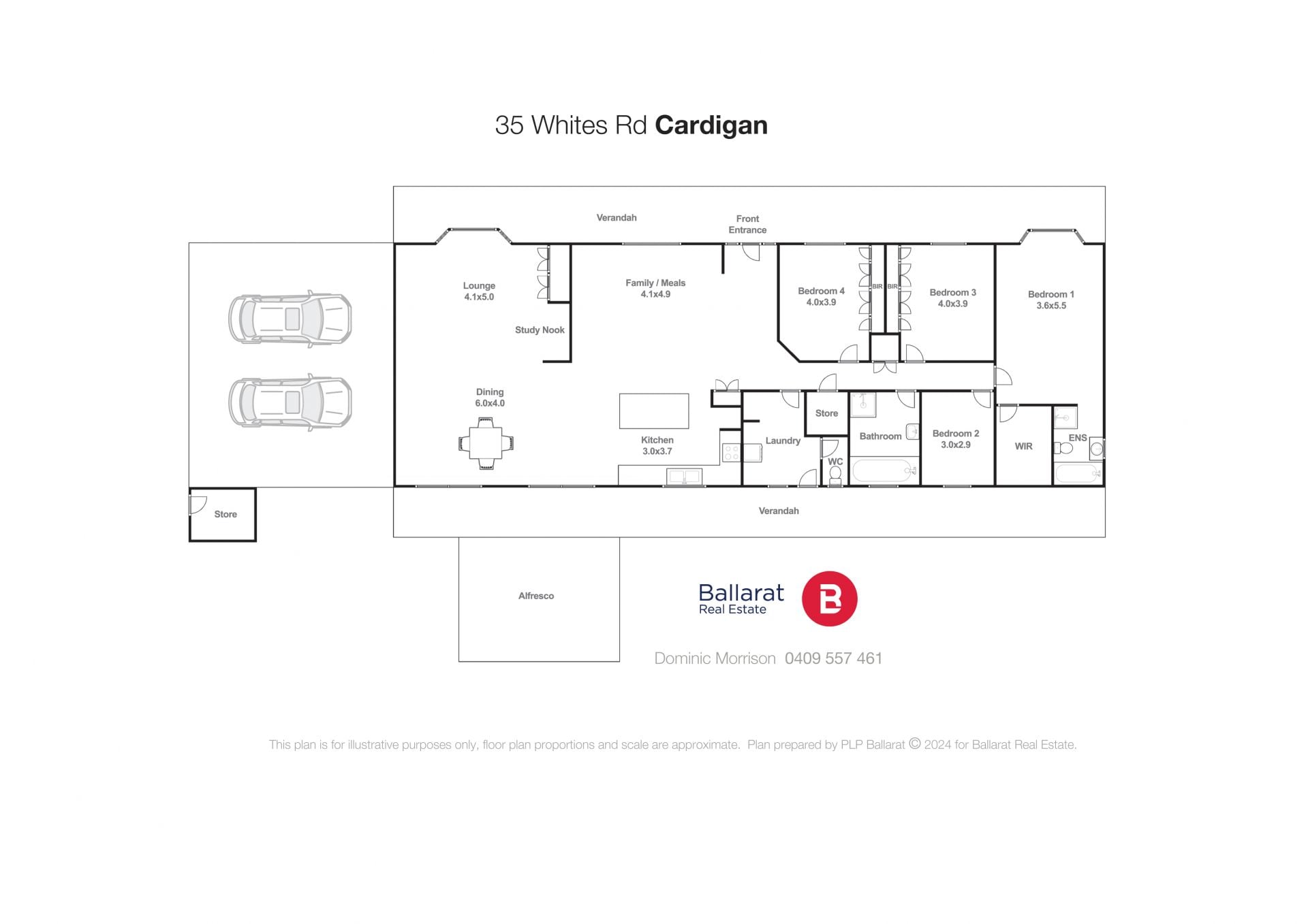 This substantial home is located in popular Cardigan on over two acres (approx.) of flat land with room for animals, shedding and even a tennis court. The location on the fringe of Ballarat is highly sought after due to its proximity to Lucas Shopping Centre, top schools and the Western Freeway. The lifestyle property allows the purchaser to enjoy the peace and quiet of country living while having all the conveniences of Victoria's third largest city close at hand. The home is of grand proportions with a huge open plan living, kitchen and meals in the middle of the home. At one end of the house you have a further second living space with cosy wood fire while at the other end is four bedrooms and two bathrooms. The ensuite is luxurious with twin vanities while the main family bathroom has a walk in shower and bath. There is also a full laundry. The home is serviced by a powerful wood heater as well split systems for both heating and cooling. Outside the home transforms into a family entertainer with a huge undercover entertaining area as well as outdoor spa and tennis court. There is plenty of flat grass for the kids to play as well as paddocks and stable for horses or pony's. Attached to the home is a large double carport as well as further shedding throughout the property and plenty of space for more (STCA). This one has it all, inspection is a must! The exclusive listing agent Dominic Morrison looks forward to meeting you at another busy Ballarat Real Estate open home.