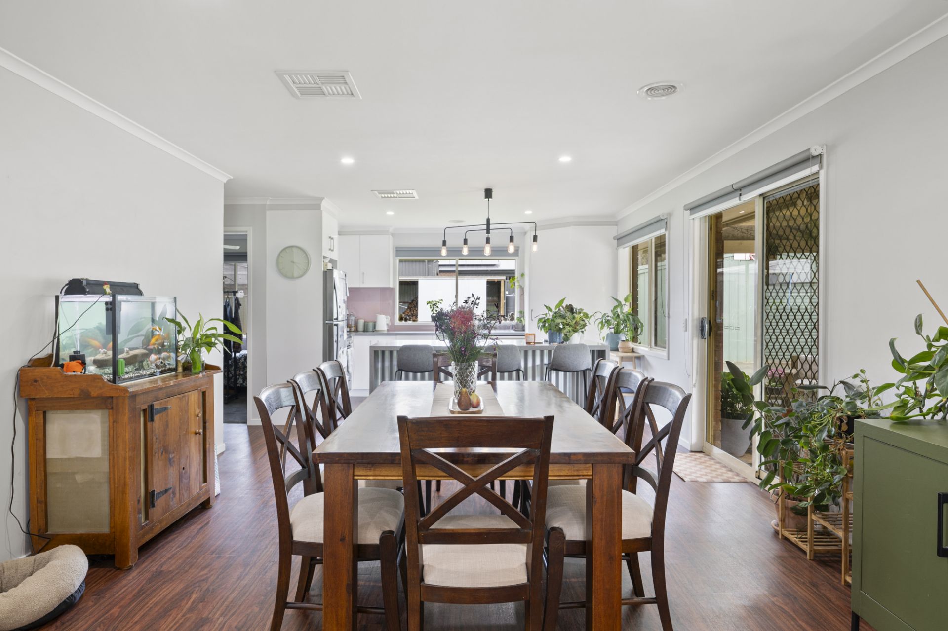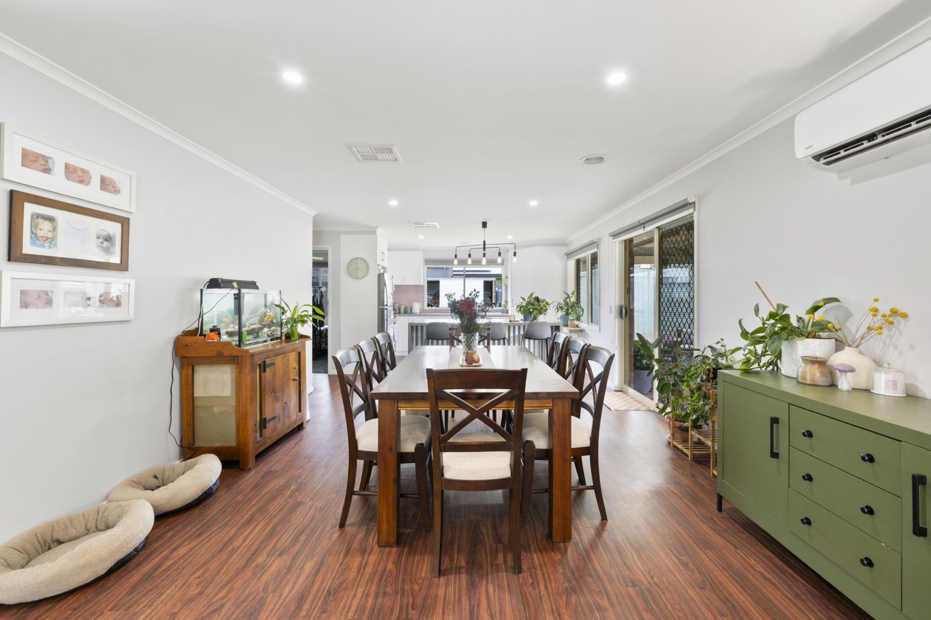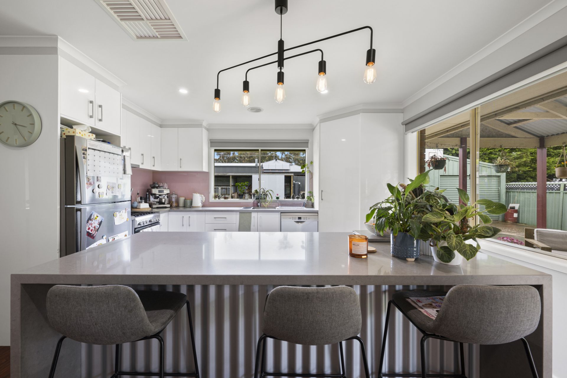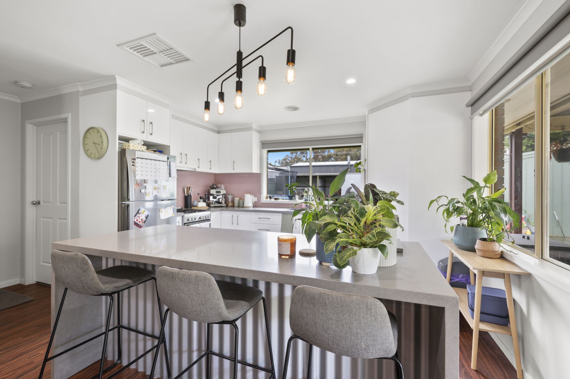 Bathed in natural light, the open-plan kitchen and living space showcases stone benchtops, stainless steel appliances, a walk-in pantry and abundant storage, making it a true centrepiece for family living and entertaining.