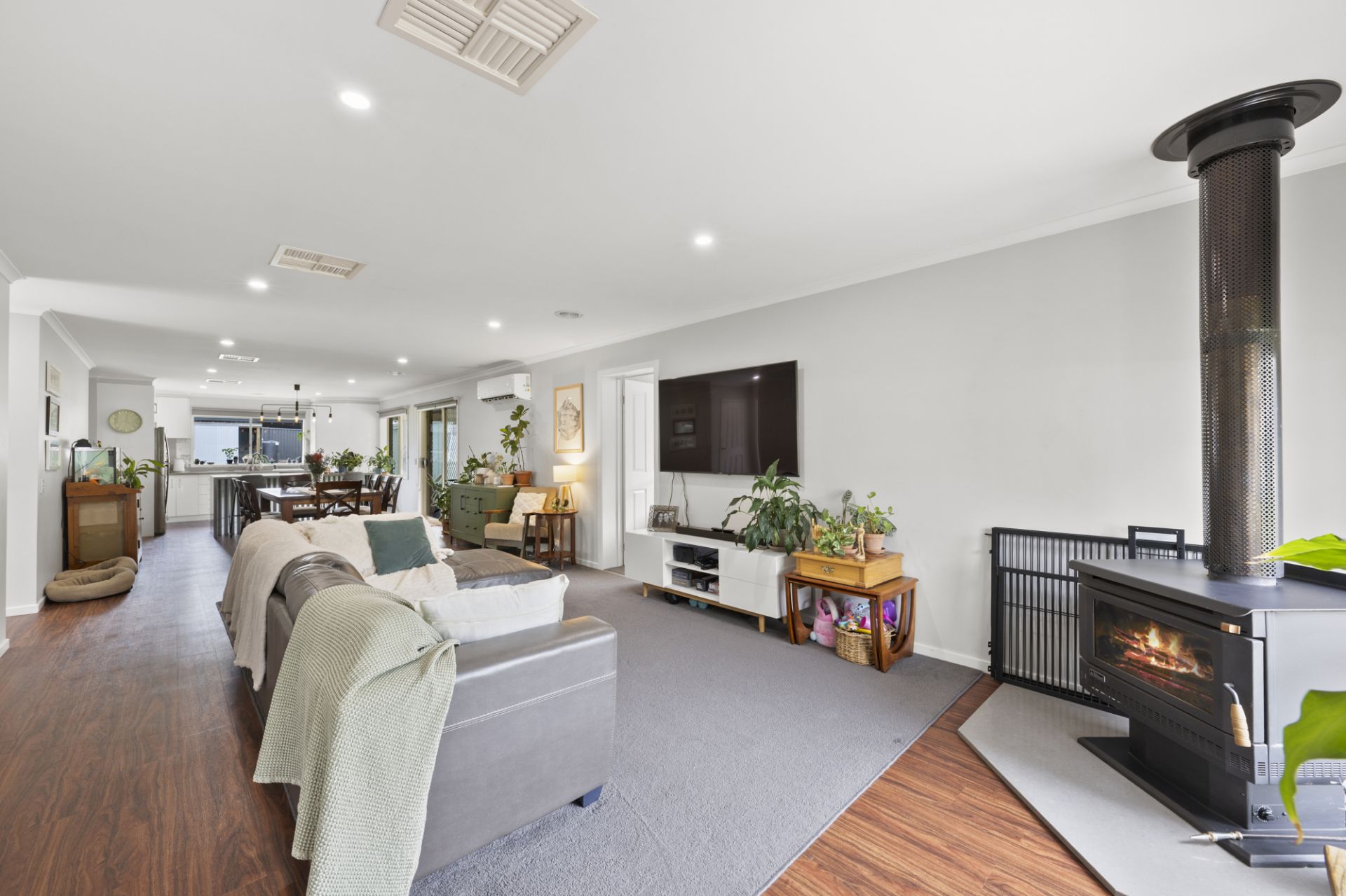 Comfort is assured year-round with central ducted heating and cooling, ceiling fans throughout, and a split system and wood fire in the main living area. Additional features include a dedicated storage room, built-in robes in the bedrooms and attractive timber-look vinyl flooring.