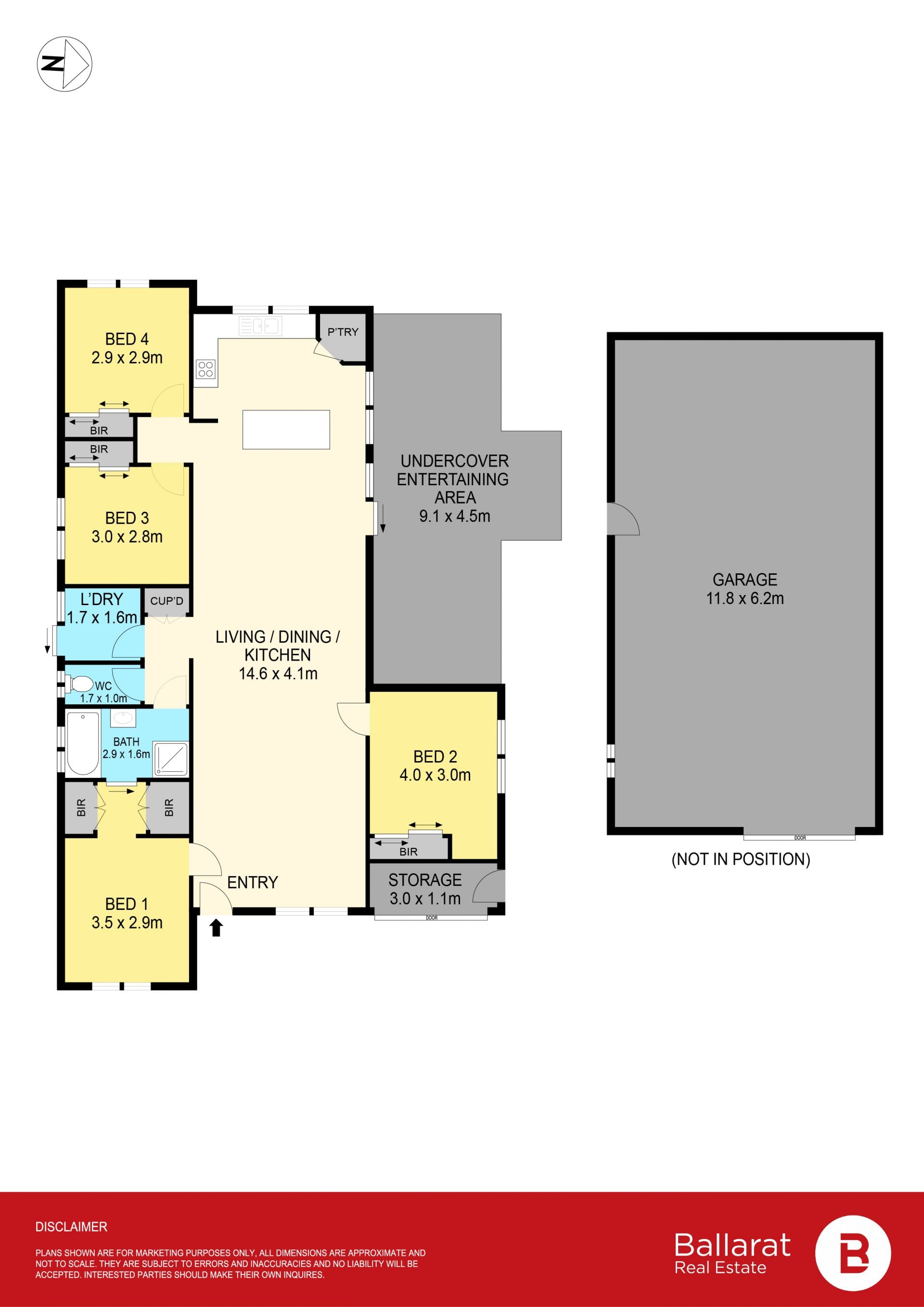 The home features four bedrooms, a spacious open-plan kitchen and living area, a well-equipped laundry, a central bathroom/ensuite configuration, a large garage and a superb undercover outdoor entertaining area. The master bedroom includes a walk-in robe with direct access to the main bathroom, beautifully finished with stone benchtops, a walk-in shower and a relaxing bathtub.