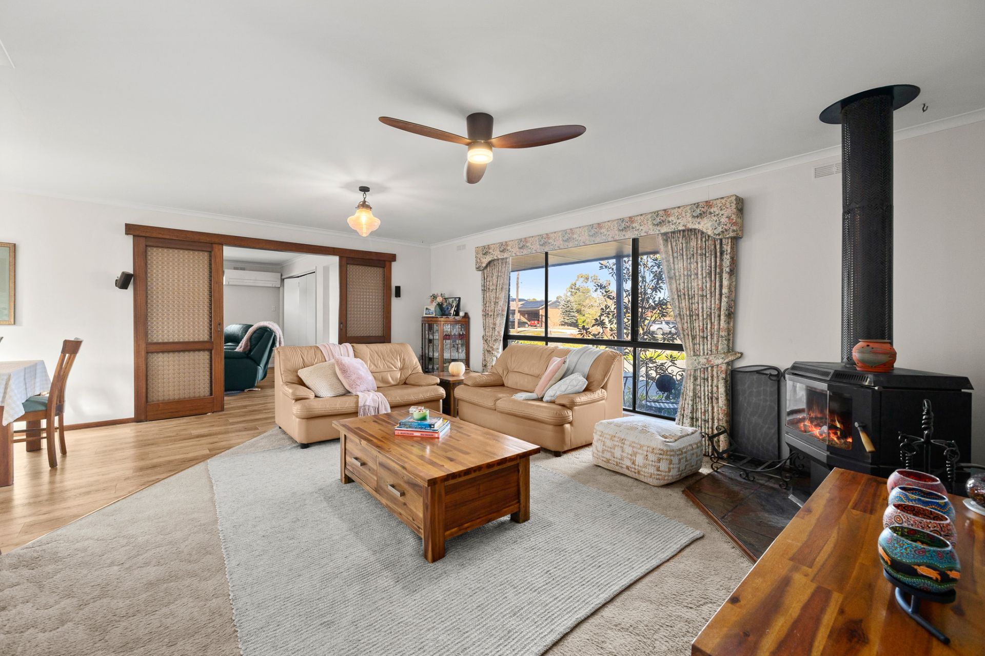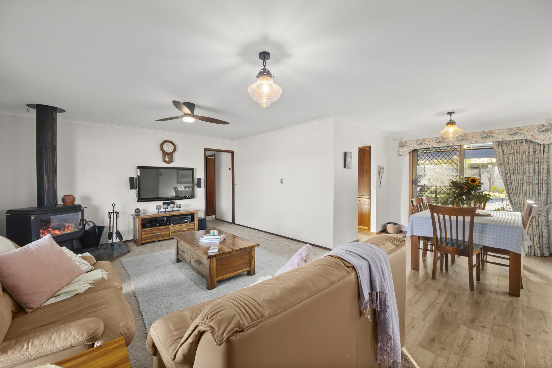 Nestled in a quiet court location in popular Delacombe, this well-presented family home offers exceptional space and convenience, just a short stroll from Delacombe Town Centre, Bunnings and schools. Positioned on a massive, semi-corner allotment of approximately 1809sqm, the home boasts a large, light-filled living area warmed by a cosy wood fire plus central heating throughout and a bonus split system, perfect for year-round comfort. The timber kitchen is both functional and inviting, complete with gas cooking, stone benches, dishwasher and ample cupboard storage. The master bedroom features a walk-in robe and a spacious, modern ensuite fitted with a stunning double shower and dual vanity. The remaining three bedrooms are all fitted with built-in robes and are serviced by the central main bathroom. Step outside to discover an impressive undercover entertaining area, ideal for hosting guests or relaxing with family all year round. The secure, well-maintained yard offers plenty of space for children and pets, while extensive shedding (with 3-phase power) accommodates up to three vehicles, complemented by an additional garden shed for extra storage. A rare offering in a sought-after pocket of Delacombe, this property delivers lifestyle, space, and practicality in equal measure.