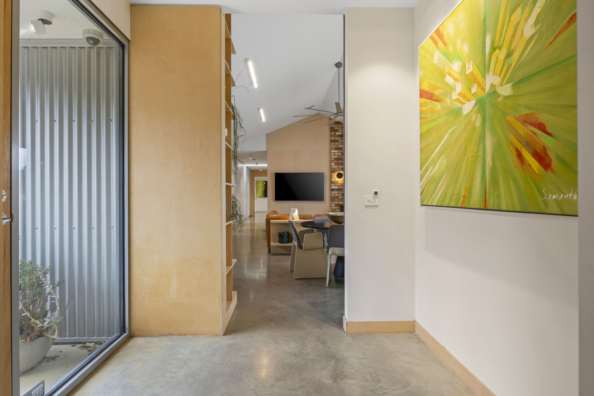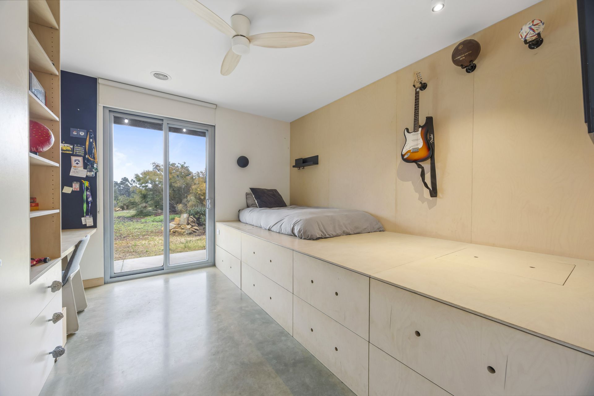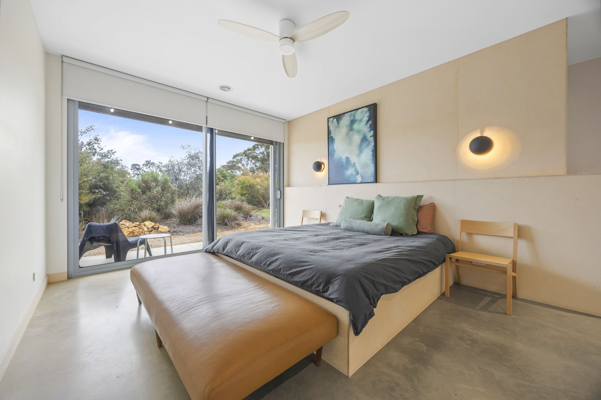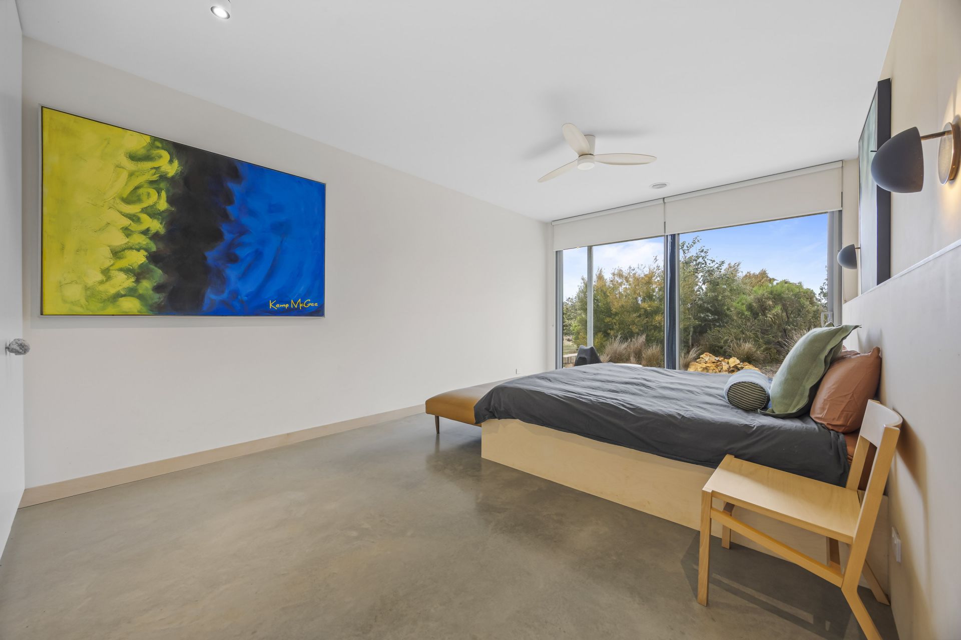The thoughtfully designed floorplan maximizes natural light and space, with clean contemporary lines, soaring ceilings, polished concrete flooring with waffle slab insulation throughout and expansive double glazed windows that frame the stunning rural outlook. The open-plan living and dining area flows seamlessly to a modern kitchen, creating an inviting hub for family life and entertaining with an abundance of cupboard and storage space throughout the home.