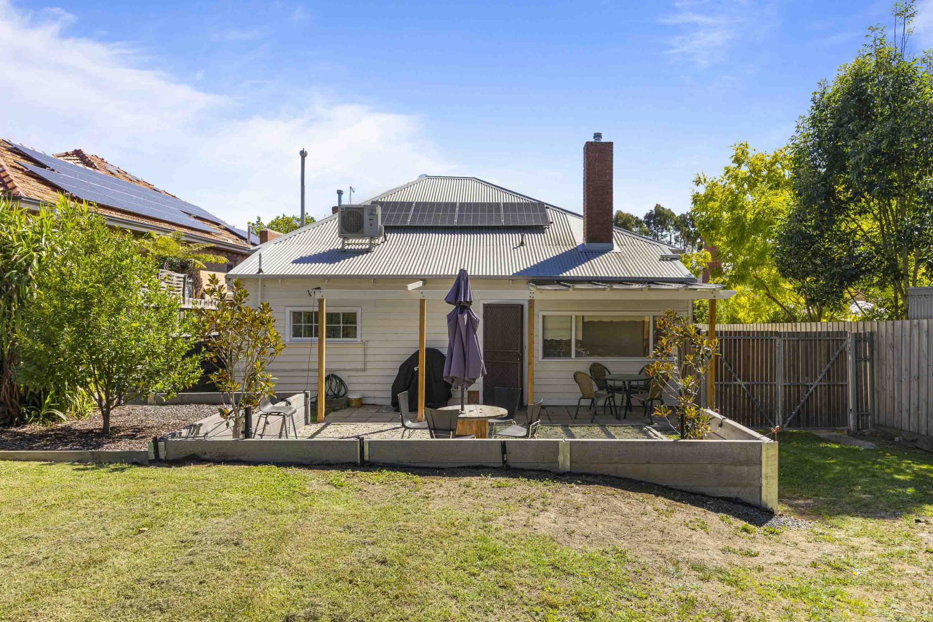The charming weatherboard façade makes a striking first impression, complemented by classic period features including soaring 3-metre ceilings, original leadlight windows, and ornate detailing throughout.