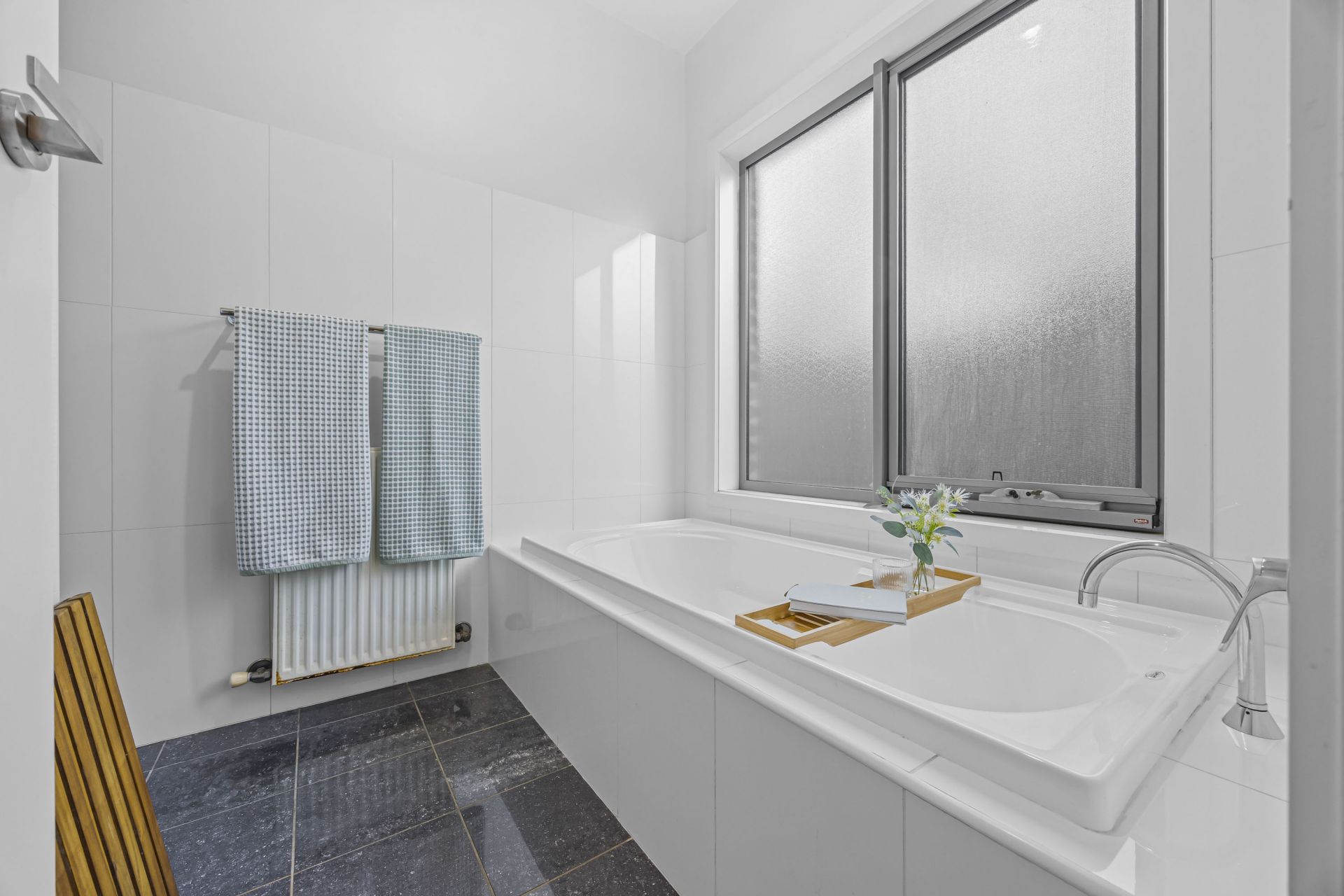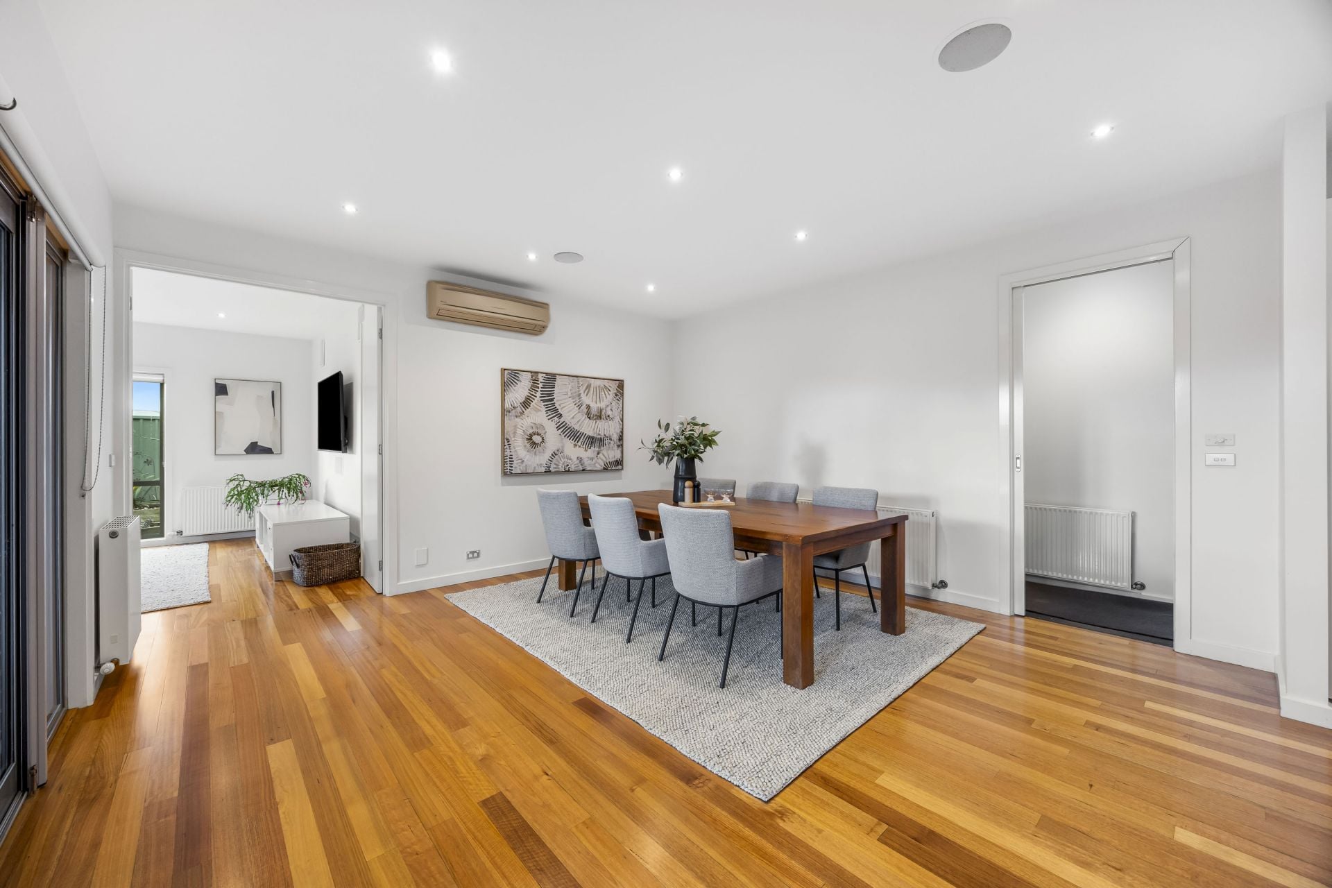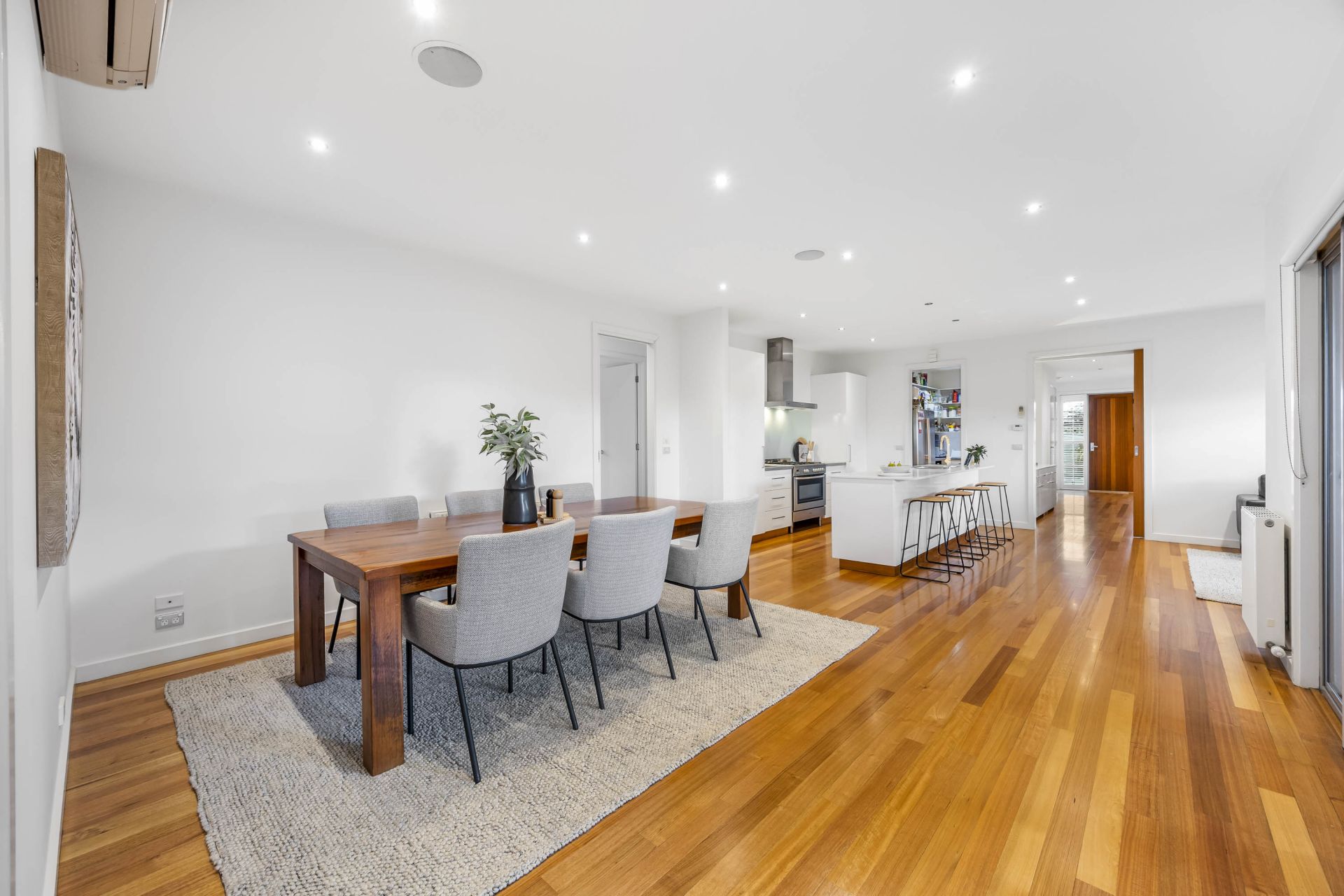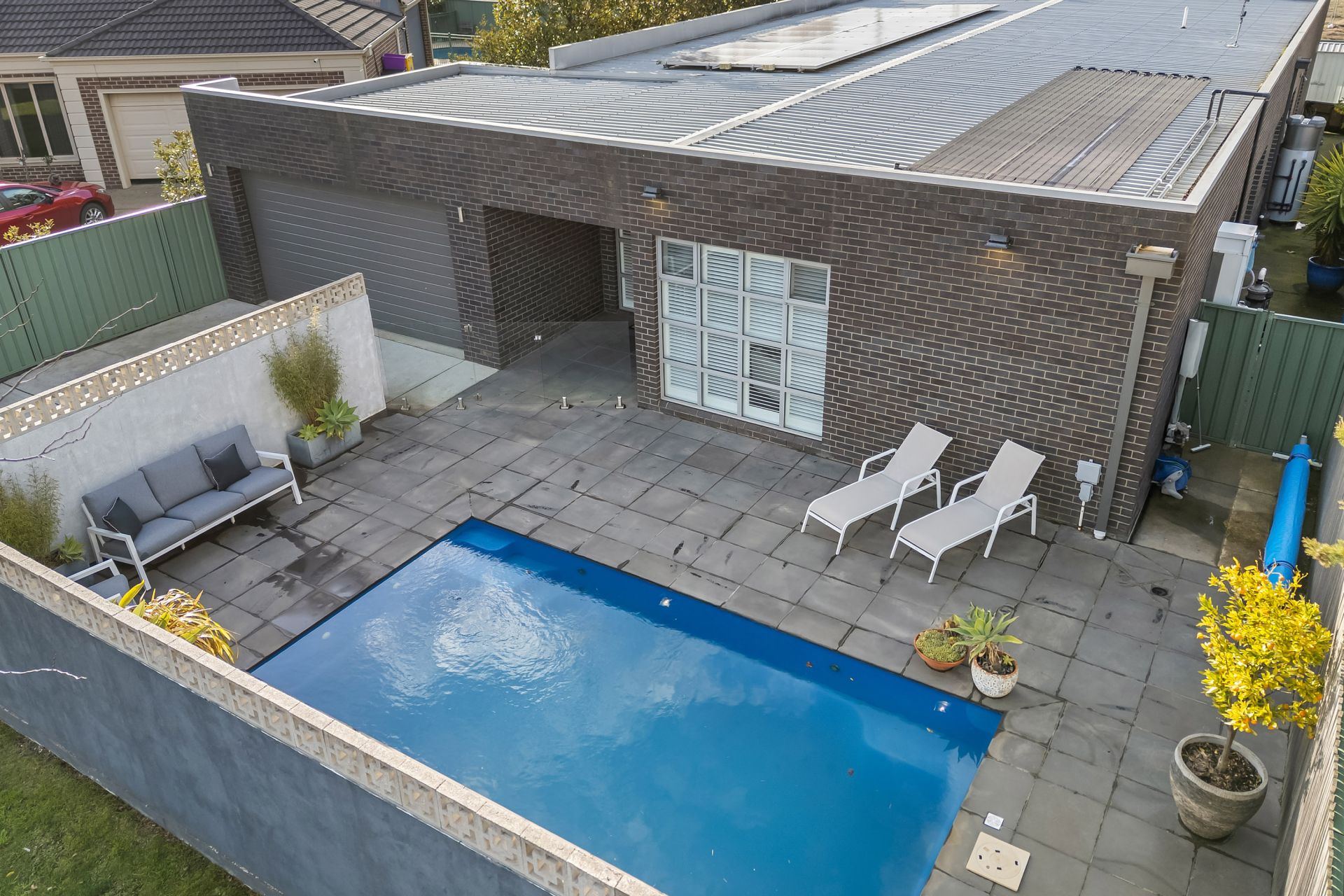 This property is equipped with modern conveniences, including solar power to help reduce energy costs, and a ducted vacuum system for easy cleaning. The double-glazed windows and doors offer an eco–friendly, and energy efficient heating and cooling environment. Hydronic heating throughout the property ensures cozy and warm winter nights. Reverse–cycle cooling cools the home during the hot summers. The highlight of the outdoor space is the solar heated pool, offering year-round enjoyment for both relaxation and recreation.