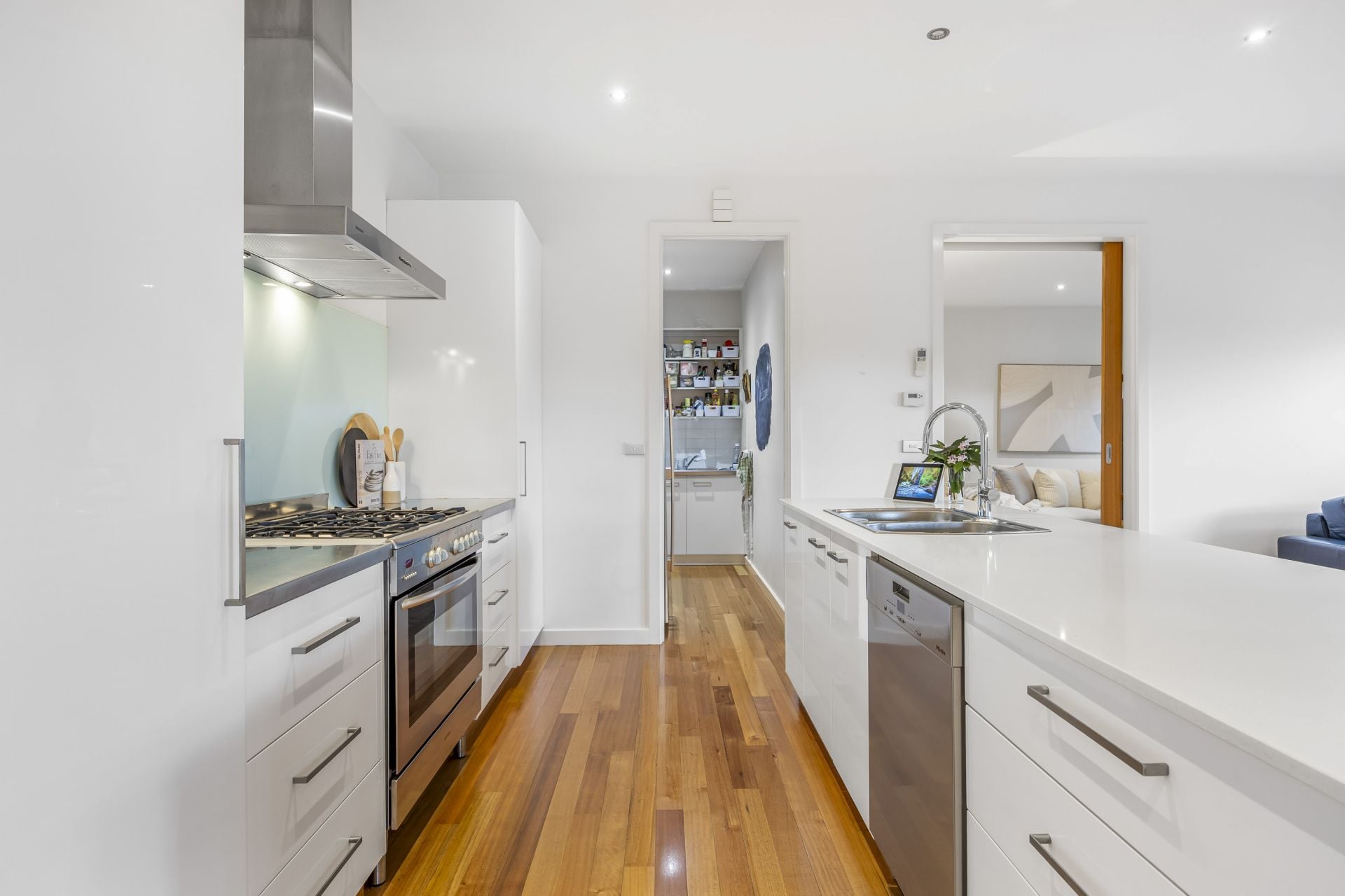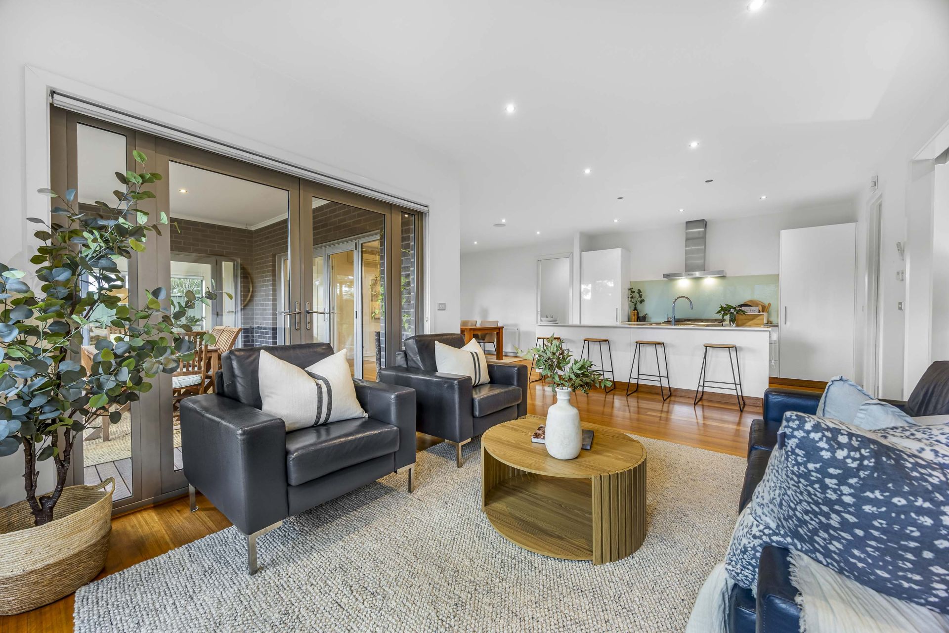 The heart of the home is the large kitchen and dining area, complete with a convenient butler's pantry and direct access to the enclosed alfresco area. This seamless integration of indoor and outdoor living is ideal for hosting gatherings or enjoying quiet meals with family while overlooking the landscaped surroundings.