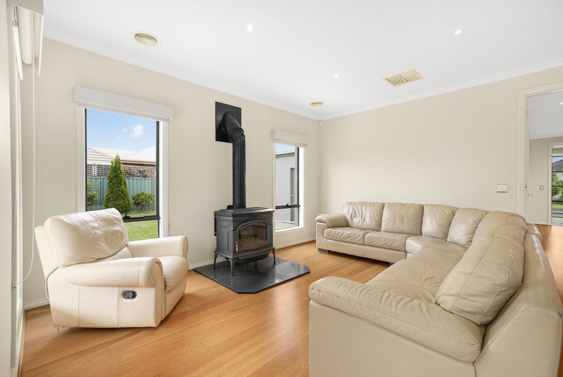 Situated in a quiet and highly sought after pocket of Lake Gardens is this grand four bedroom rendered brick home. This location is one of Ballarat's finest as you are in a safe neighborhood surrounded by quality homes. The position is also very convenient with easy access to Lake Wendouree, a train station, shopping centre, top schools, aquatic centre and Ballarat Golf Club. The home sits proudly at the front of a large allotment of around 673m2 (approx.) which includes a triple garage with drive through access to the backyard. Inside you have an open plan kitchen, meals and living that flows perfectly to the rear yard and enjoys large windows that flood the space with natural light. There is three further spaces for living or dining which promotes an extremely versatile floorplan. The master bedroom has ensuite and walk in robe while the other bedrooms all have built in robes. There is also a separate study which could be utilized as a fifth bedroom. The main bathroom has separate shower and bath while there is also a full laundry. The home is serviced by gas central heating, evaporative cooling and also a cosy wood heater. Outside you have a generous enclosed yard for the kids and pets to play or even further shedding (STCA). This is the complete package and will not last long. The exclusive listing agent Dominic Morrison looks forward to meeting you at another busy Ballarat Real Estate open home.