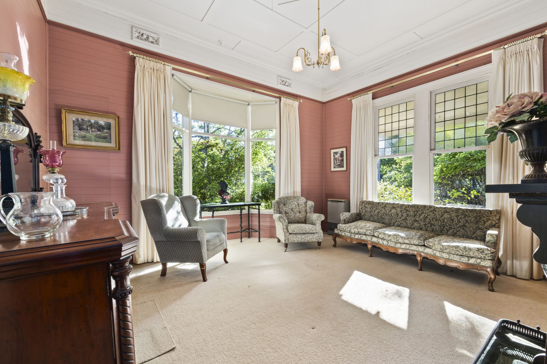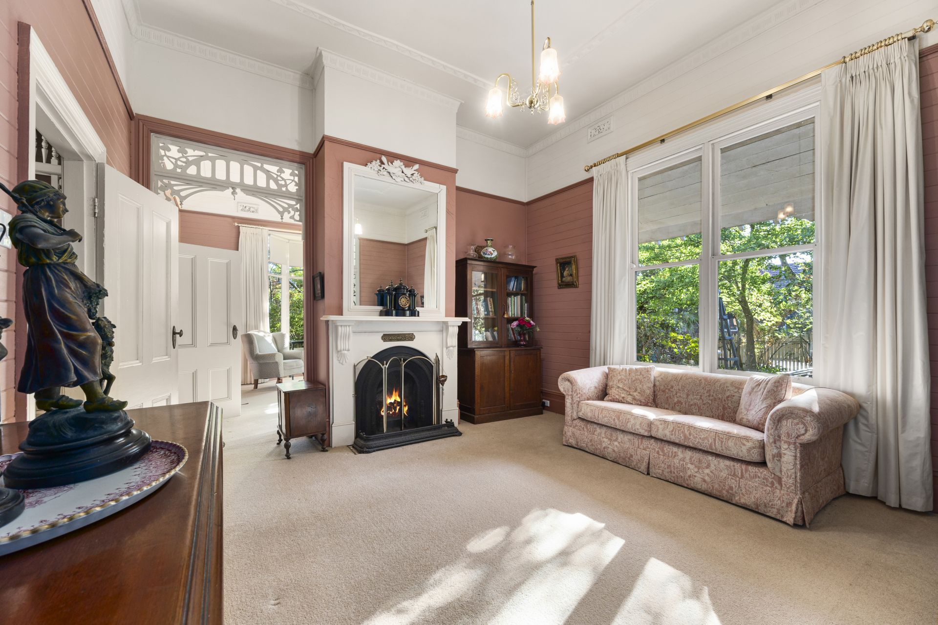 Beyond its historic significance, the home offers a thoughtful layout with three generous bedrooms, two separate bathrooms, and beautifully appointed formal living and lounge spaces-both featuring open fireplaces. A well-equipped kitchen sits at the rear, seamlessly connecting to a meals area/formal dining room with picturesque views of the garden.