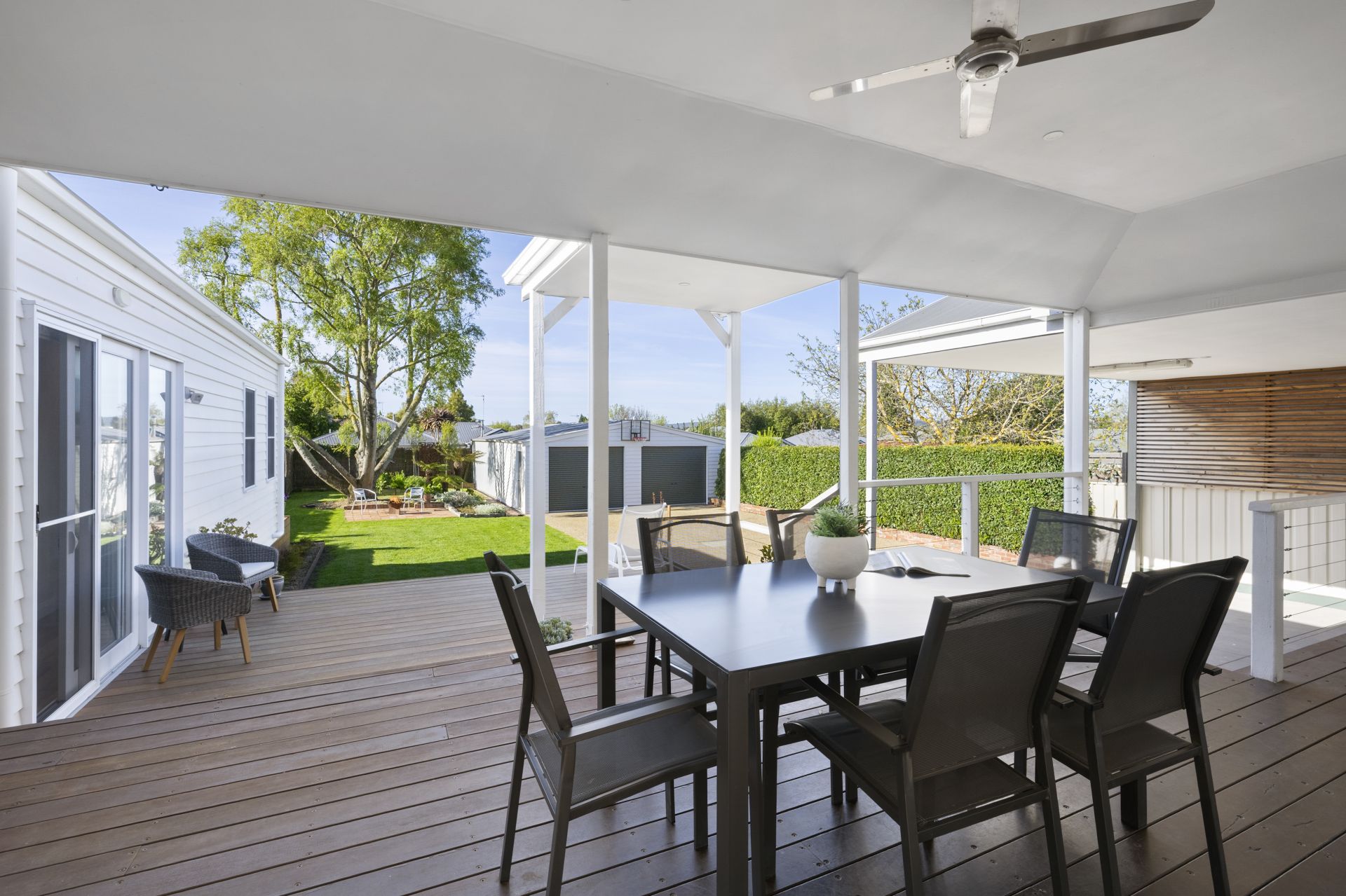 Perfectly positioned in a quiet, family-friendly street just one block from the picturesque shores of Lake Wendouree, this substantial period home offers an exceptional blend of charm, space and versatility. Beautifully updated over time, the main residence features four generous bedrooms - the master complete with walk-in robe and ensuite - while the remaining bedrooms are serviced by a large central bathroom. The light-filled kitchen, meals and living area forms the heart of the home, flowing seamlessly to an expansive north facing deck, undercover alfresco space and beautifully maintained gardens on a sprawling allotment of over 1,000m² (approx.). Adding to its appeal, a recently completed multi-function extension provides a fully self-contained space with its own kitchenette, bathroom, study and deck - ideal for guests, extended family or potential B&B accommodation. A double carport, extra large double garage and workshop complete this remarkable property, located within easy walking distance of popular cafés and the lake's walking trails. Be quick to inspect this truly special home.