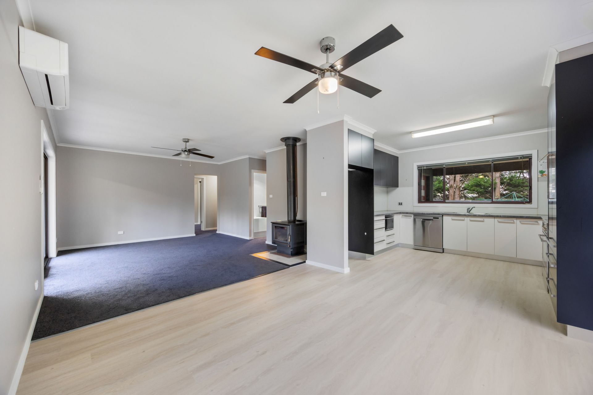 The attractive façade of the home is a good indication of what is inside. There are five bedrooms total all with BIR, four of them including study areas, as well as an additional study within the home. The open planned kitchen, dining and living area, is spacious and filled with natural light, providing relaxing views to the outside landscape, the kitchen also being updated and providing a large amount of storage. The updated bathroom has a shower over the bath and a separate toilet, as well as an updated laundry. The house is serviced with multiple air conditioners and wood fire heaters, as well as ceiling fans throughout. The house having three separate entertaining areas provides the perfect opportunity for every family member's needs. In the backyard you have a courtyard and fenced area perfect for the smaller pets.