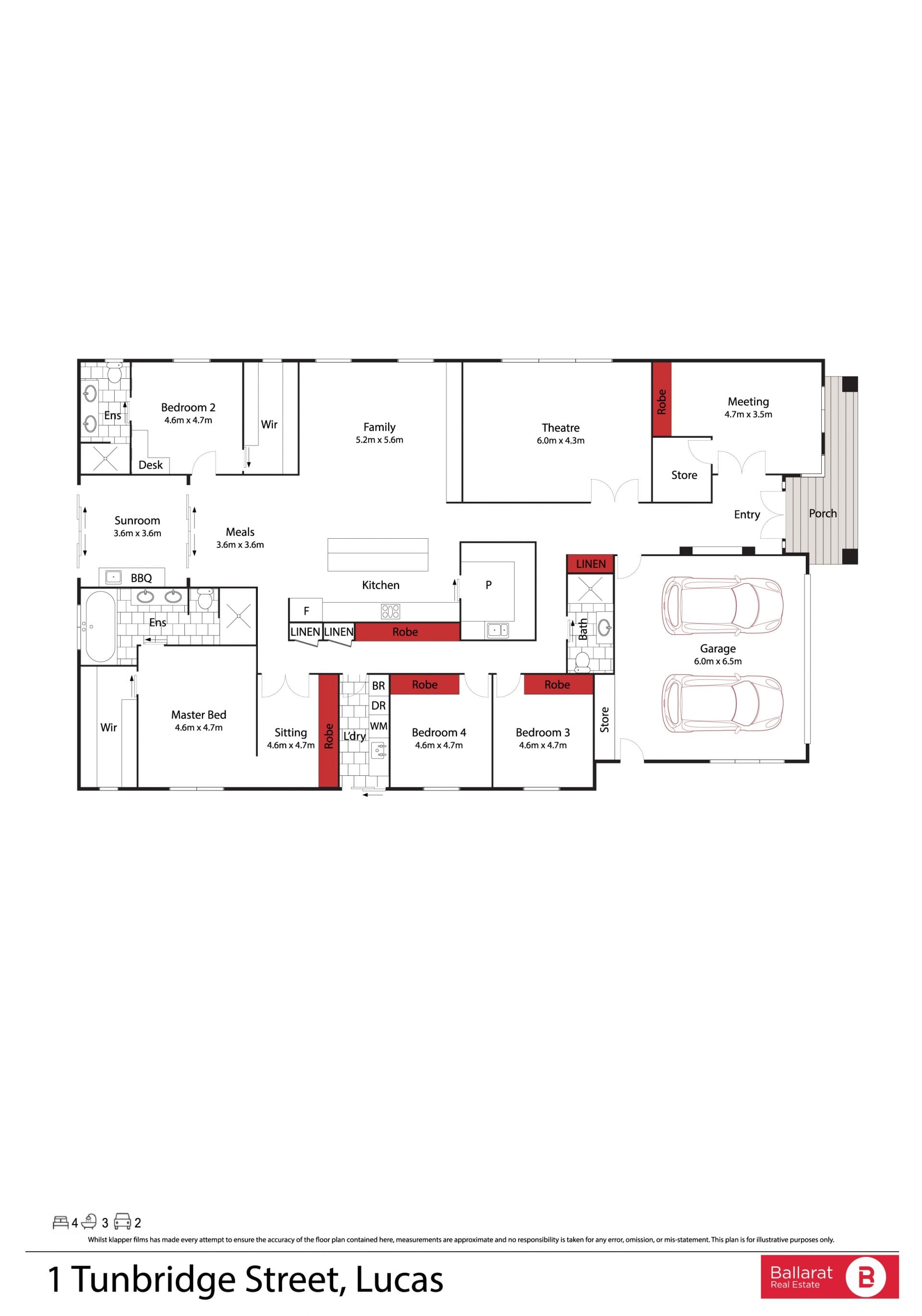 The master suite is a true retreat, featuring a walk-in robe and private ensuite, while the remaining bedrooms are all oversized with built-in robes and easy access to the stylish main bathroom. Bedroom two even includes its own ensuite, ideal for guests or older children.