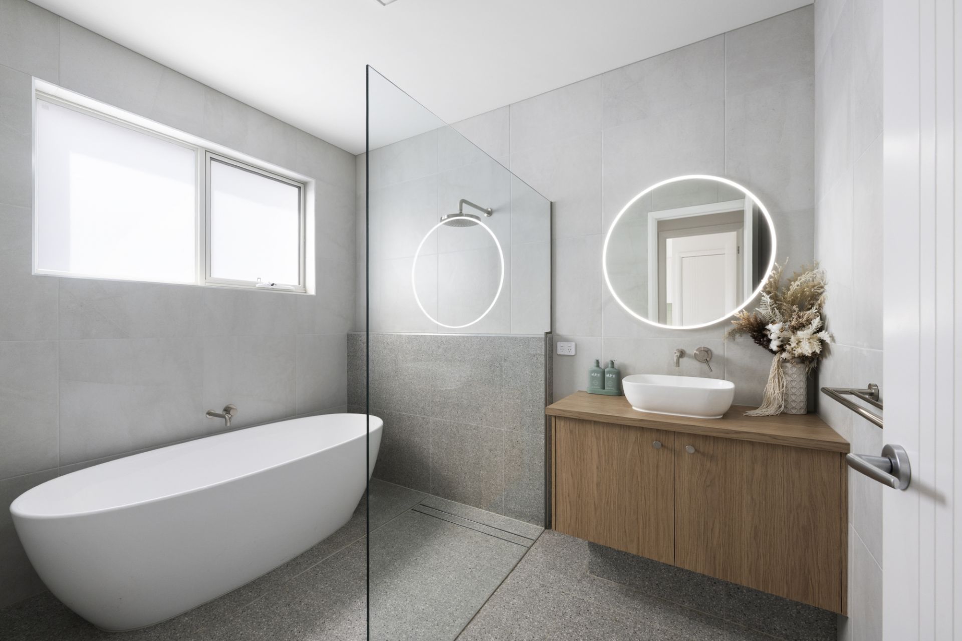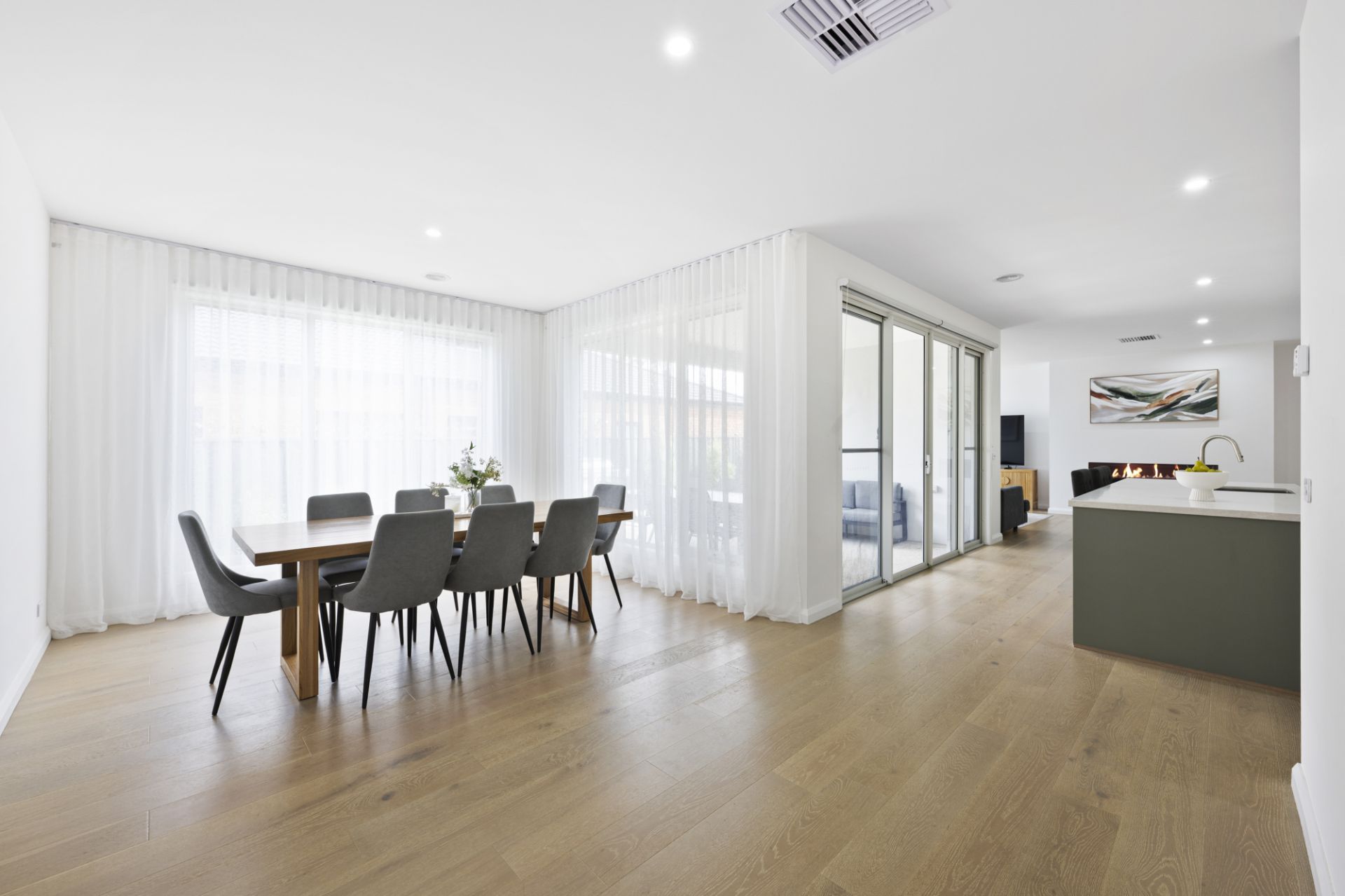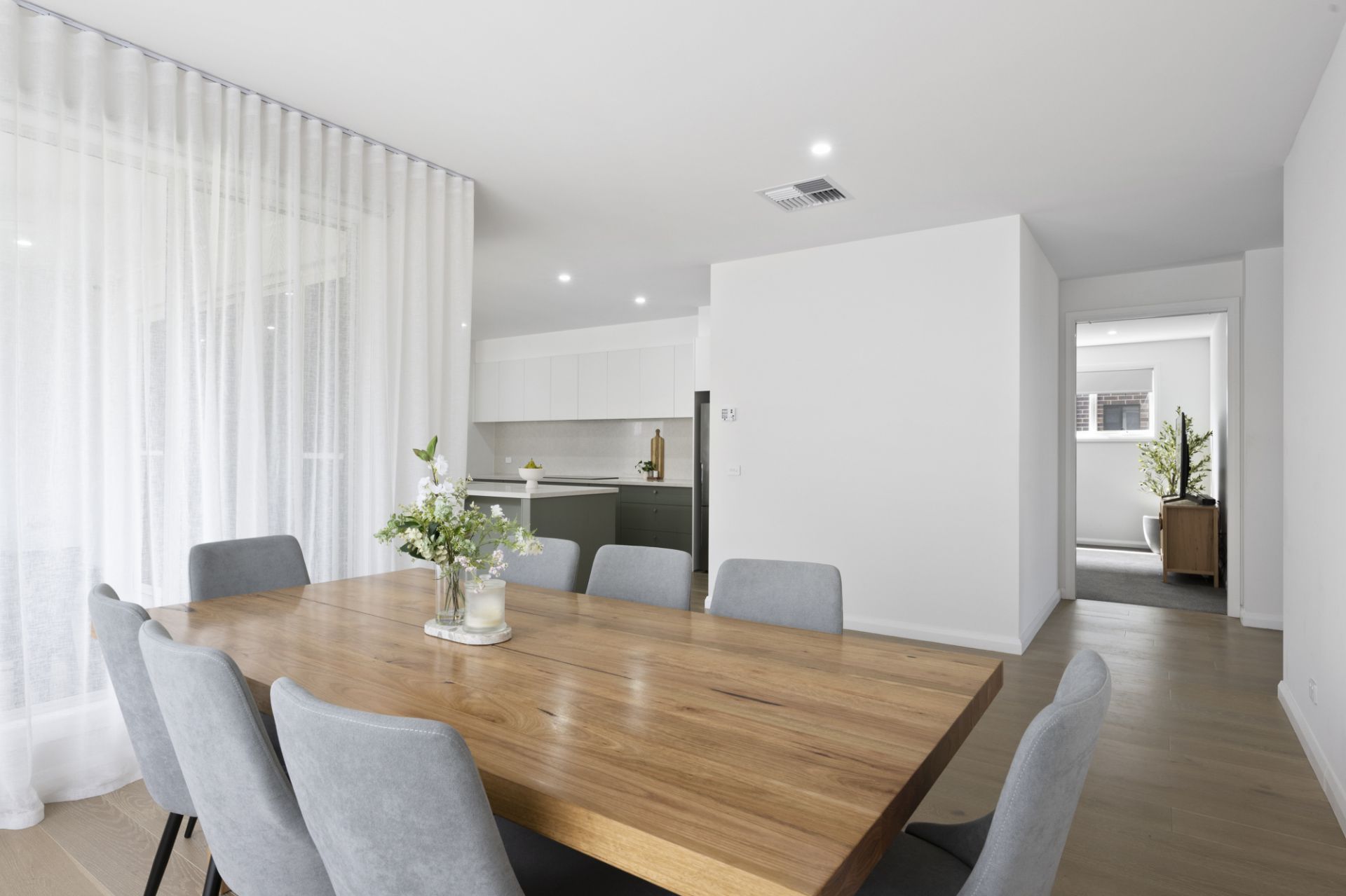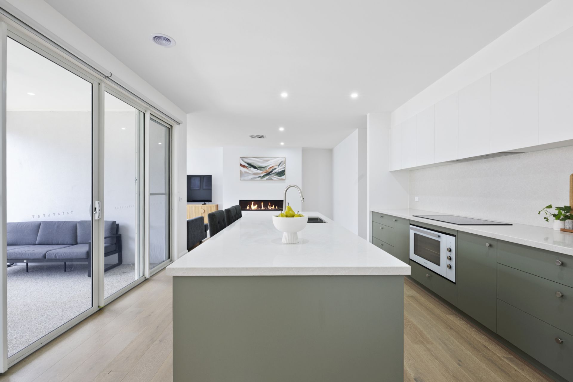 The beautifully appointed kitchen is sure to delight, featuring stone benchtops, an easy-to-clean induction cooktop, soft-closing cabinetry and a large walk-in pantry. The private master suite boasts a walk-in robe and a luxurious ensuite complete with a dual vanity with timber benchtops, a walk-in shower and a secluded toilet. The main bathroom reflects the same contemporary elegance, offering a walk-in shower, a soaking bathtub and a feature basin set on timber benchtops.