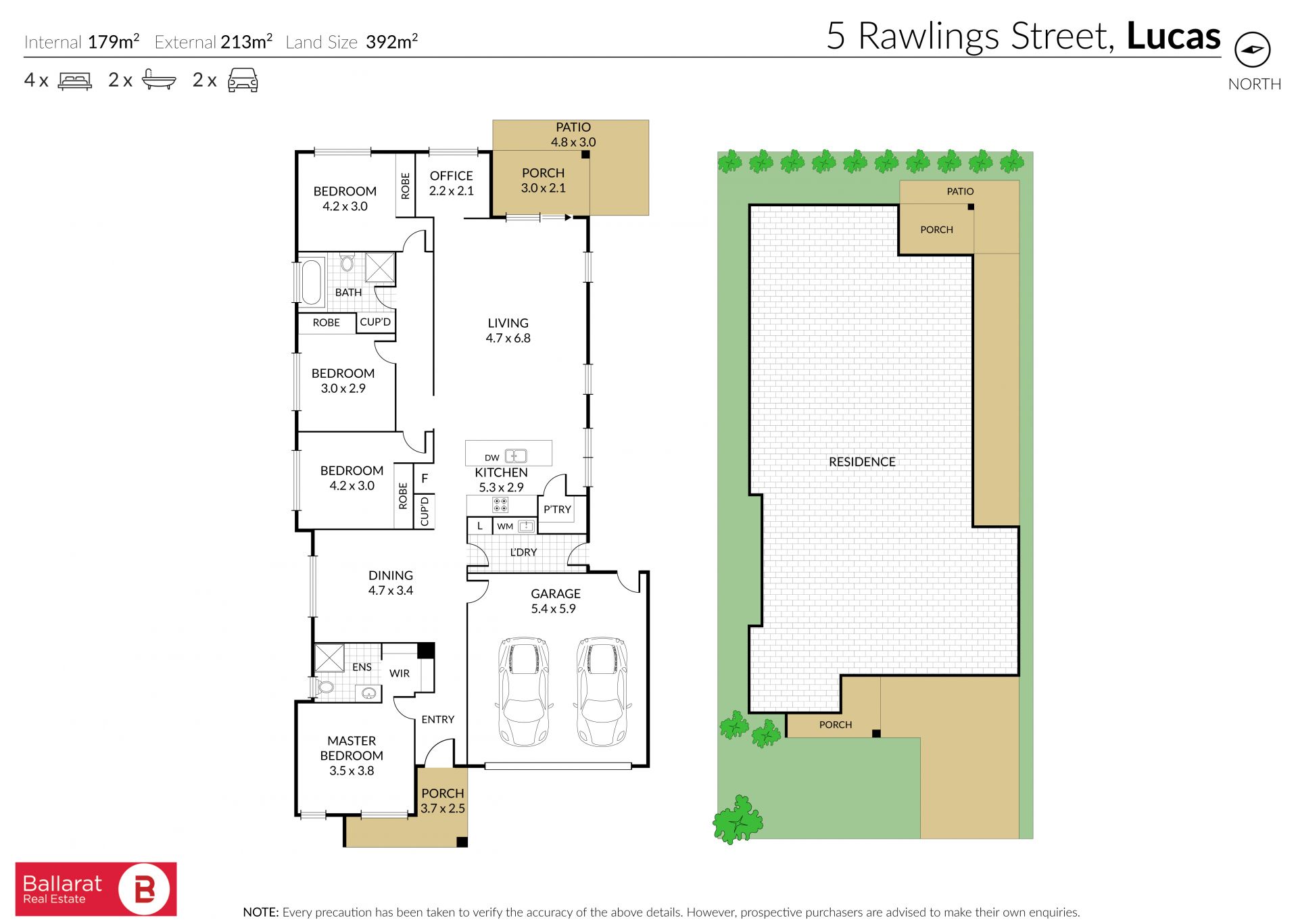 The open-plan main living zone is complemented by reverse cycle heating and cooling for year-round comfort, while central heating throughout the home ensures warmth during the cooler Ballarat months. A double lock-up garage provides secure parking and additional storage.
