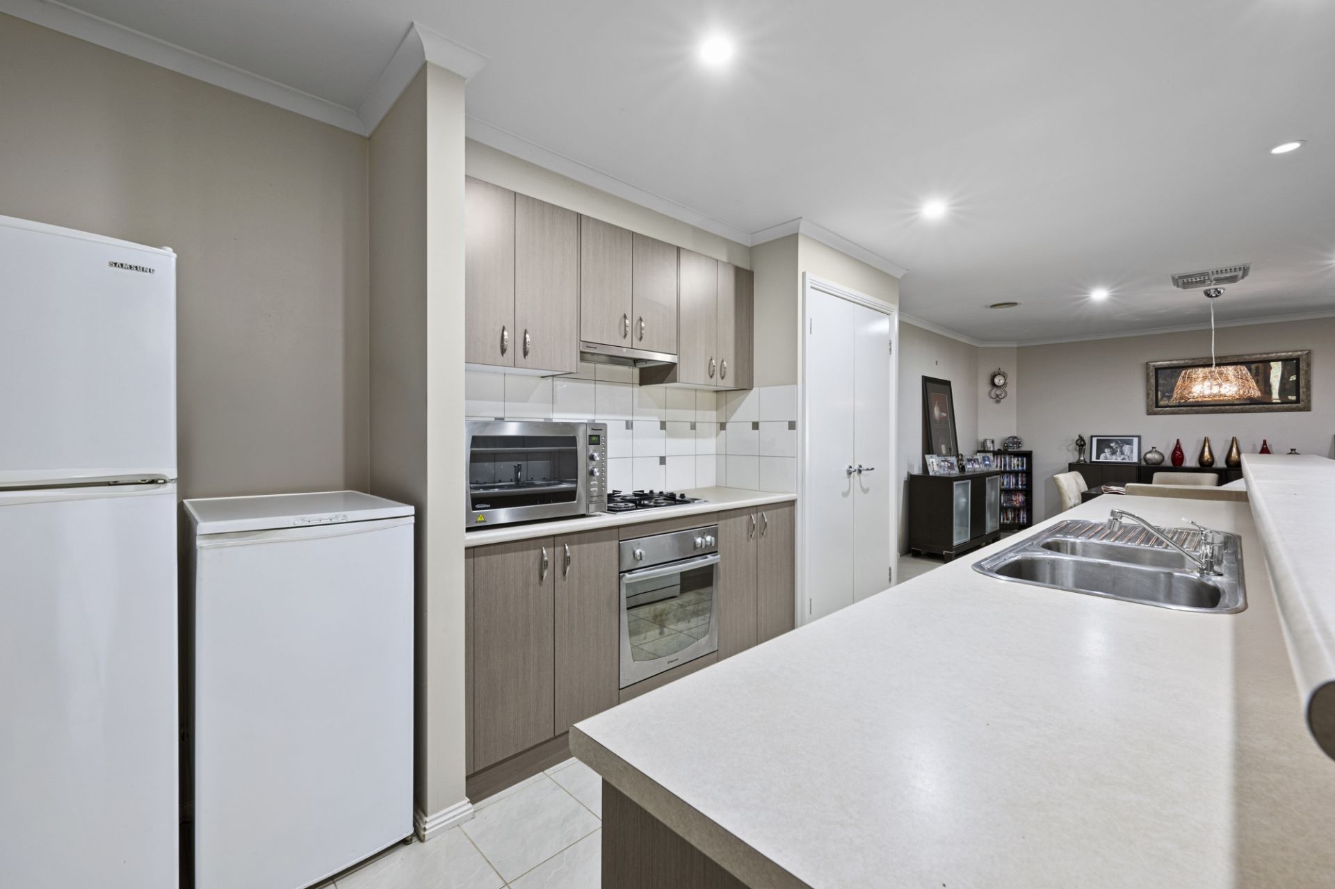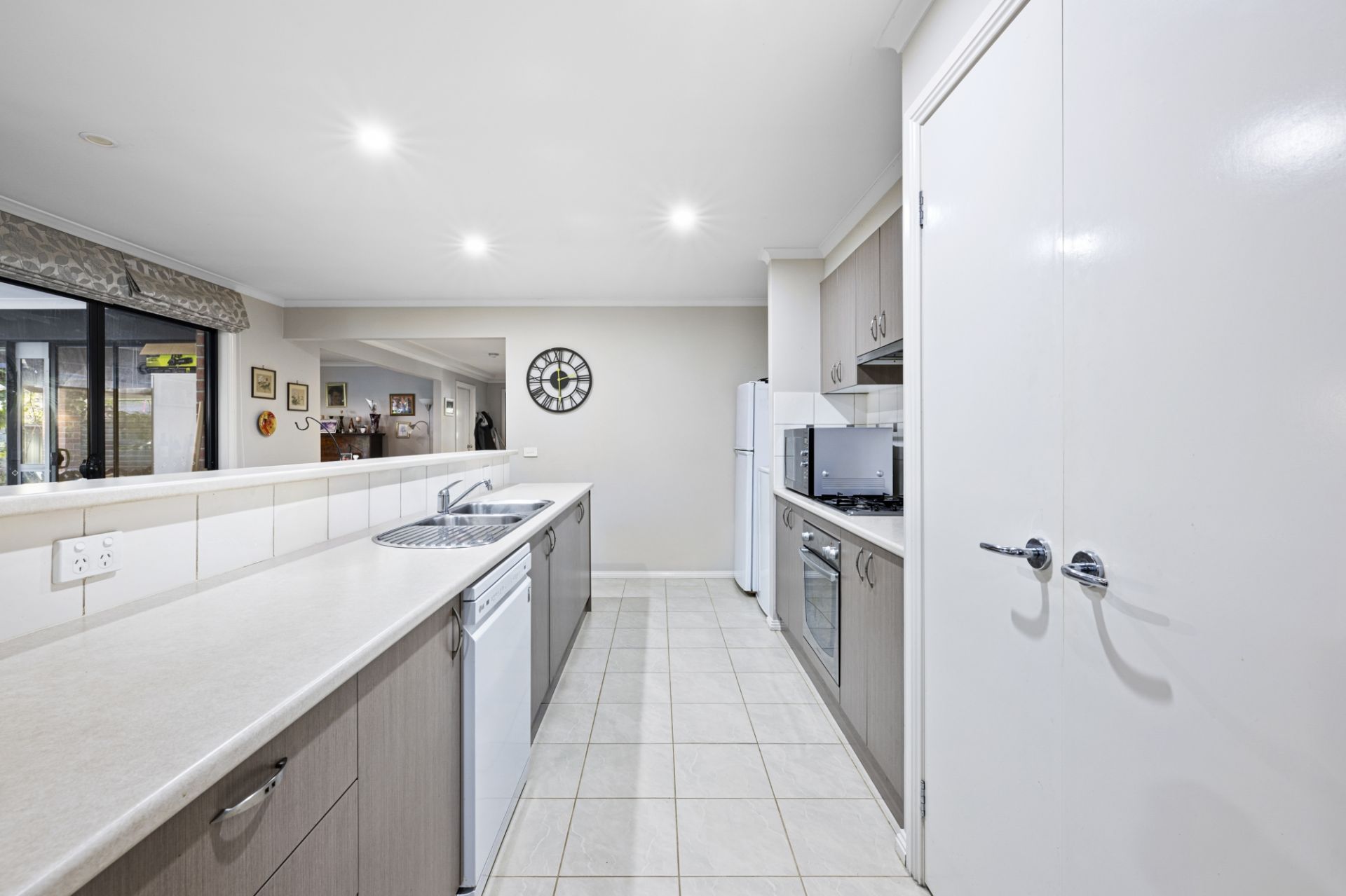 The heart of the home is the expansive open-plan living, dining, and kitchen area – perfect for entertaining or everyday family life. The well-equipped kitchen includes a double sink, dishwasher, 600mm gas cooktop, and electric oven, with easy flow into the main living space and adjoining sitting area that opens onto the large undercover alfresco - perfect for entertaining or relaxing.
