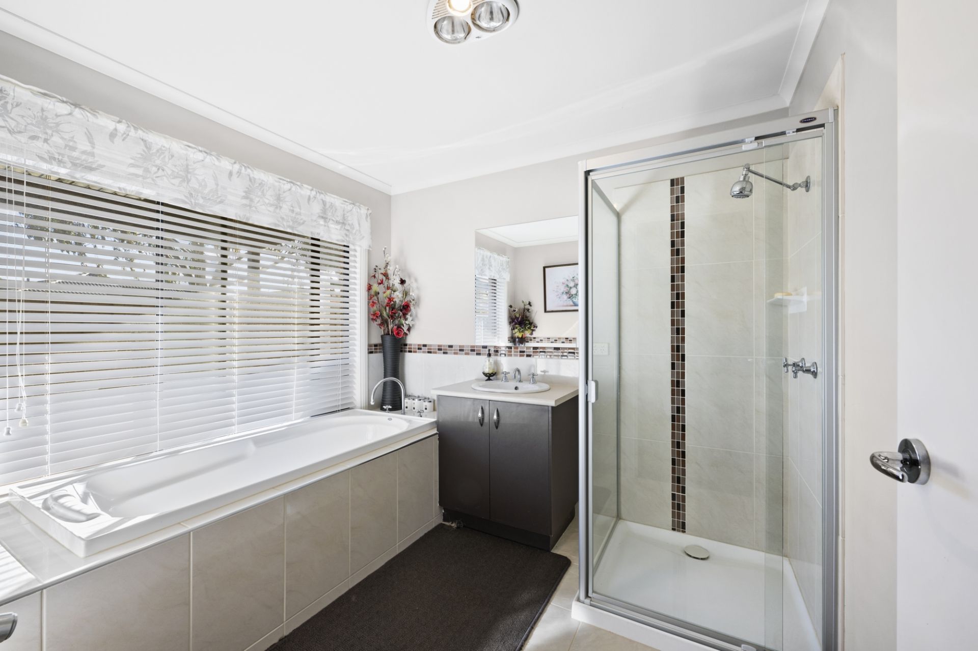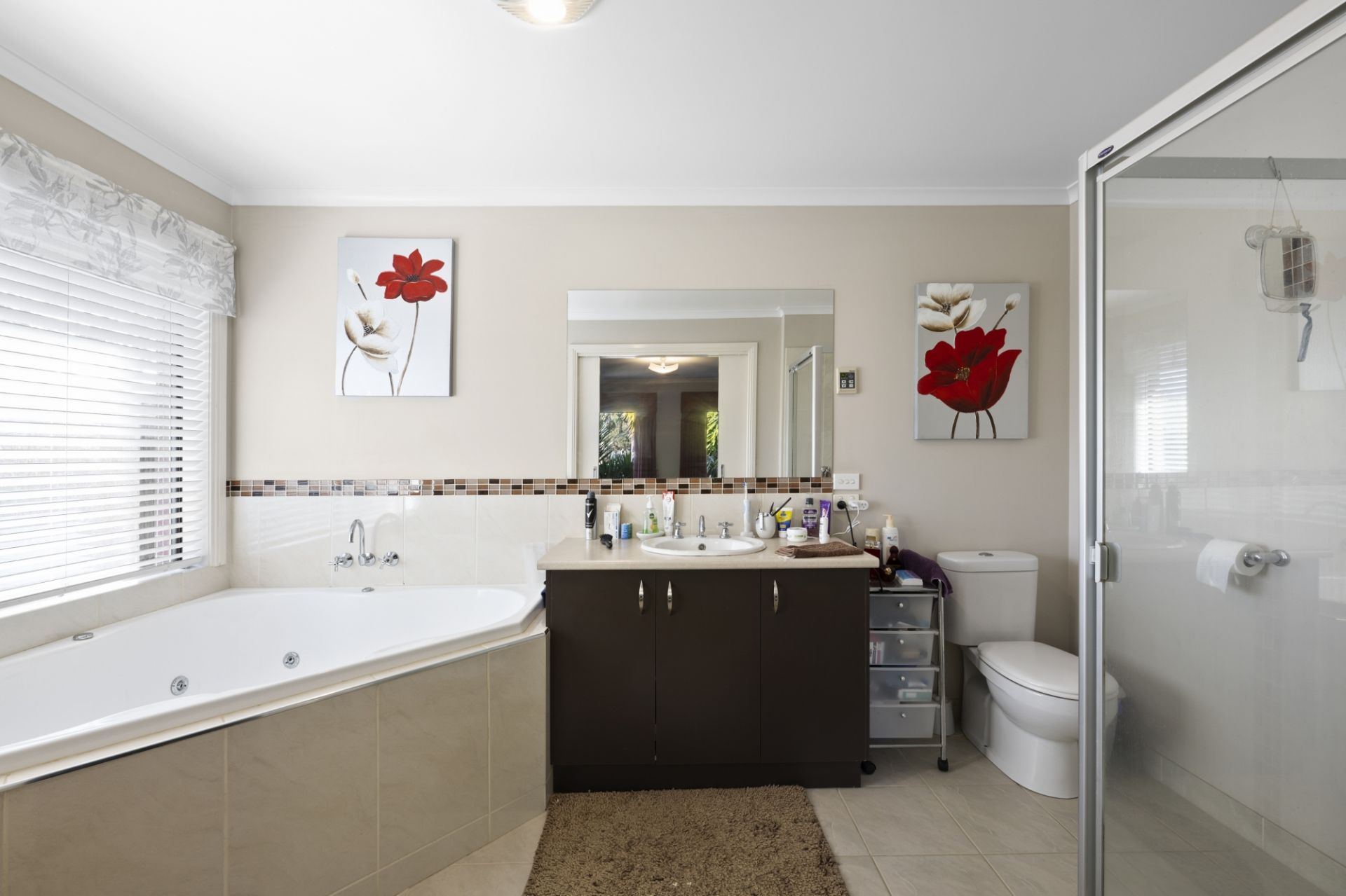 All four bedrooms are generously sized, with the master suite featuring a large walk-in robe and a luxurious ensuite complete with spa bath and separate shower. The remaining bedrooms each include built-in robes and are serviced by a central bathroom with both bath and shower, plus a separate toilet for added convenience.