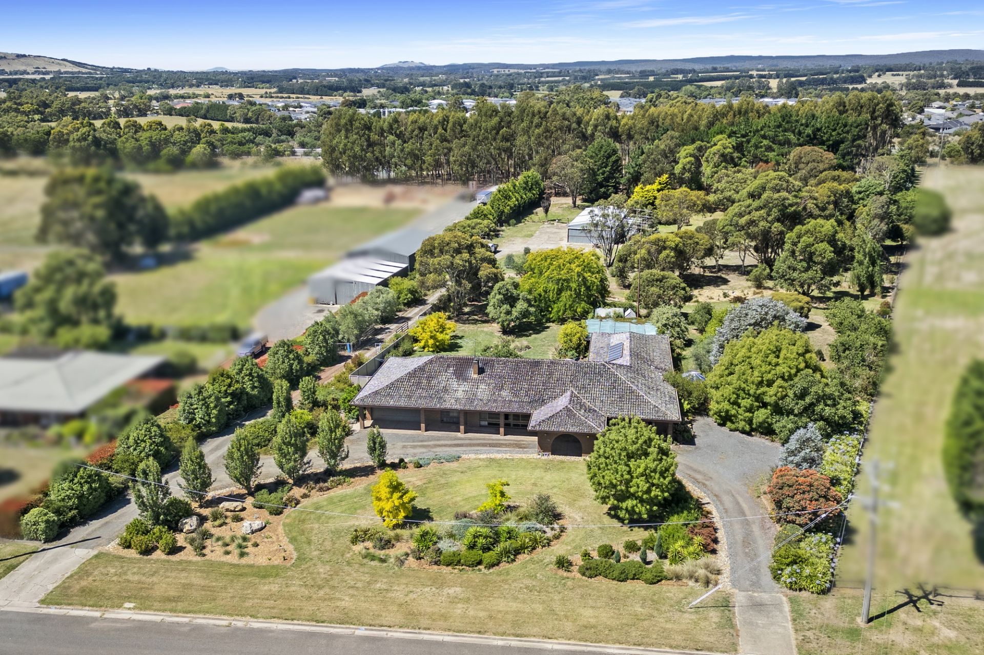 Nestled in the serene confines of Mitchell Park, this exquisite family home is set on a sprawling 2.27ha (approx) parcel of land, promising an idyllic lifestyle. Conveniently located just a stone's throw away from the Coltman Plaza, this residence offers easy access to all essential amenities. A short drive to Ballarat CBD and proximity to the Western Freeway makes this an ideal haven for families seeking both tranquility and urban connectivity. Welcoming you with an 80's brick veneer facade with full front veranda, the home boasts a horseshoe driveway leading to a carport and a DLUG, surrounded by meticulously maintained front gardens that exude warmth and charm. Upon entering, a feature brick archway frames the view of the back deck, setting the tone for the home's character. The sunken lounge, adorned with a wood fire and brick feature walls, adds a touch of charm to this unique home. The dining area, overlooking the backyard, seamlessly connects to the well-appointed chef's kitchen boasting modern appliances, including gas stove, oven, dishwasher, dual sinks, soft-closing drawers, a wine rack, and a vast servery bench all illuminated by the skylight above. This inviting abode comprises five spacious bedrooms, the master suite boasts a walk-in robe and a private ensuite with a capacious shower, floating vanity, and toilet. The remaining bedrooms, two with built-in robes, share an additional dining area, rumpus and family bathroom featuring a bath, vanity, a separate shower, and powder room. Central heating and cooling, along with three split systems, ensure year-round comfort for all occupants. Step outside to your personal oasis, where an outdoor entertaining deck awaits, perfect for hosting guests. The backyard is adorned with a fernery with fish ponds and a variety of flora, fruit trees and vegetable gardens providing an abundance of sustenance including apples, nectarines, pears, olives, and walnuts. Additionally a 5-bay shed with 3-phase power, woodshed, three water tanks and vast bush area beyond the gardens further enhance the outdoor experience. Further features of the home include a central vacuum system and multiple linen cupboards throughout. This property offers not just a home but a lifestyle, where modern comfort meets natural beauty, creating the perfect setting for your family to thrive. Be quick to schedule in your inspection as this one is sure to be popular!