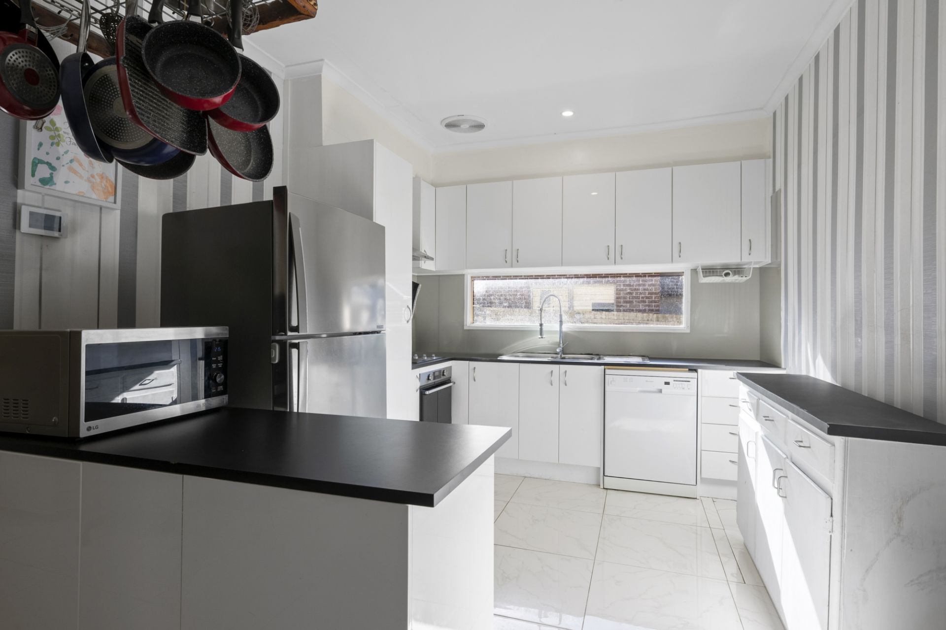 The open and flexible floor plan is supported by central heating and ceiling fans throughout, ensuring year-round comfort. Both bathrooms are functional and well-appointed, and the bedrooms offer generous space for the growing family.