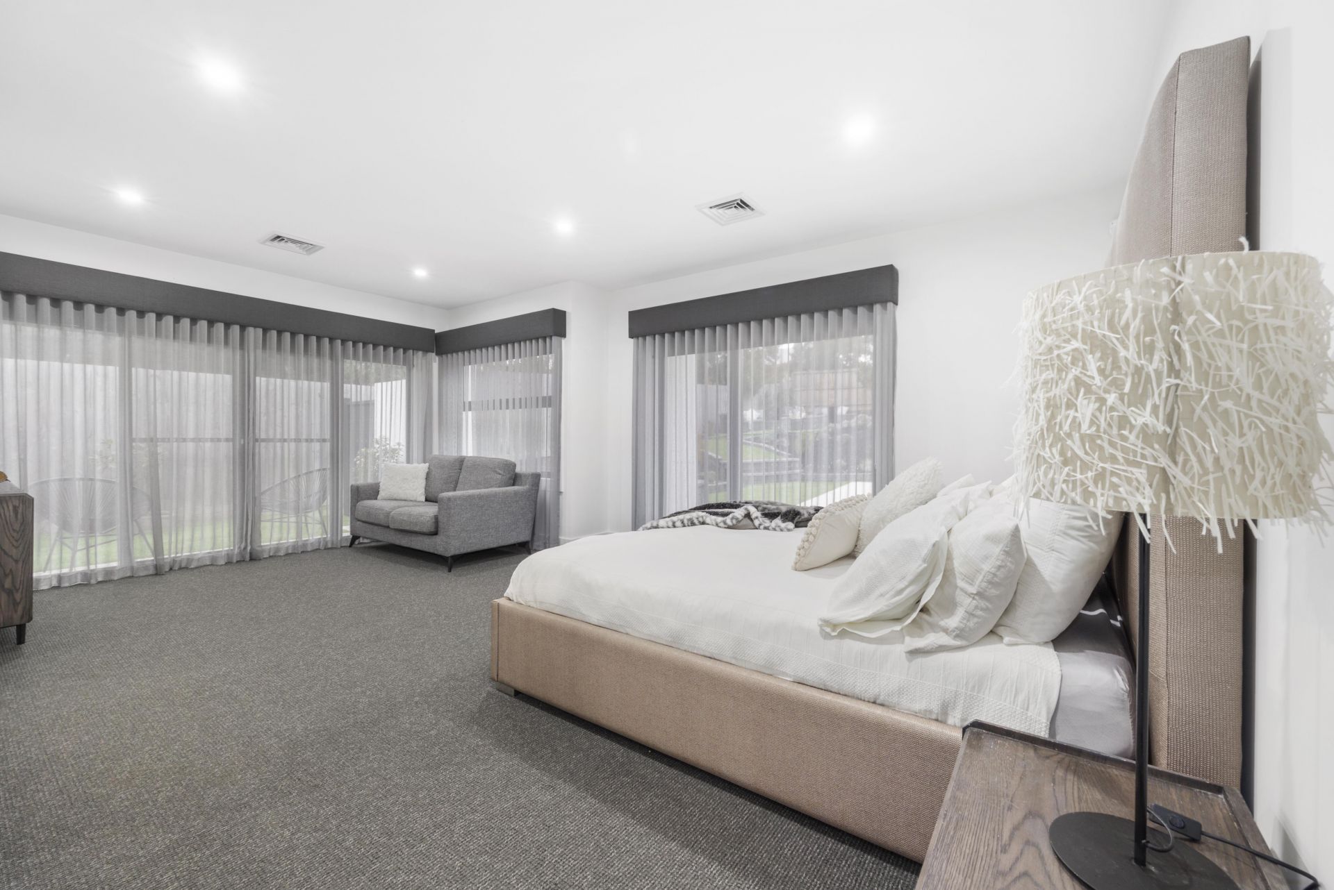 Set in a peaceful location, this immaculate 4-year-old home blends modern luxury with thoughtful design across a spacious 1204m² allotment. The master bedroom is a private retreat, complete with a walk-in robe and ensuite featuring a freestanding bath, double vanity, and walk-in shower. Three additional bedrooms each offer generous storage and unique layouts, including two with their own ensuite.