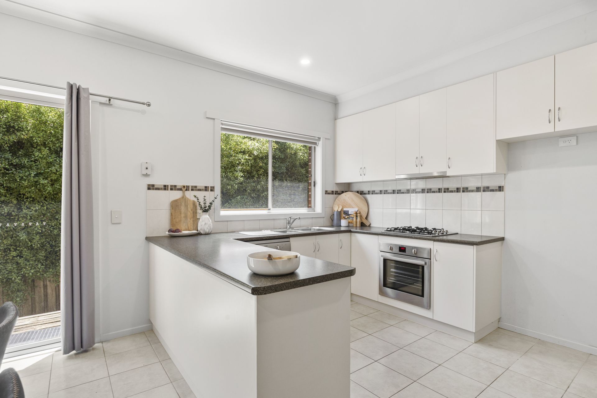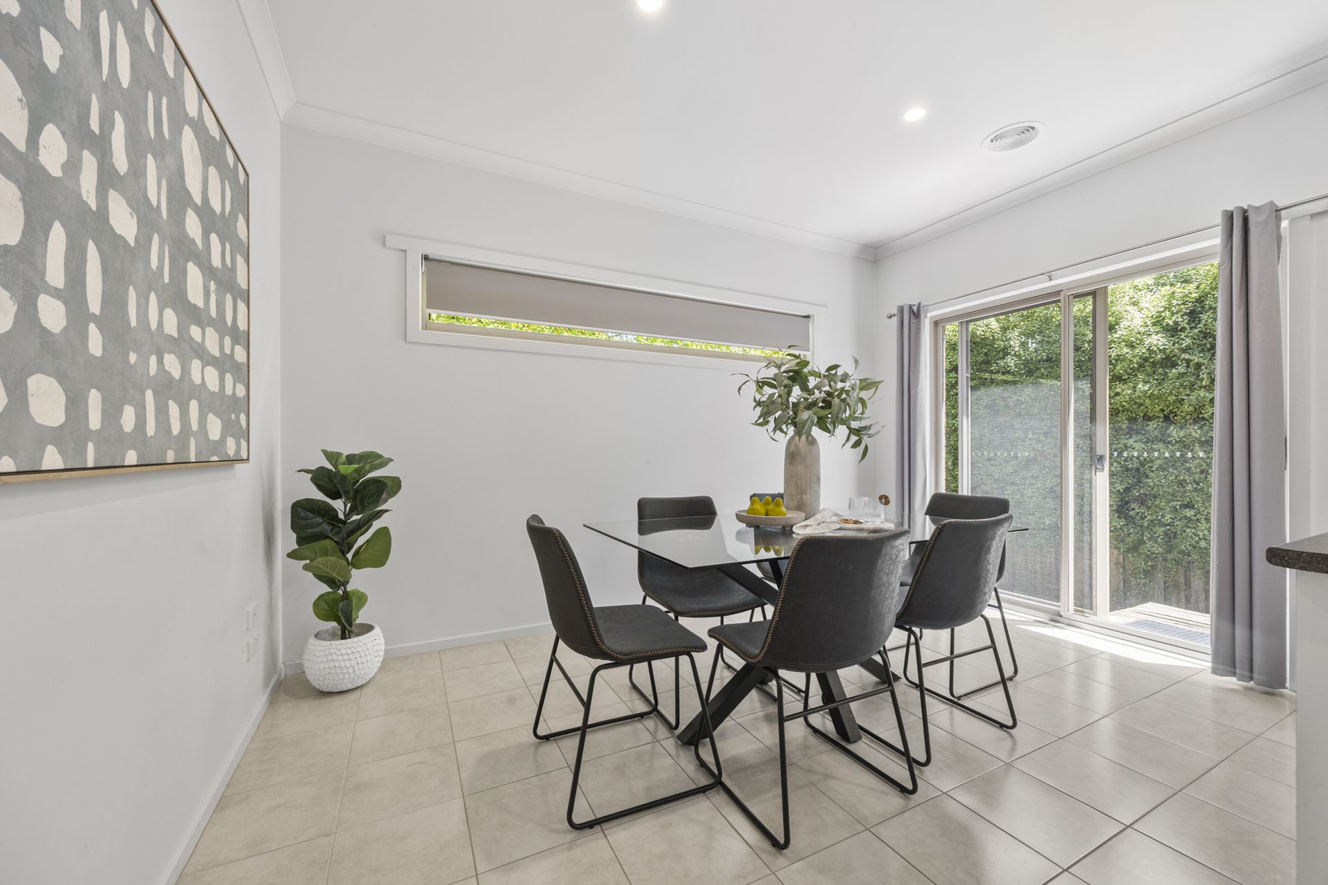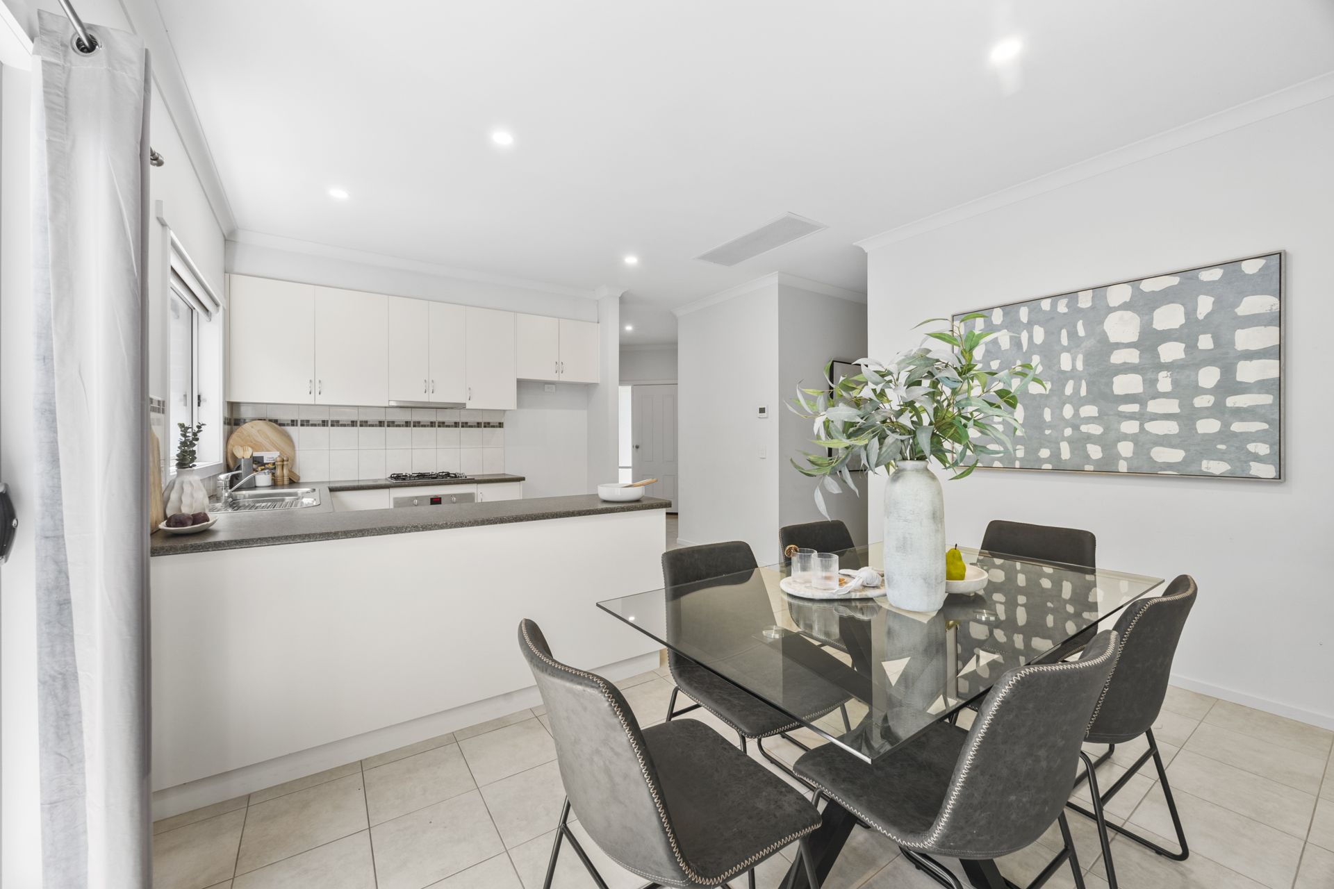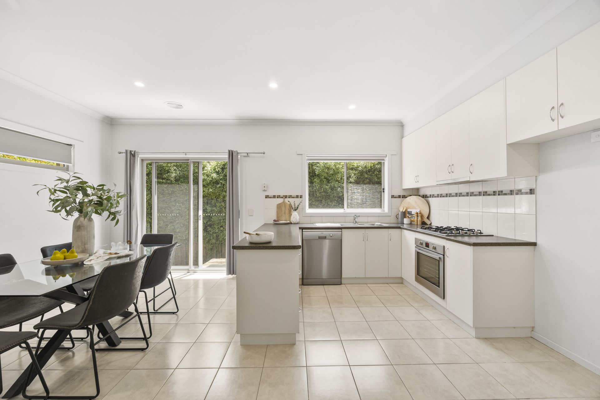 The contemporary kitchen is equipped with stainless steel appliances, including gas cooktop, electric under-bench oven and dishwasher, while the adjoining tiled meals area opens via glass sliding doors to a secure, enclosed rear yard-ideal for relaxed outdoor enjoyment. Additional highlights include a double lock-up garage with automatic door, a 5.28kW solar system system and a practical, easy-care layout suited to a range of buyers.