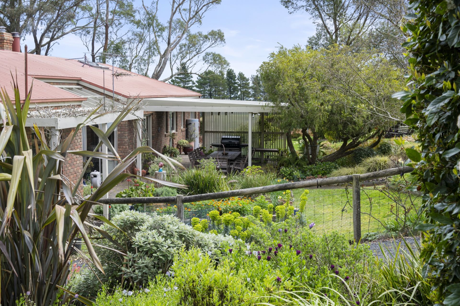Additional features include a double carport, mains water connection, and a 25kl water tank which feeds a water trough. There is also a large shed and ample space for caravan and trailer storage.